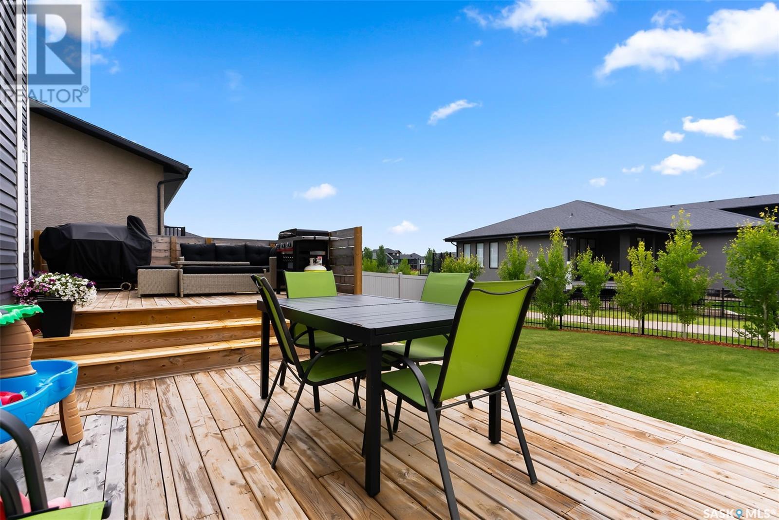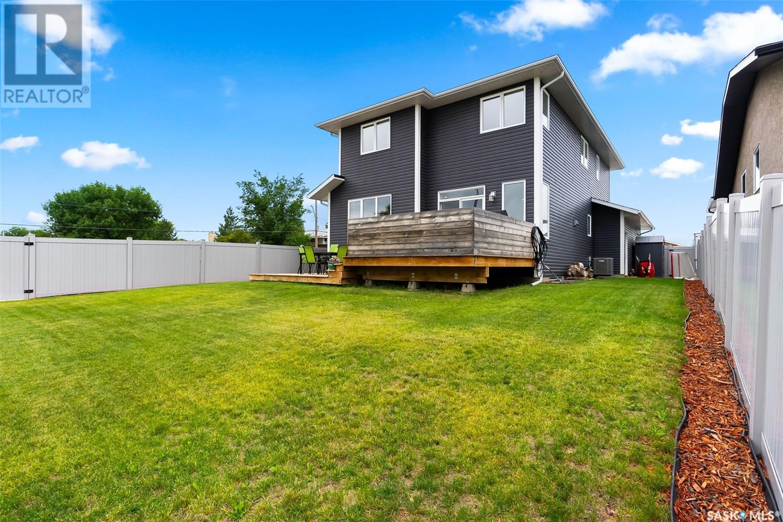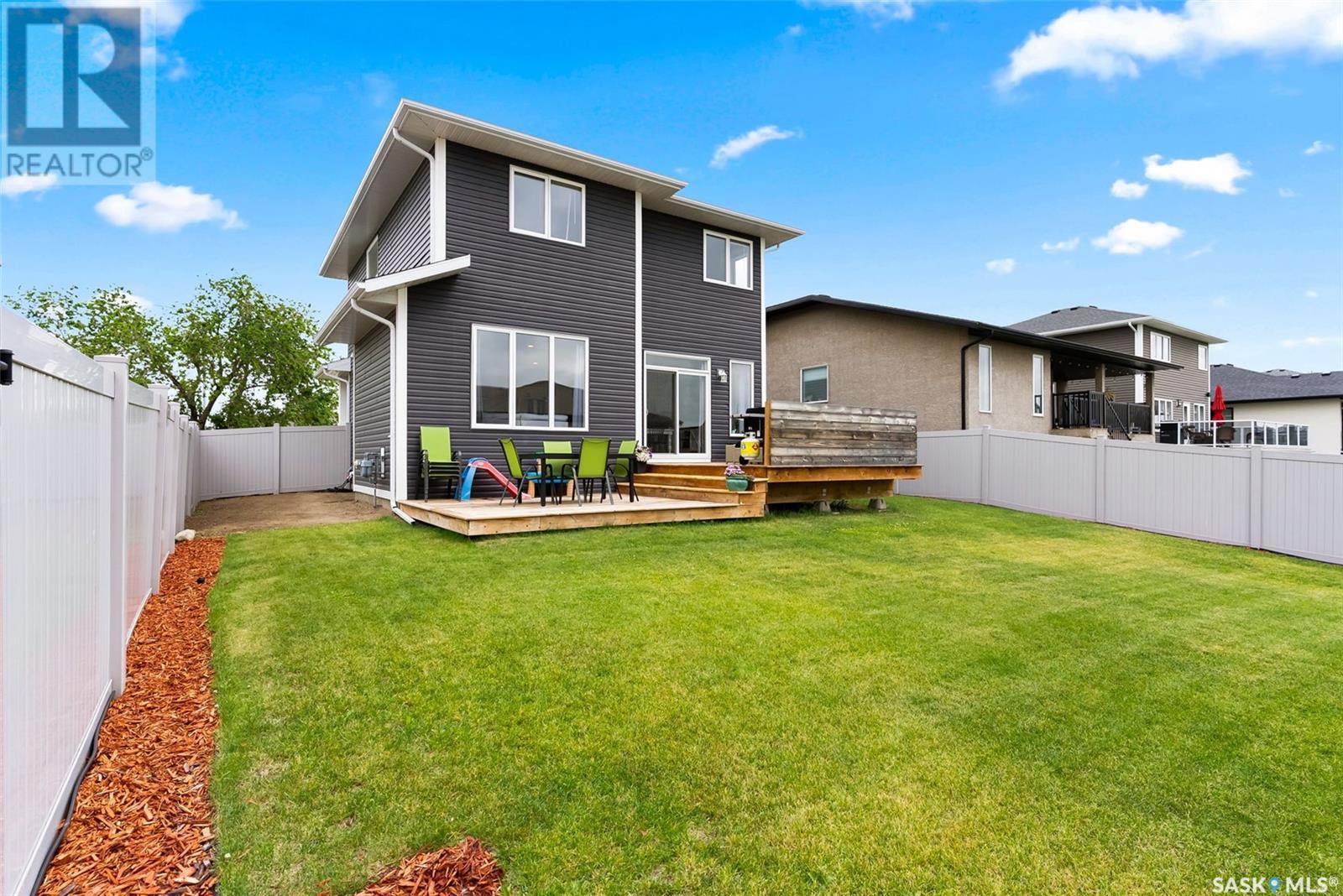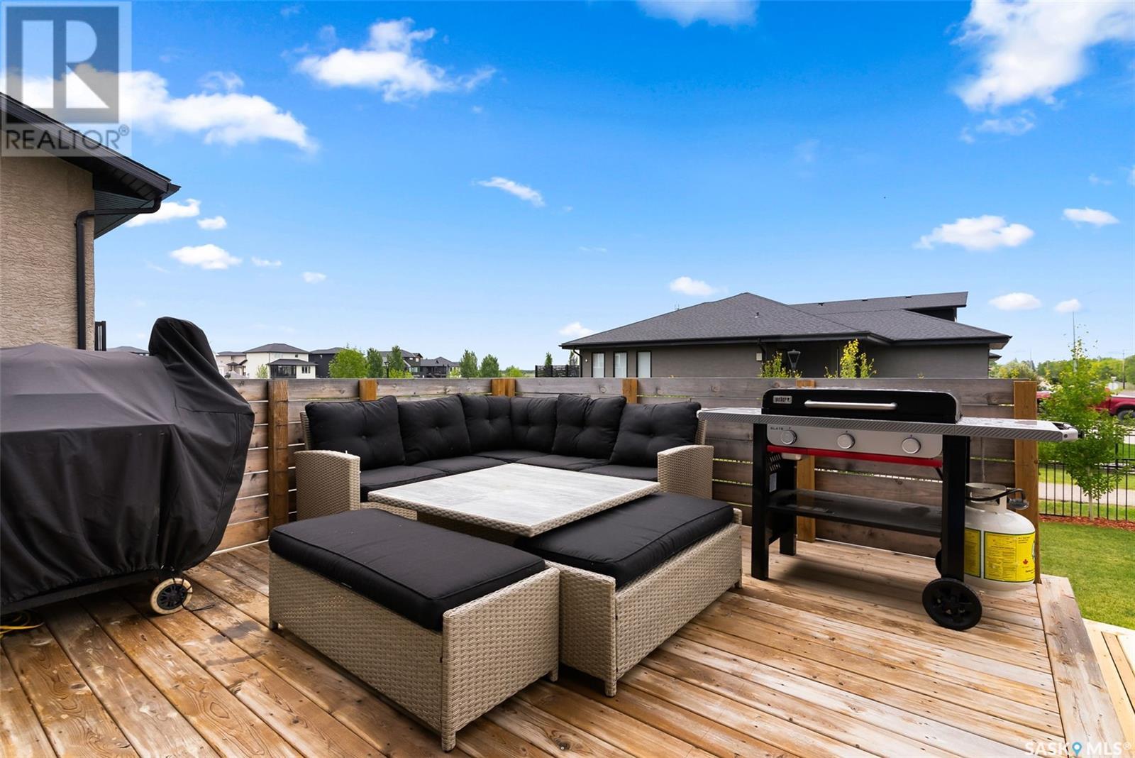 Welcome to 1 Mackenzie Road in Pilot Butte's Discovery Ridge community. This stunning home sits on a large corner lot backing a walking path and a pond/greenspace, perfect for walks with the family in the summer, and to hit up the pond for some skating and fun in the winter months. This home boasts just over 1900 sqft. of living space and is truly a must see! As you enter you are greeted by a large foyer area flowing into the spacious kitchen complete with plenty of counter and storage space. The large kitchen island, a dining area with plenty of space for a large table, and the cozy yet spacious living room makes this the perfect space to entertain and gather with friends and family. Heading upstairs you will find not 1, not 2, but 3 great sized bedrooms serviced by a 4 piece bath. Down the hall you will find the primary bedroom, complete with a walk-in closet and 5 piece ensuite, providing you with a relaxing place to unwind at the end of the day. The laundry room finishes off the 2nd floor with a touch of added convenience. Heading back downstairs you will find the patio doors connecting you to your backyard oasis including a large two tier deck and a beautifully landscaped yard backing the walking path and pond/greenspace. The un-finished basement leaves you with plenty of opportunity to create more usable living space in whatever way suits you best. This is one you truly don't want to miss, book your private viewing today! (id:43042)