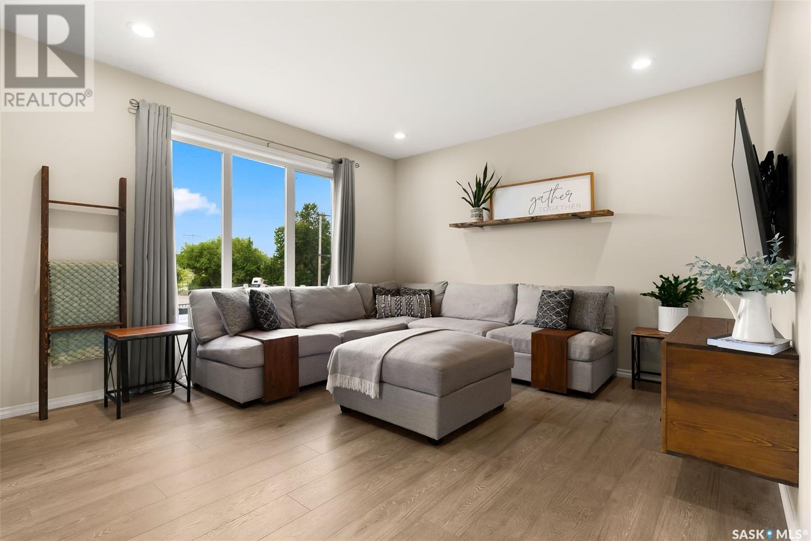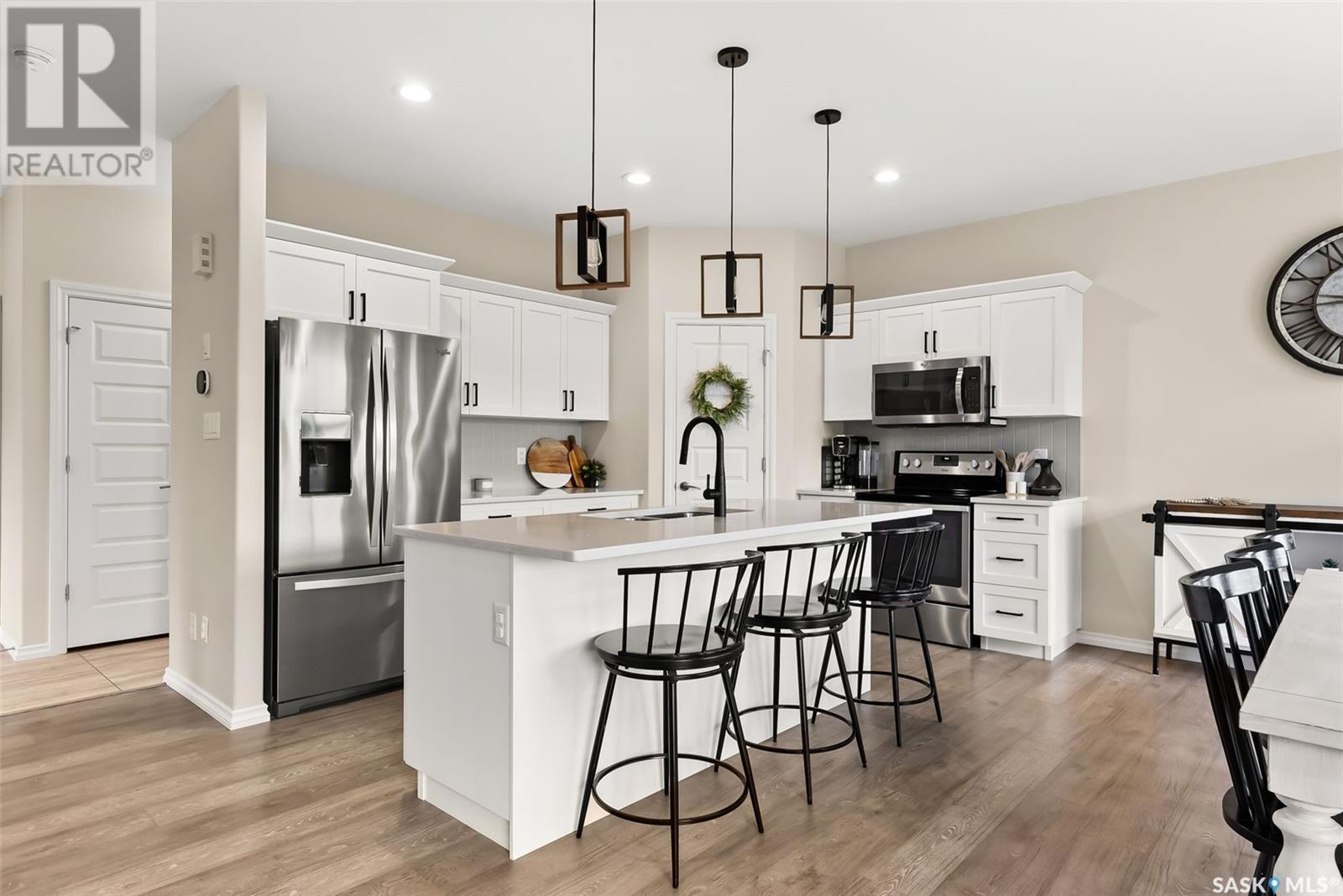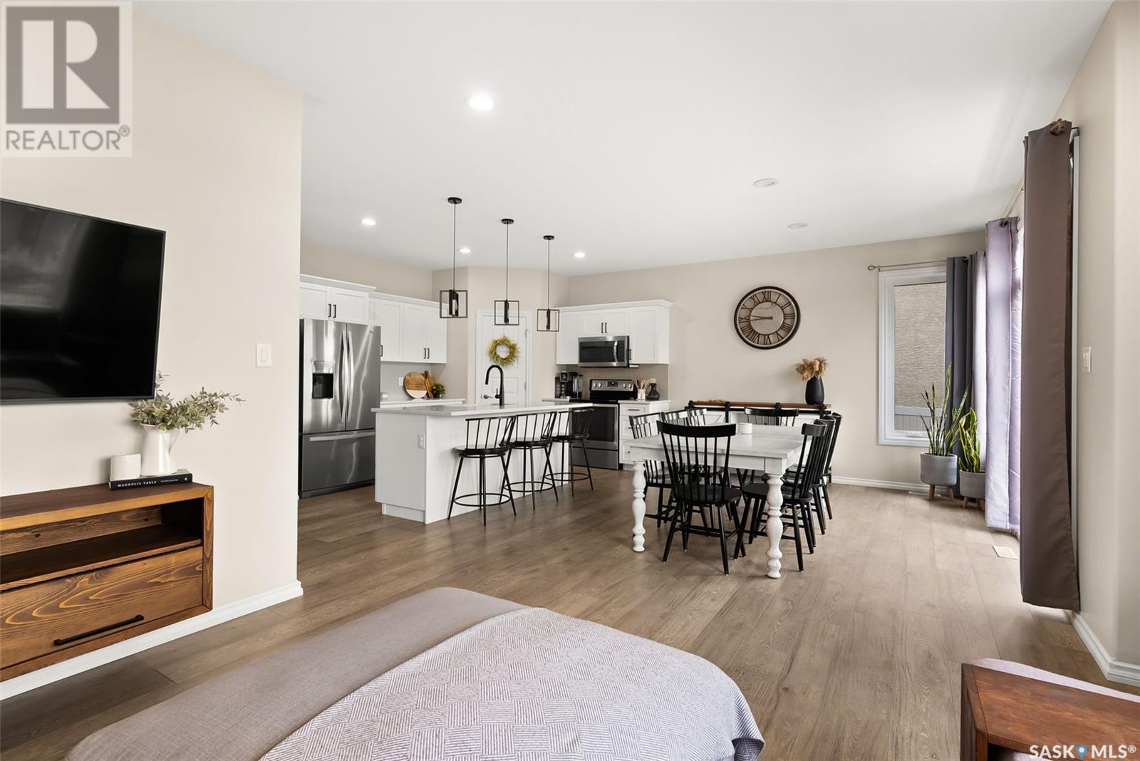 Welcome to 1 Mackenzie Road in Pilot Butte's Discovery Ridge community. This stunning home sits on a large corner lot backing a walking path and a pond/greenspace, perfect for walks with the family in the summer, and to hit up the pond for some skating and fun in the winter months. This home boasts just over 1900 sqft. of living space and is truly a must see! As you enter you are greeted by a large foyer area flowing into the spacious kitchen complete with plenty of counter and storage space. The large kitchen island, a dining area with plenty of space for a large table, and the cozy yet spacious living room makes this the perfect space to entertain and gather with friends and family. Heading upstairs you will find not 1, not 2, but 3 great sized bedrooms serviced by a 4 piece bath. Down the hall you will find the primary bedroom, complete with a walk-in closet and 5 piece ensuite, providing you with a relaxing place to unwind at the end of the day. The laundry room finishes off the 2nd floor with a touch of added convenience. Heading back downstairs you will find the patio doors connecting you to your backyard oasis including a large two tier deck and a beautifully landscaped yard backing the walking path and pond/greenspace. The un-finished basement leaves you with plenty of opportunity to create more usable living space in whatever way suits you best. This is one you truly don't want to miss, book your private viewing today! (id:43042)