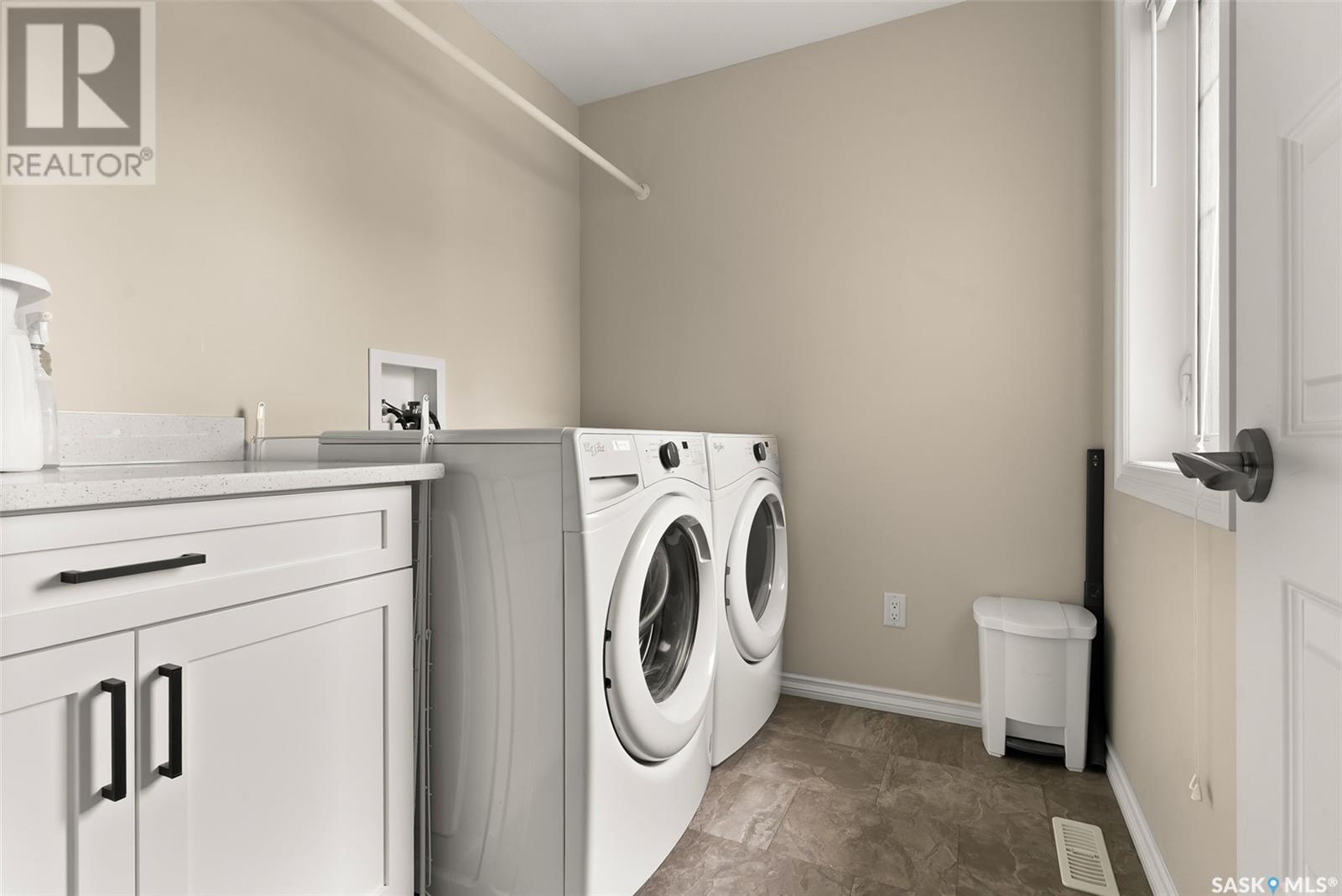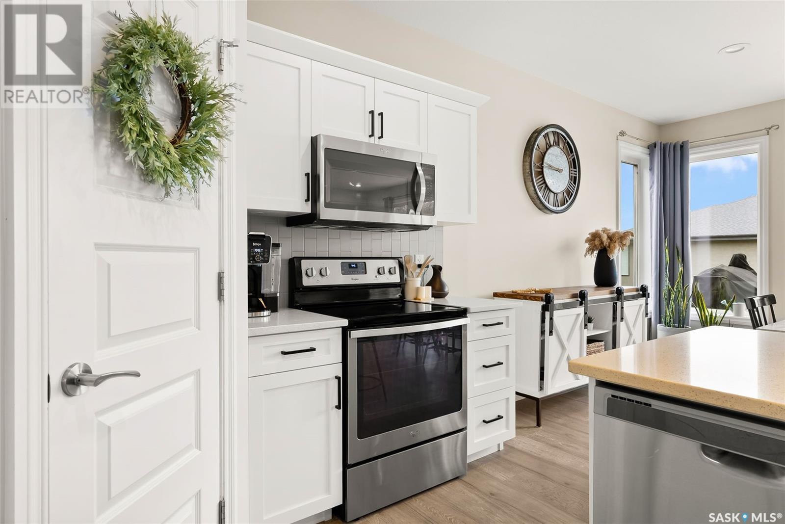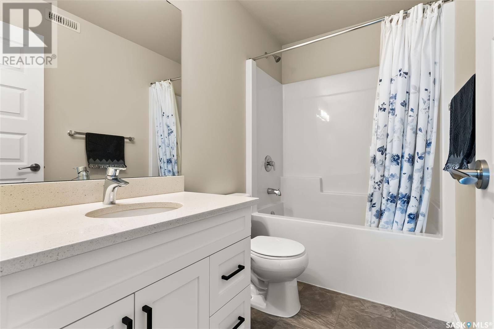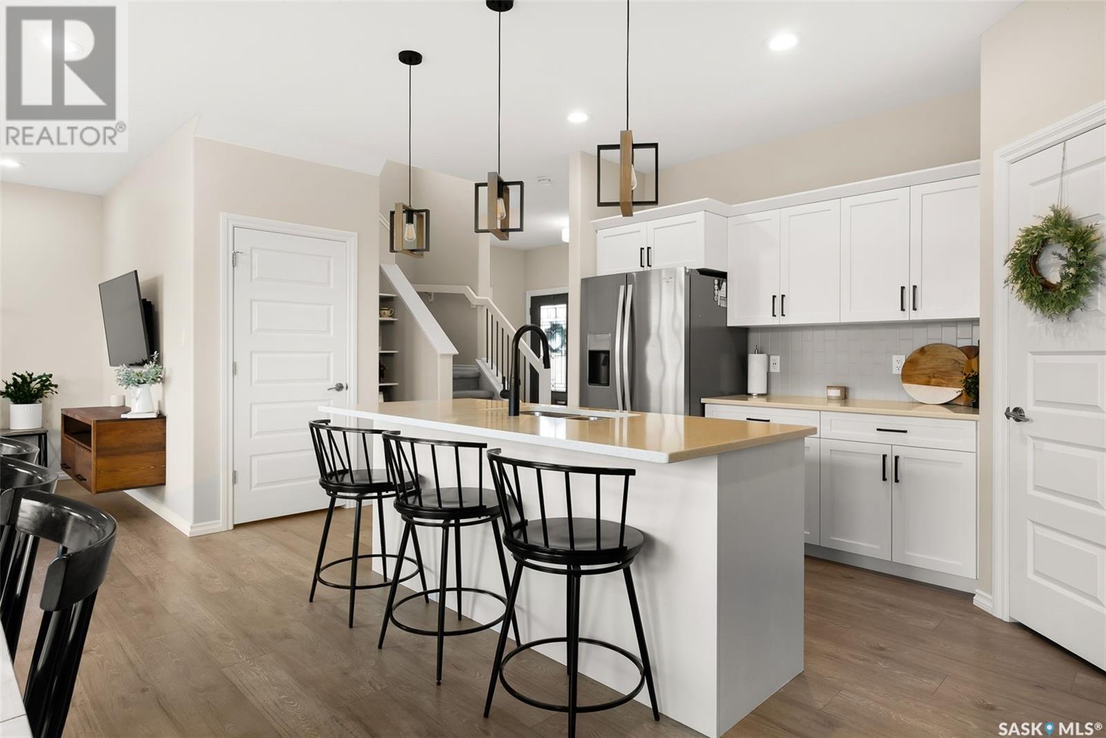 Welcome to 1 Mackenzie Road in Pilot Butte's Discovery Ridge community. This stunning home sits on a large corner lot backing a walking path and a pond/greenspace, perfect for walks with the family in the summer, and to hit up the pond for some skating and fun in the winter months. This home boasts just over 1900 sqft. of living space and is truly a must see! As you enter you are greeted by a large foyer area flowing into the spacious kitchen complete with plenty of counter and storage space. The large kitchen island, a dining area with plenty of space for a large table, and the cozy yet spacious living room makes this the perfect space to entertain and gather with friends and family. Heading upstairs you will find not 1, not 2, but 3 great sized bedrooms serviced by a 4 piece bath. Down the hall you will find the primary bedroom, complete with a walk-in closet and 5 piece ensuite, providing you with a relaxing place to unwind at the end of the day. The laundry room finishes off the 2nd floor with a touch of added convenience. Heading back downstairs you will find the patio doors connecting you to your backyard oasis including a large two tier deck and a beautifully landscaped yard backing the walking path and pond/greenspace. The un-finished basement leaves you with plenty of opportunity to create more usable living space in whatever way suits you best. This is one you truly don't want to miss, book your private viewing today! (id:43042)