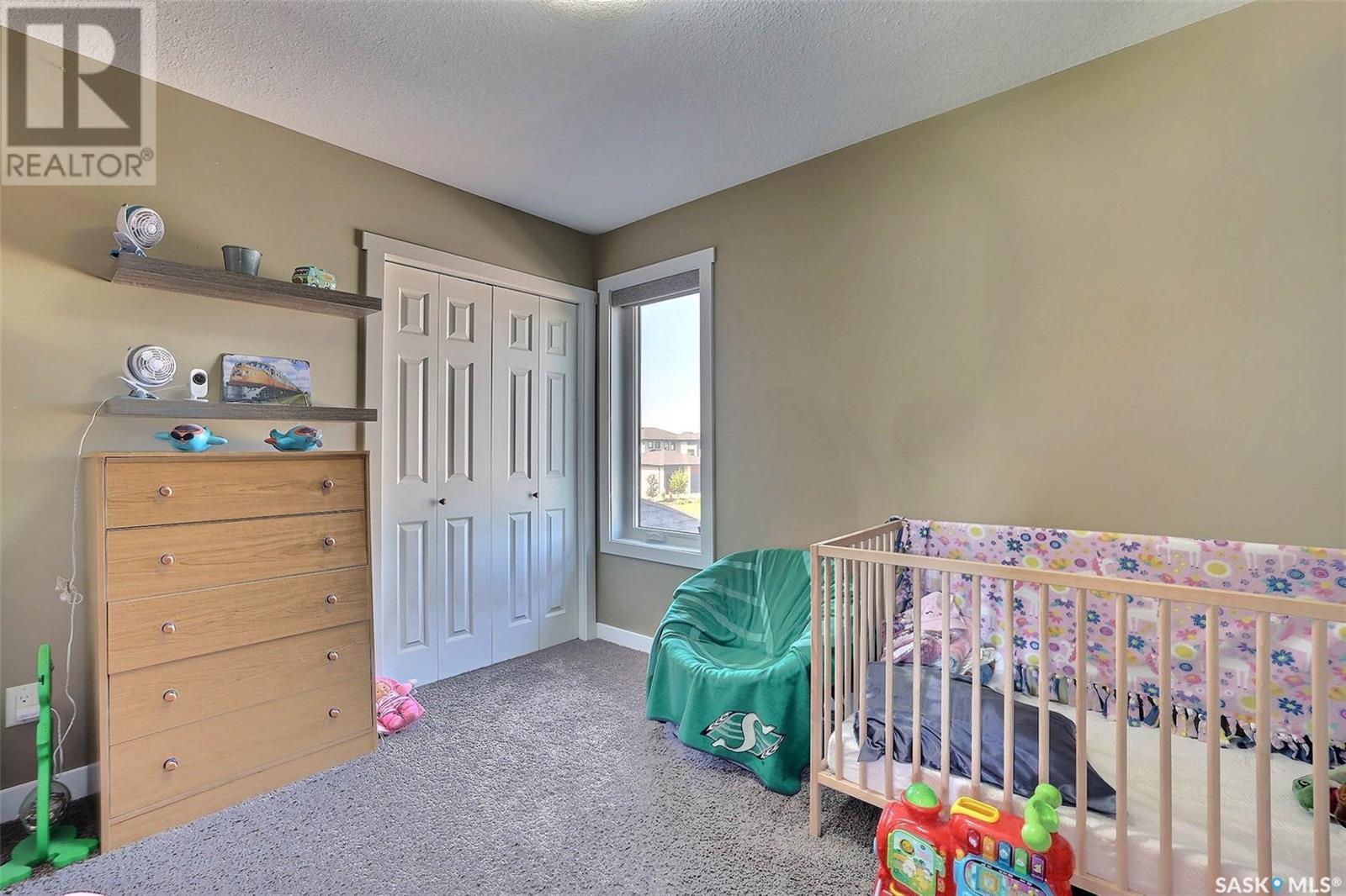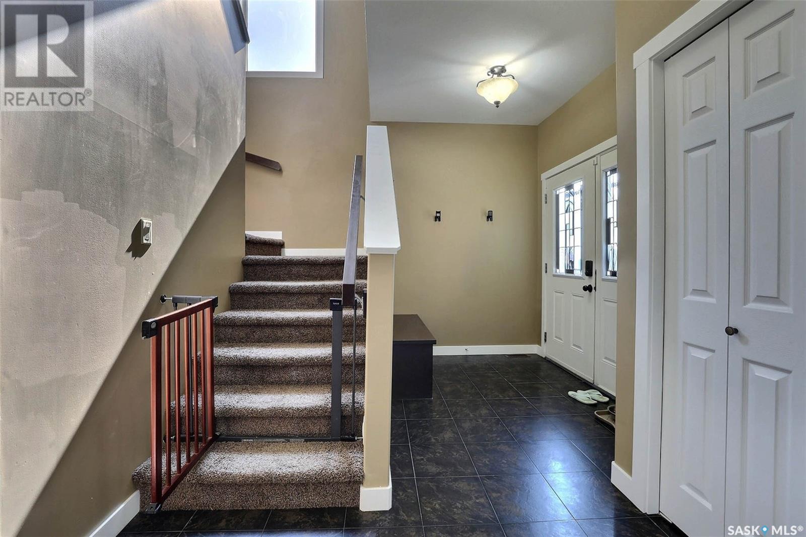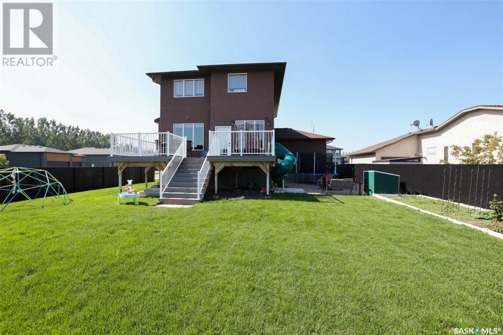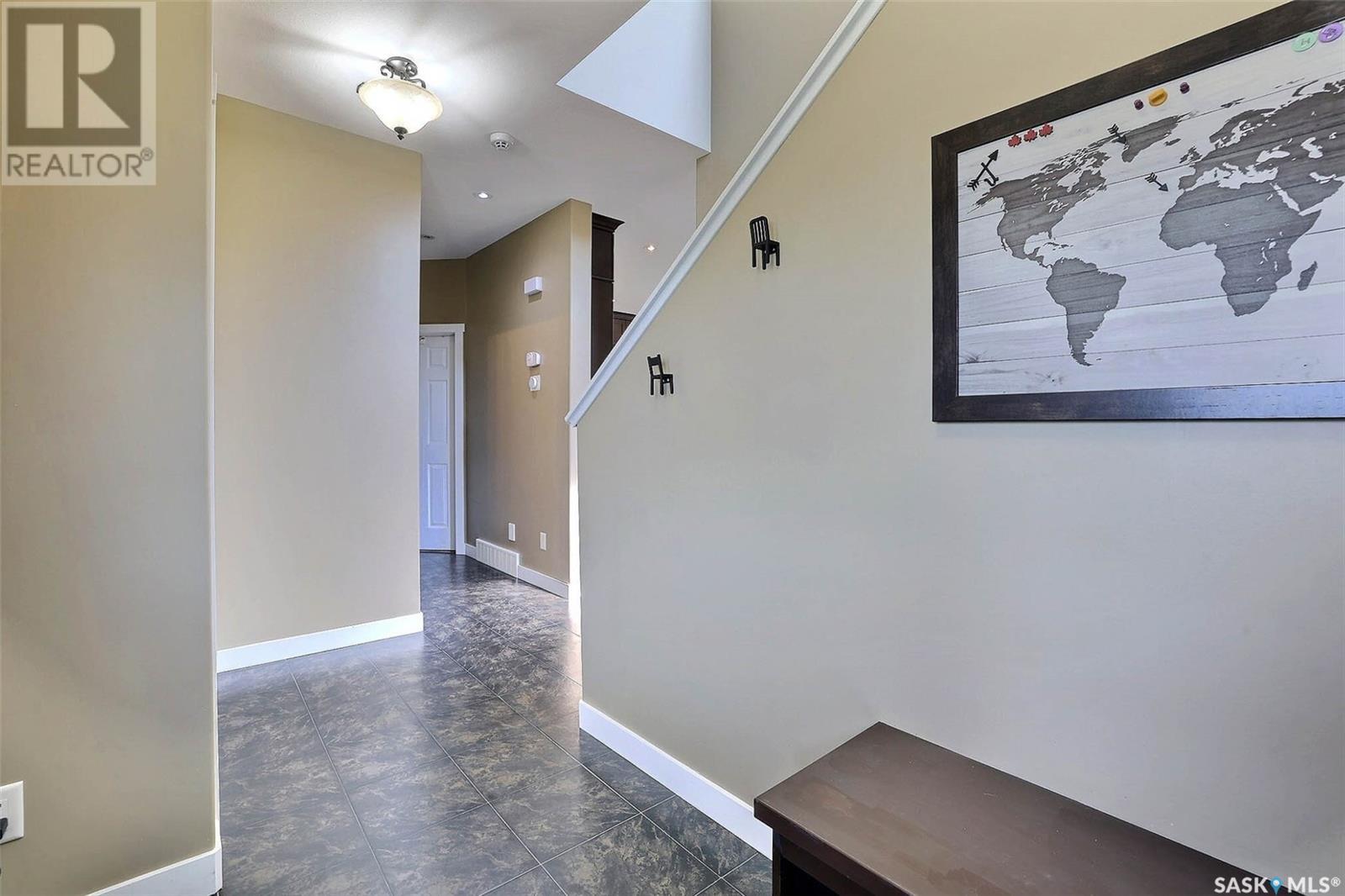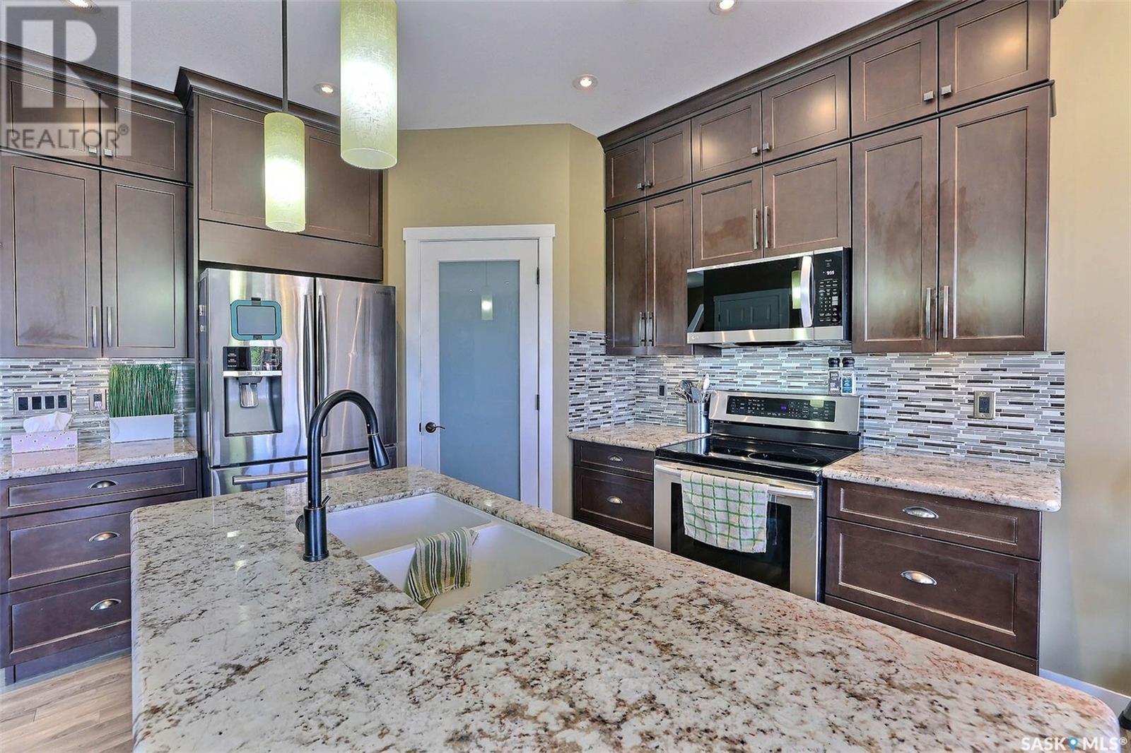 Welcome to this custom built 4 bedroom 4 bathroom home located in the growing and high demand White City area. The location is second to none with the K-8 school only a couple of blocks away and all the paths, parks and retail amenities close by and the East Regina Retail corridor less than 10 minutes away! The open floor plan features 9' ceilings a great room concept open to the custom kitchen with an island, walk thru pantry and granite counters ideal for family or entertaining! You can cozy up to the fireplace or enjoy a show with a wall of windows allowing loads of natural light into the area. There is also a convenient 2 piece bathroom and direct entry to the over sized heated 3 car garage. The second level of the home is well planned with a large primary suite including a spacious ensuite bathroom and walk-in closet. The second bedroom is a very nice size and also has a walk-in closet. There is a 3rd bedroom along with the 3rd bathroom and a so convenient 2 level laundry. The lower level is well planned with oversized windows allowing loads of light and cozy in-floor heat. This level has a family room including a big screen for movie night or the game, the 4th bedroom and 4th bathroom along with the utility room for extra storage. There is roughed in sound thru the home and also roughed-in to the oversized rear deck looking onto a large almost 1/4 acre lot fully fenced and landscaped. This home has so much to offer! Contact your Realtor today and do not miss out on this one!! (id:43042)