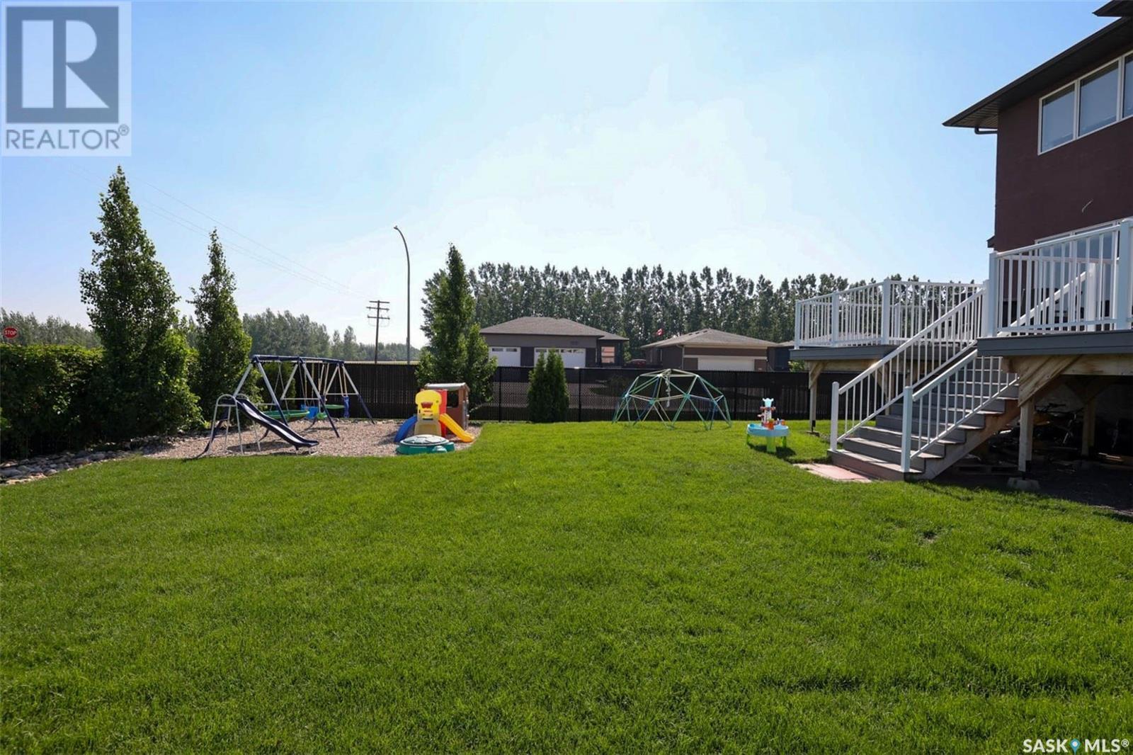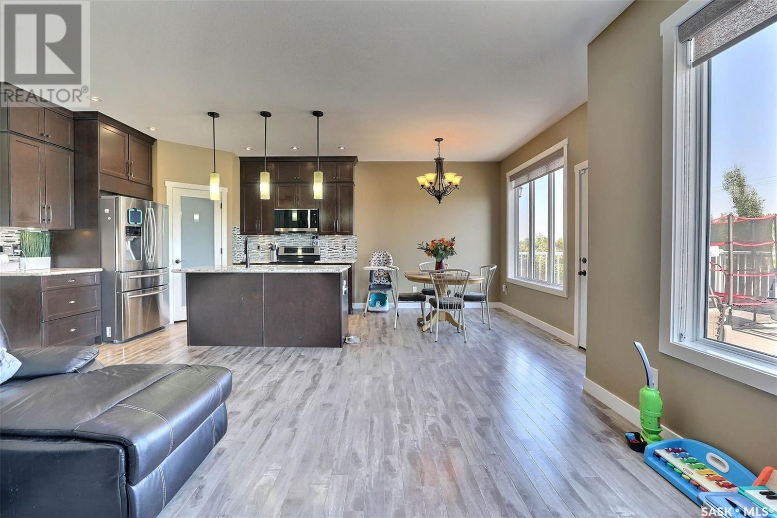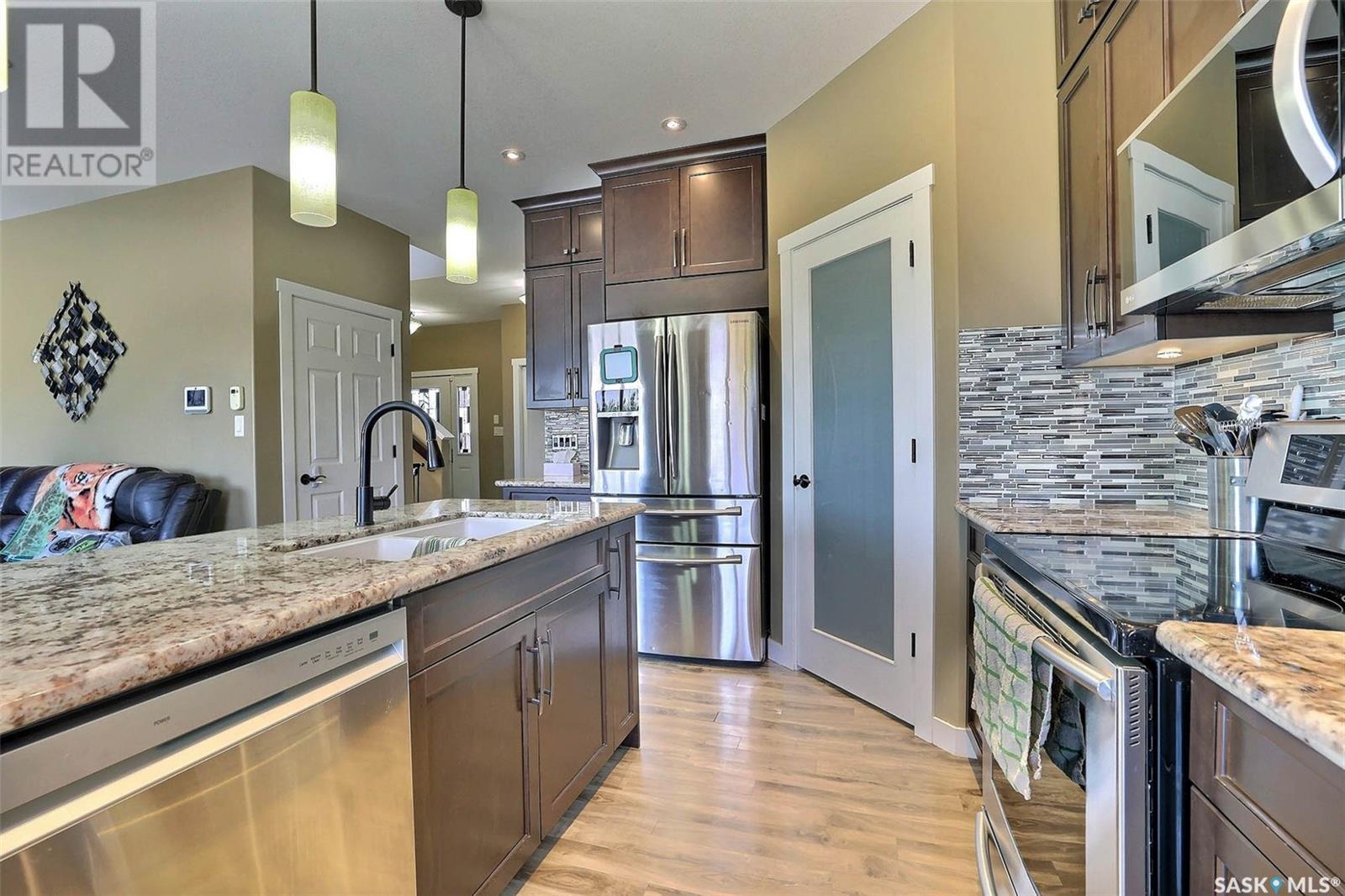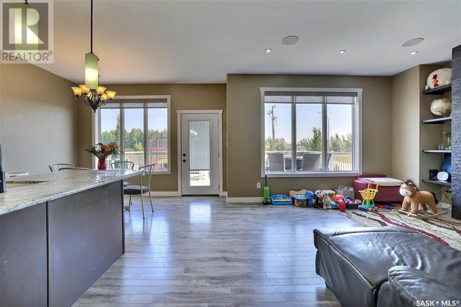Welcome to this custom built 4 bedroom 4 bathroom home located in the growing and high demand White City area. The location is second to none with the K-8 school only a couple of blocks away and all the paths, parks and retail amenities close by and the East Regina Retail corridor less than 10 minutes away! The open floor plan features 9' ceilings a great room concept open to the custom kitchen with an island, walk thru pantry and granite counters ideal for family or entertaining! You can cozy up to the fireplace or enjoy a show with a wall of windows allowing loads of natural light into the area. There is also a convenient 2 piece bathroom and direct entry to the over sized heated 3 car garage. The second level of the home is well planned with a large primary suite including a spacious ensuite bathroom and walk-in closet. The second bedroom is a very nice size and also has a walk-in closet. There is a 3rd bedroom along with the 3rd bathroom and a so convenient 2 level laundry. The lower level is well planned with oversized windows allowing loads of light and cozy in-floor heat. This level has a family room including a big screen for movie night or the game, the 4th bedroom and 4th bathroom along with the utility room for extra storage. There is roughed in sound thru the home and also roughed-in to the oversized rear deck looking onto a large almost 1/4 acre lot fully fenced and landscaped. This home has so much to offer! Contact your Realtor today and do not miss out on this one!! (id:43042)