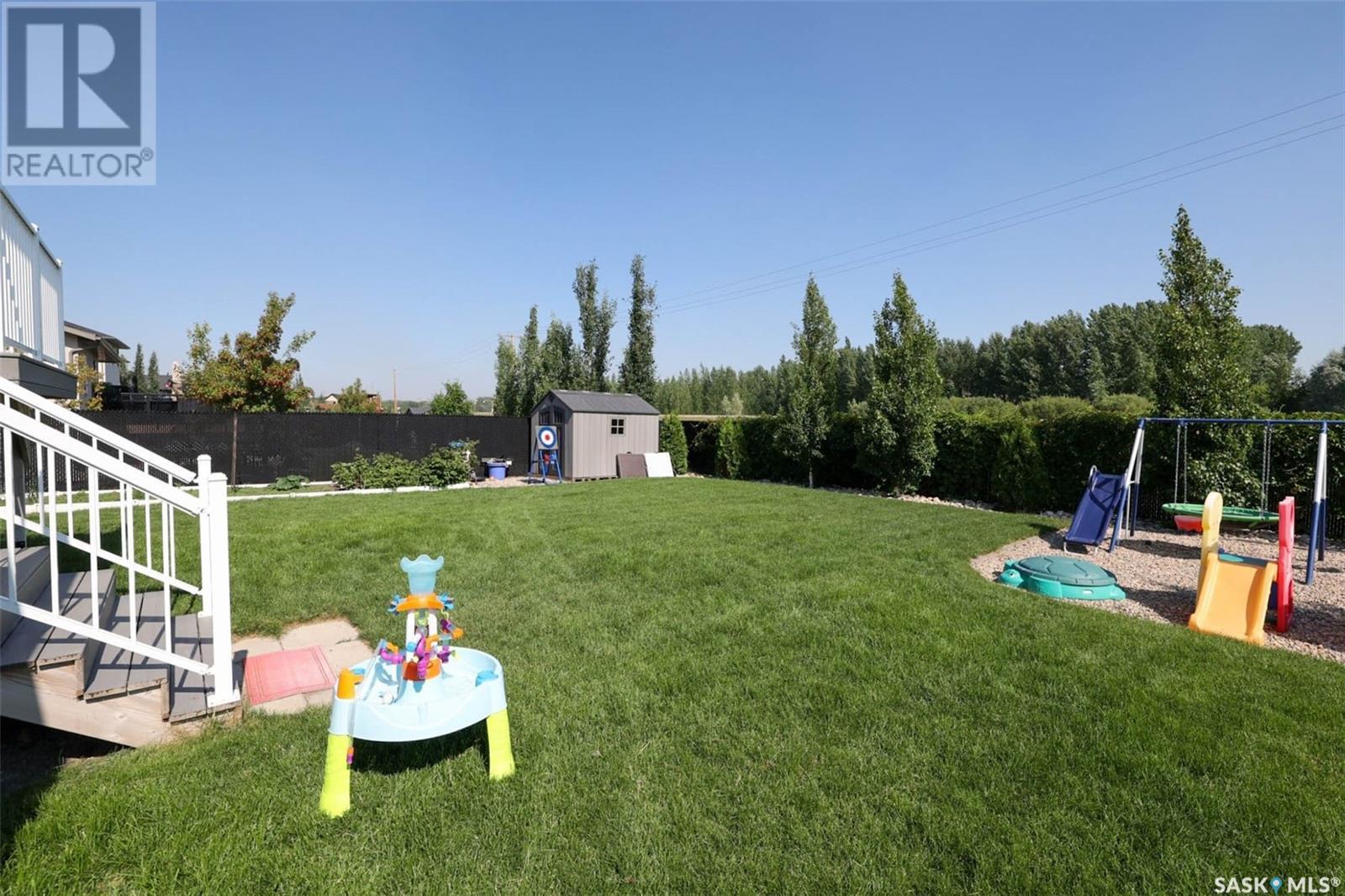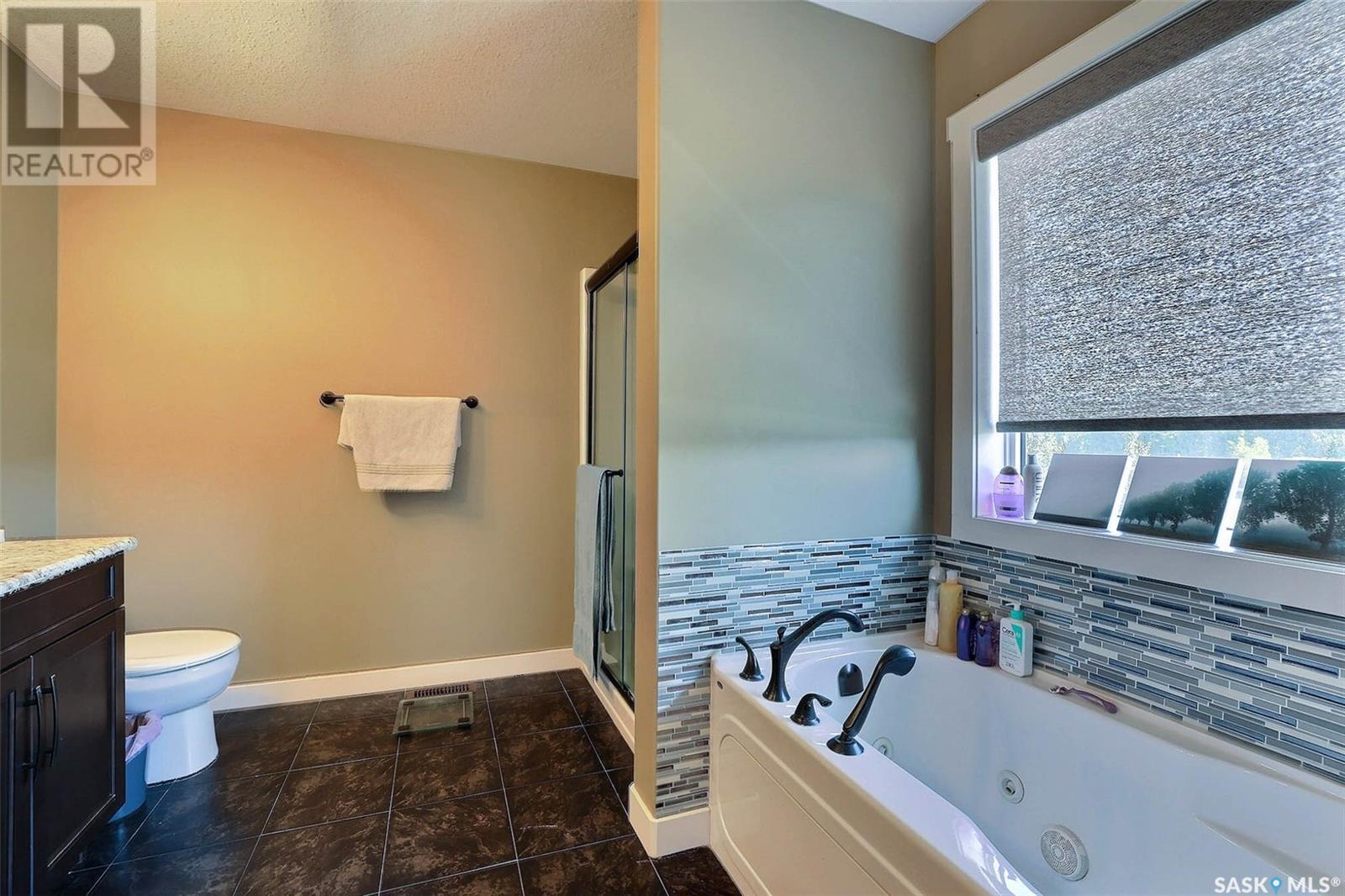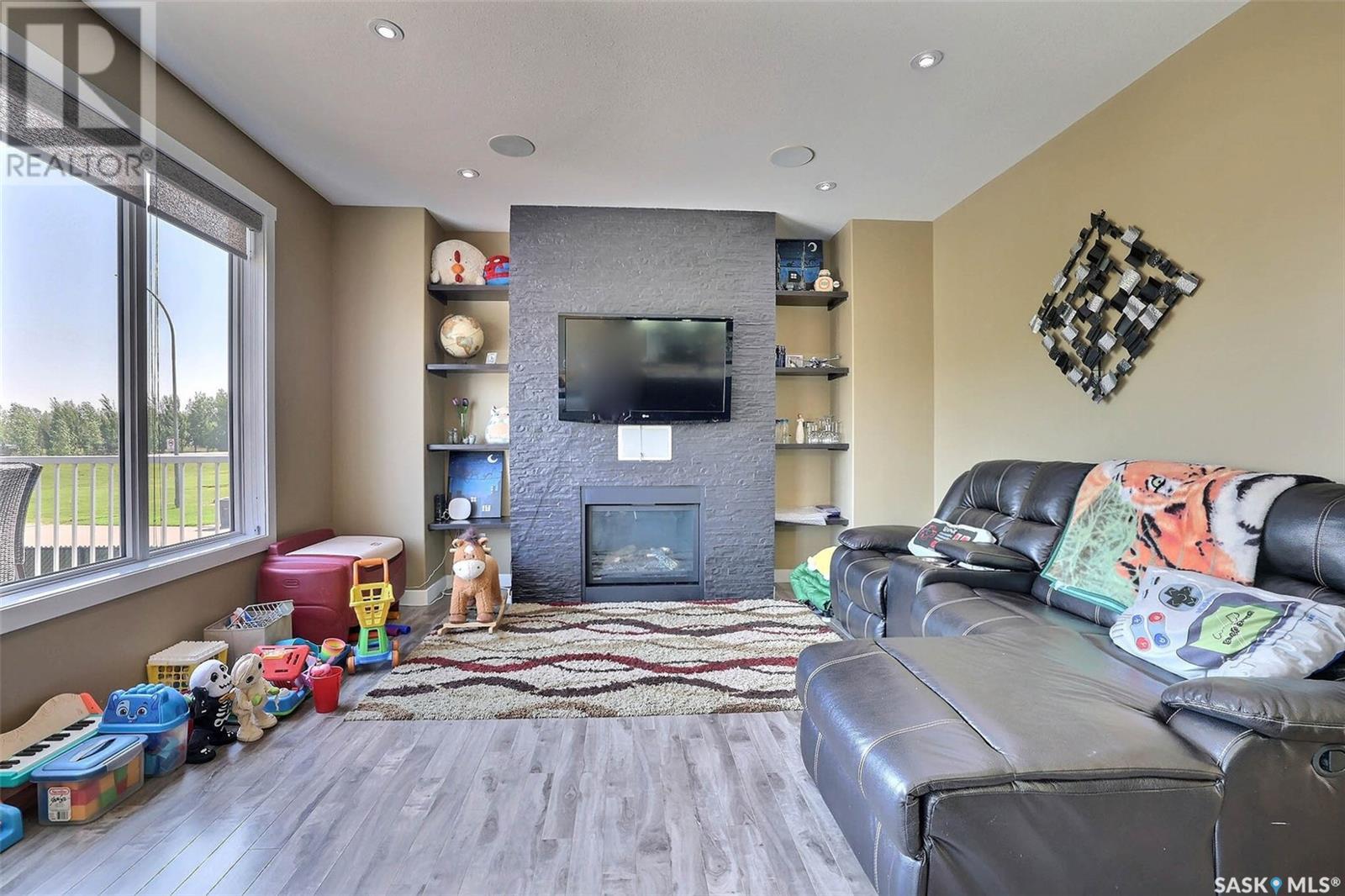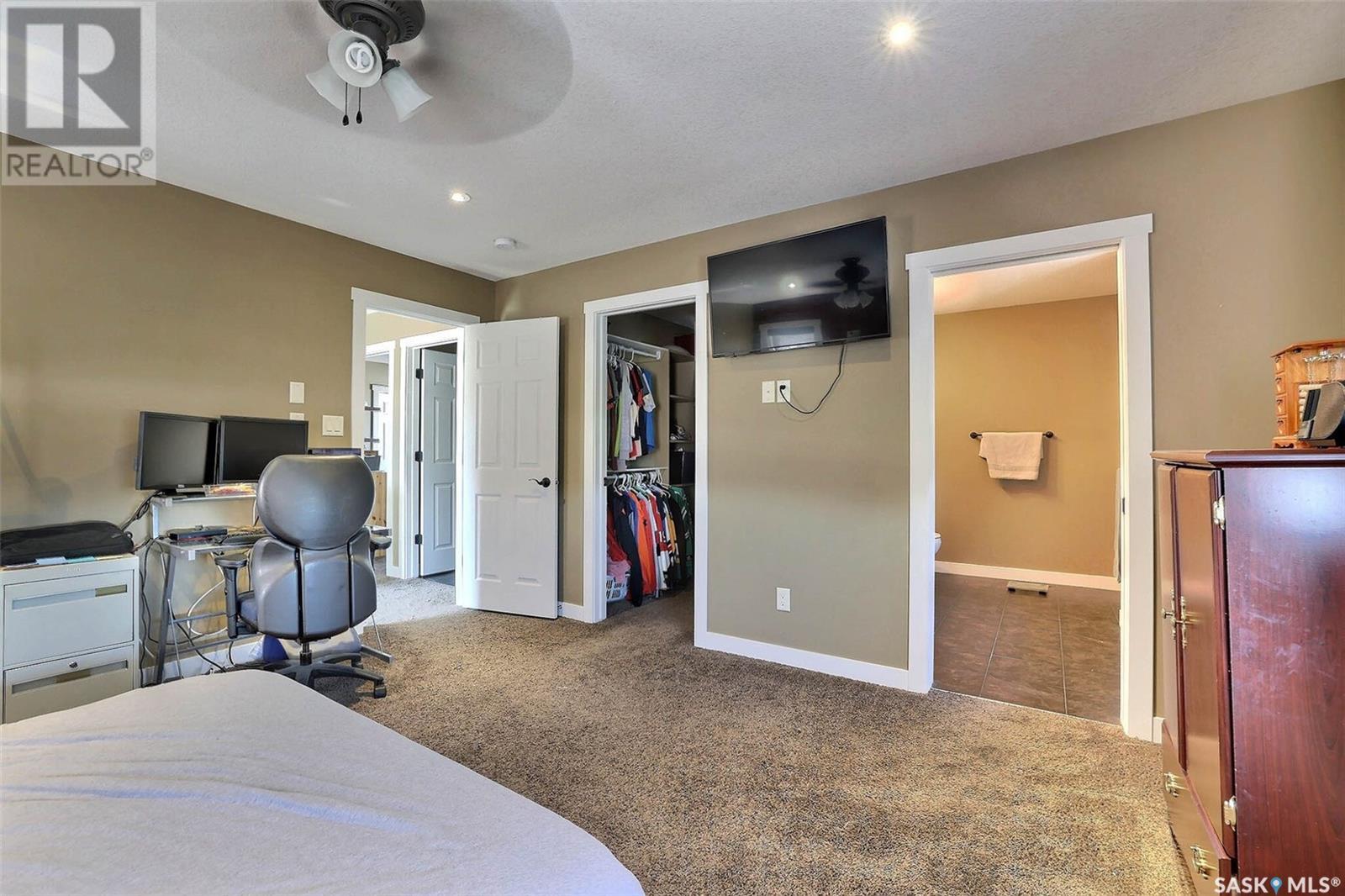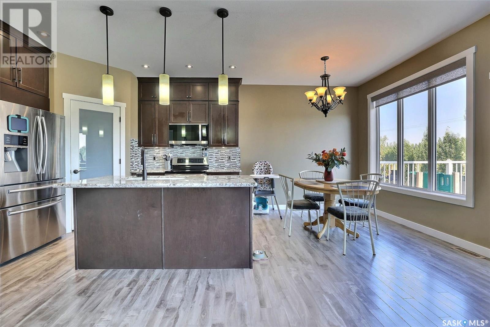 Welcome to this custom built 4 bedroom 4 bathroom home located in the growing and high demand White City area. The location is second to none with the K-8 school only a couple of blocks away and all the paths, parks and retail amenities close by and the East Regina Retail corridor less than 10 minutes away! The open floor plan features 9' ceilings a great room concept open to the custom kitchen with an island, walk thru pantry and granite counters ideal for family or entertaining! You can cozy up to the fireplace or enjoy a show with a wall of windows allowing loads of natural light into the area. There is also a convenient 2 piece bathroom and direct entry to the over sized heated 3 car garage. The second level of the home is well planned with a large primary suite including a spacious ensuite bathroom and walk-in closet. The second bedroom is a very nice size and also has a walk-in closet. There is a 3rd bedroom along with the 3rd bathroom and a so convenient 2 level laundry. The lower level is well planned with oversized windows allowing loads of light and cozy in-floor heat. This level has a family room including a big screen for movie night or the game, the 4th bedroom and 4th bathroom along with the utility room for extra storage. There is roughed in sound thru the home and also roughed-in to the oversized rear deck looking onto a large almost 1/4 acre lot fully fenced and landscaped. This home has so much to offer! Contact your Realtor today and do not miss out on this one!! (id:43042)