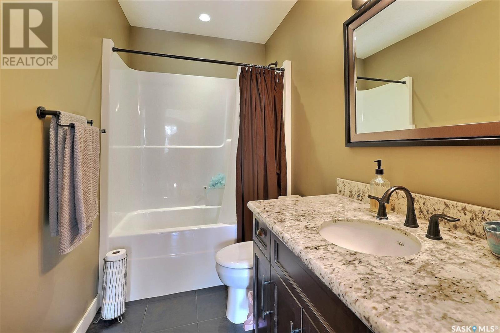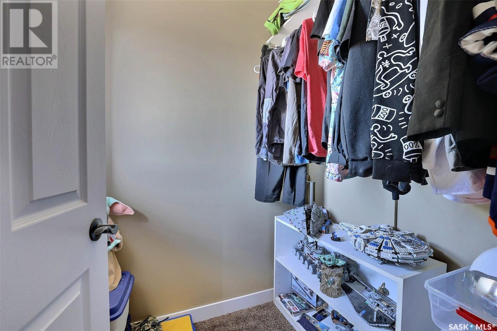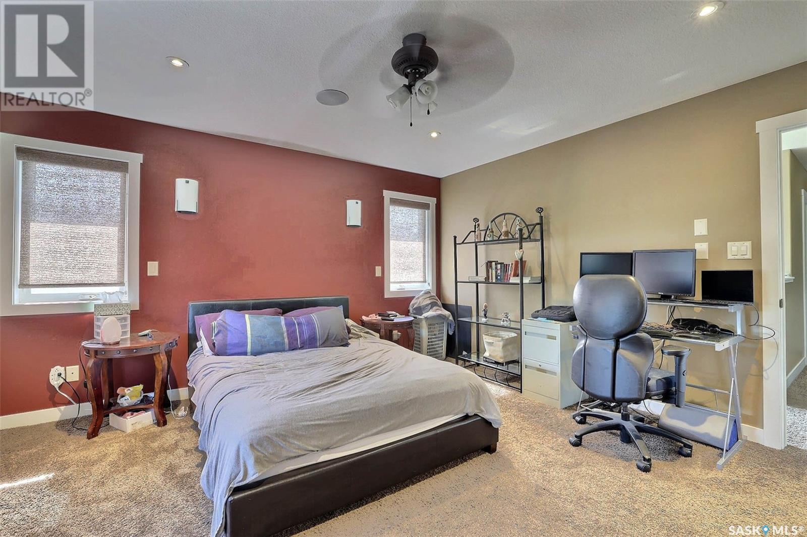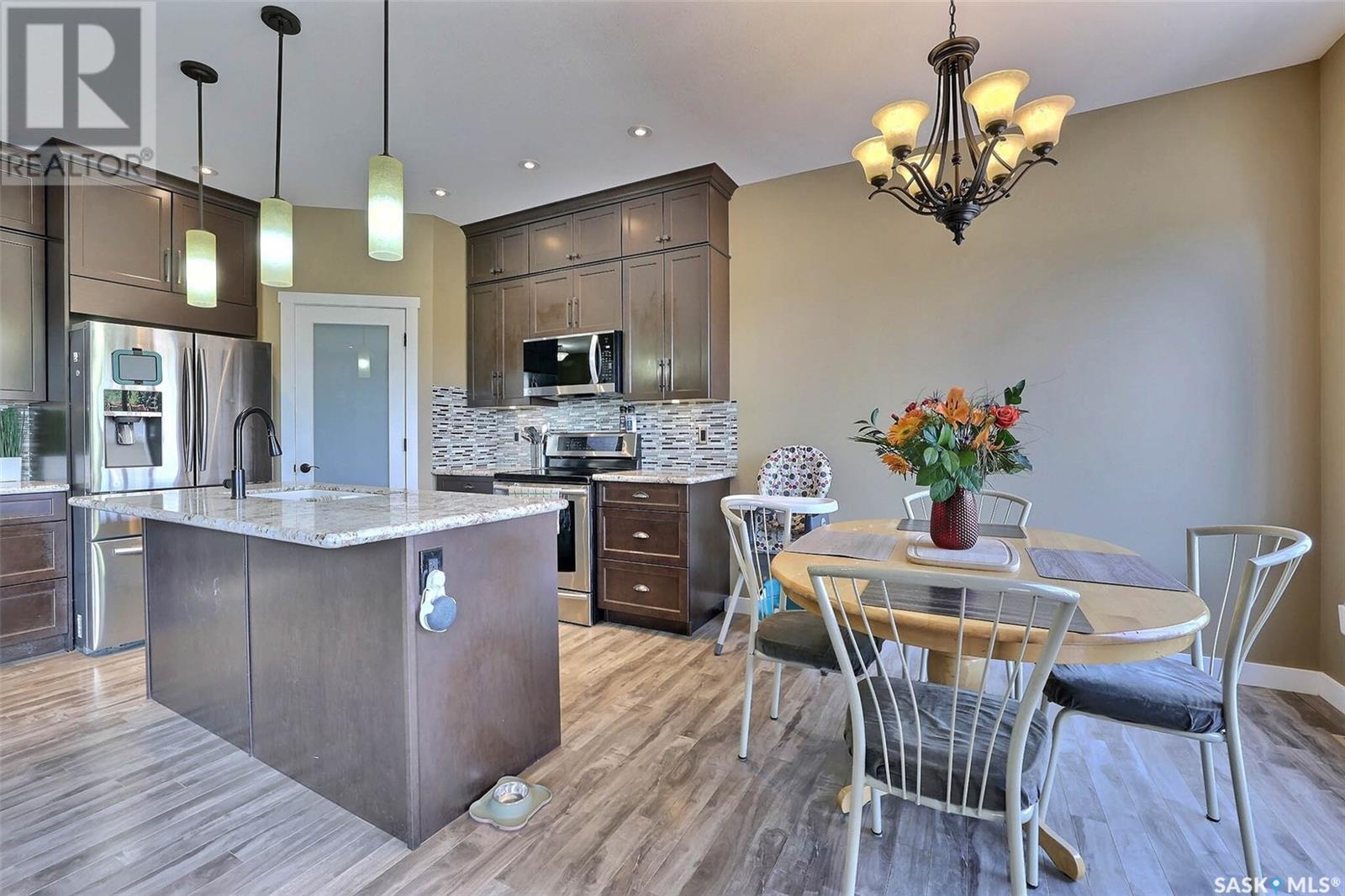 Welcome to this custom built 4 bedroom 4 bathroom home located in the growing and high demand White City area. The location is second to none with the K-8 school only a couple of blocks away and all the paths, parks and retail amenities close by and the East Regina Retail corridor less than 10 minutes away! The open floor plan features 9' ceilings a great room concept open to the custom kitchen with an island, walk thru pantry and granite counters ideal for family or entertaining! You can cozy up to the fireplace or enjoy a show with a wall of windows allowing loads of natural light into the area. There is also a convenient 2 piece bathroom and direct entry to the over sized heated 3 car garage. The second level of the home is well planned with a large primary suite including a spacious ensuite bathroom and walk-in closet. The second bedroom is a very nice size and also has a walk-in closet. There is a 3rd bedroom along with the 3rd bathroom and a so convenient 2 level laundry. The lower level is well planned with oversized windows allowing loads of light and cozy in-floor heat. This level has a family room including a big screen for movie night or the game, the 4th bedroom and 4th bathroom along with the utility room for extra storage. There is roughed in sound thru the home and also roughed-in to the oversized rear deck looking onto a large almost 1/4 acre lot fully fenced and landscaped. This home has so much to offer! Contact your Realtor today and do not miss out on this one!! (id:43042)