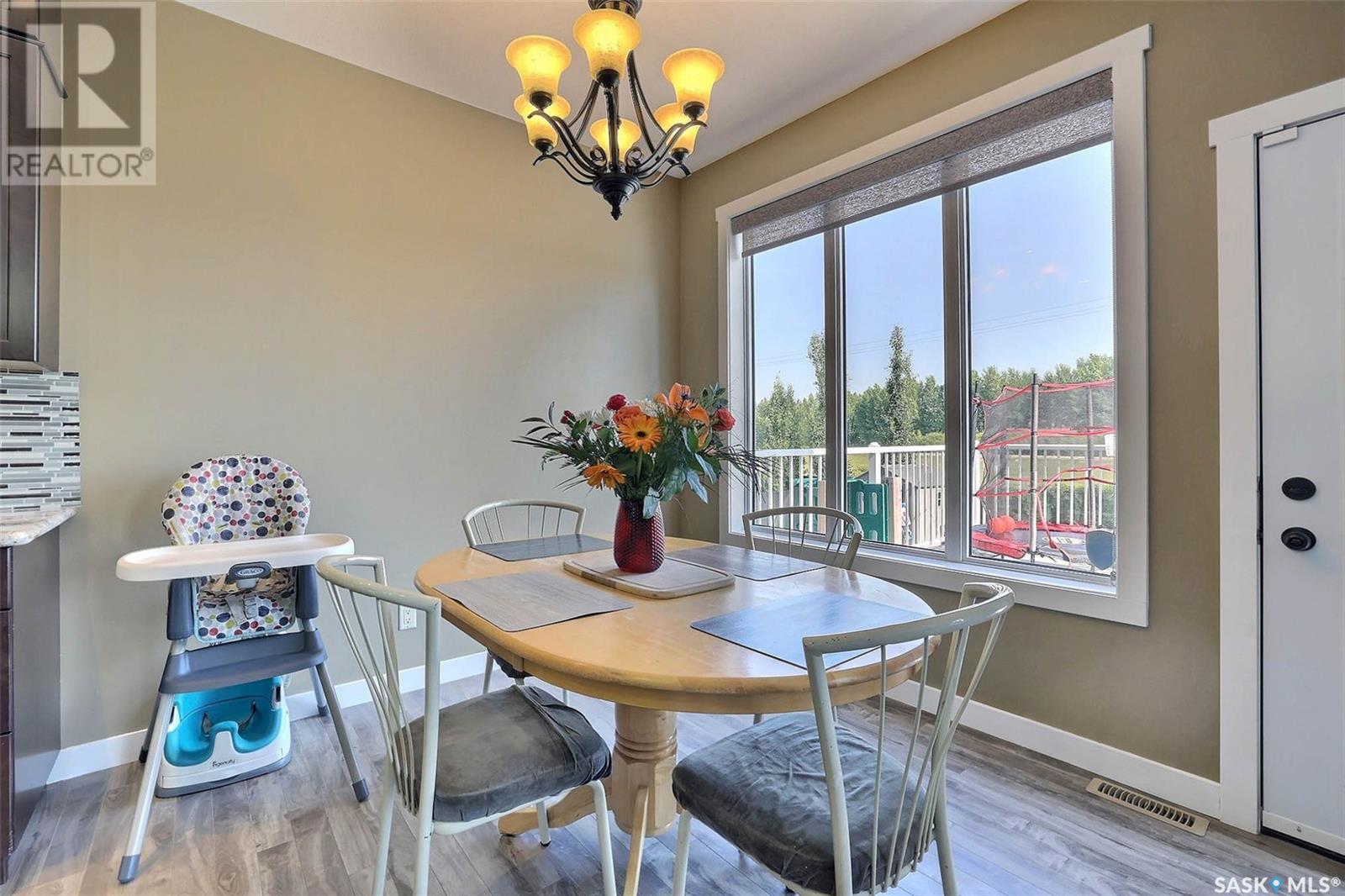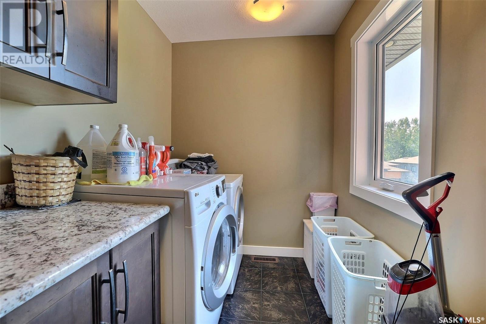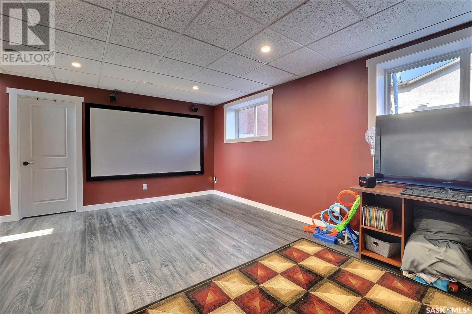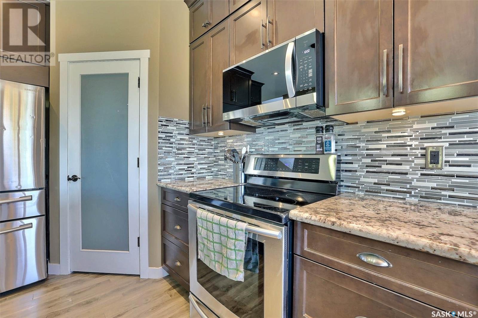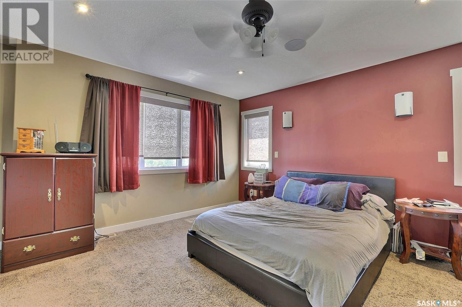 Welcome to this custom built 4 bedroom 4 bathroom home located in the growing and high demand White City area. The location is second to none with the K-8 school only a couple of blocks away and all the paths, parks and retail amenities close by and the East Regina Retail corridor less than 10 minutes away! The open floor plan features 9' ceilings a great room concept open to the custom kitchen with an island, walk thru pantry and granite counters ideal for family or entertaining! You can cozy up to the fireplace or enjoy a show with a wall of windows allowing loads of natural light into the area. There is also a convenient 2 piece bathroom and direct entry to the over sized heated 3 car garage. The second level of the home is well planned with a large primary suite including a spacious ensuite bathroom and walk-in closet. The second bedroom is a very nice size and also has a walk-in closet. There is a 3rd bedroom along with the 3rd bathroom and a so convenient 2 level laundry. The lower level is well planned with oversized windows allowing loads of light and cozy in-floor heat. This level has a family room including a big screen for movie night or the game, the 4th bedroom and 4th bathroom along with the utility room for extra storage. There is roughed in sound thru the home and also roughed-in to the oversized rear deck looking onto a large almost 1/4 acre lot fully fenced and landscaped. This home has so much to offer! Contact your Realtor today and do not miss out on this one!! (id:43042)