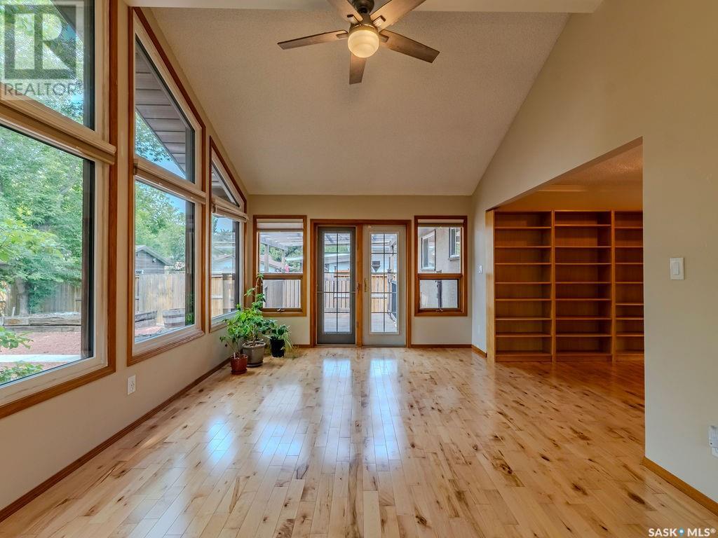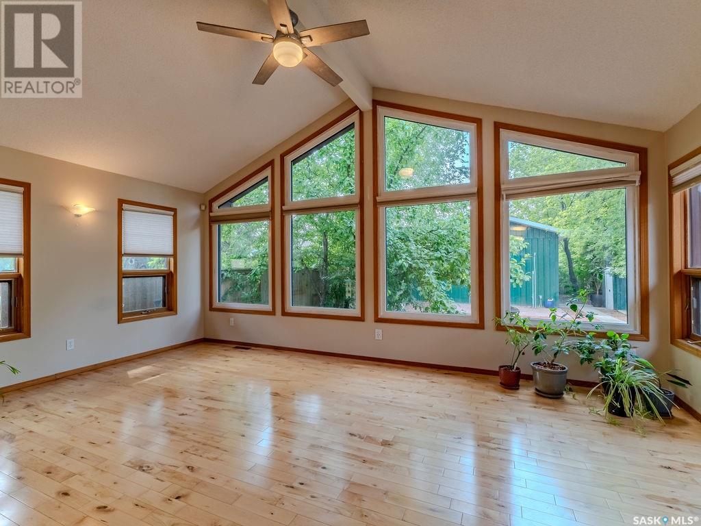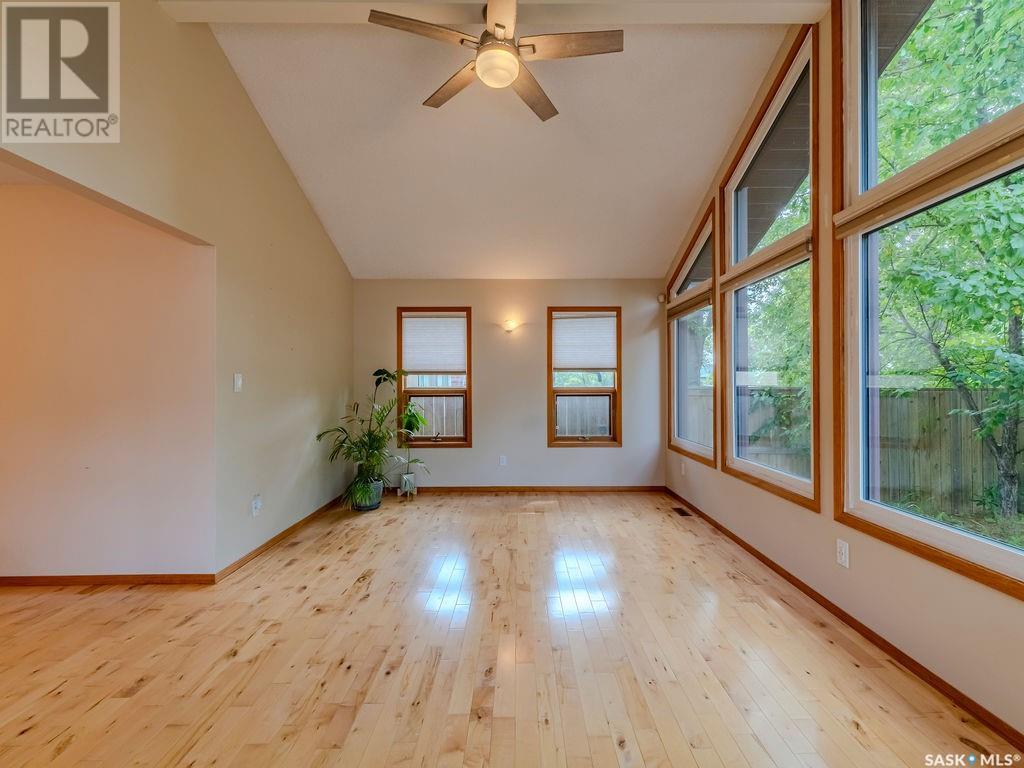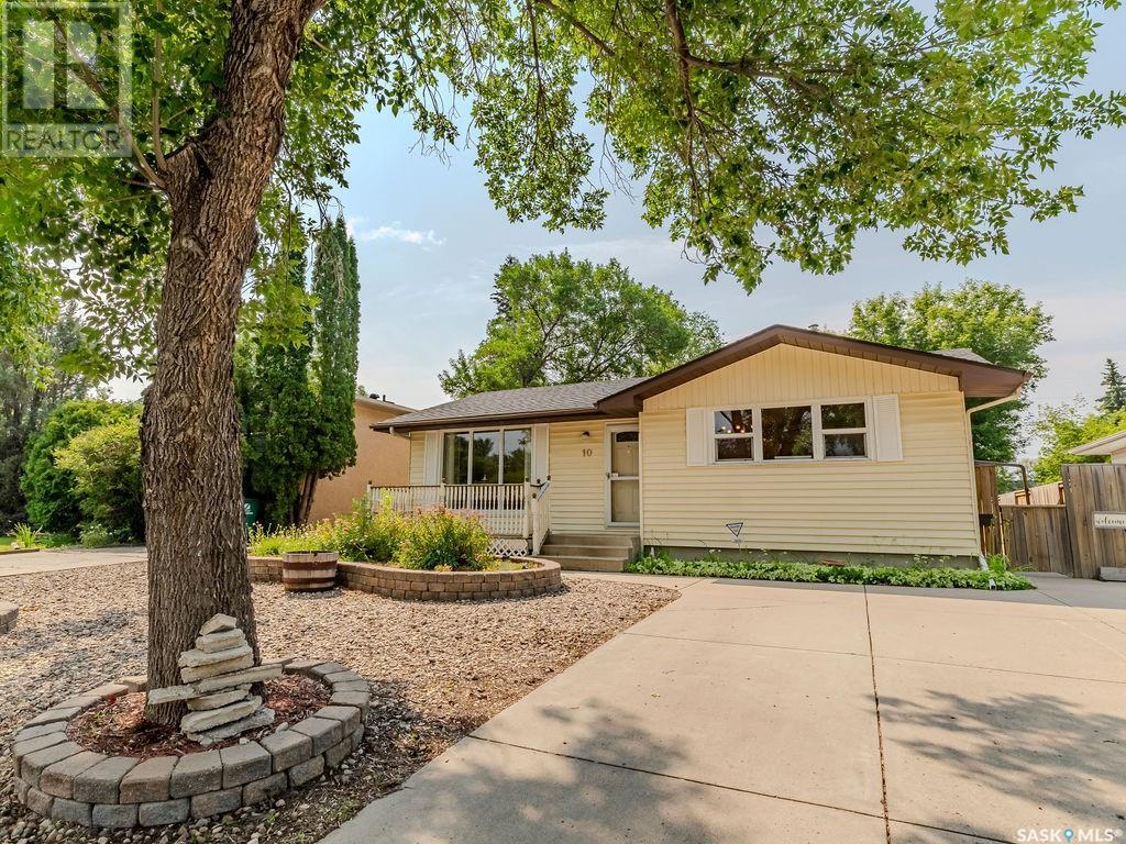 Welcome to 10 Vickies Place - a picturesque 2 bedroom, 2 den home in the well-established Forest Grove area of Saskatoon. This home has a thoughtfully unique layout showcasing tons of natural light. Walking in you will find a formal dining area that can also be used as a family room with built in cabinets and hardwood floors. The updated modern kitchen has an induction cooktop and built in oven and stone countertops. Walking to the back of the home you will be greeted with a spacious living room with large windows looking out into your backyard. Also on the main floor is a primary bedroom with 3pc ensuite and secondary bedroom. Downstairs has an additional family space and two dens that can be converted into bedrooms by adding windows, and a 3rd bathroom. Outside you will find a low-maintenance yard with beautiful deck, mature trees and patio. The detached garage measures 22x27, has high ceilings and a 240v panel. Updates to note - windows in bedrooms (2017), high efficiency furnace (2017), central air, shingles (2013), south facing windows (2022). Don't miss out on this beautiful family home, call for more details (id:43042)