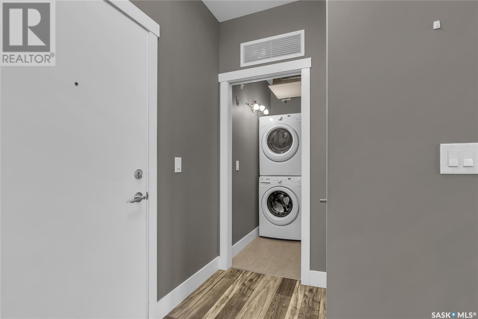Great opportunity to own a modern, move-in ready condo in Saskatoon's Evergreen neighbourhood. This stylish 2-bedroom, 2-bathroom main-level condo at The Brixton is perfect for professionals, small families, or downsizers. It is a pet-friendly home (up to two small pets allowed) and has a bright open-concept layout with large windows, sleek two-tone cabinets, stainless steel appliances, and durable LVP flooring. Enjoy relaxing or entertaining on the spacious balcony, plus the convenience of in-suite laundry, one underground parking stall, and secure underground storage. The Brixton offers an amenities room and elevator. Located in the heart of Evergreen, you’re steps from parks, trails, schools, shopping, and dining. Don’t miss this move-in-ready gem! (id:43042)