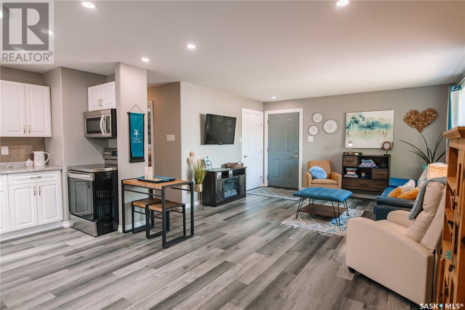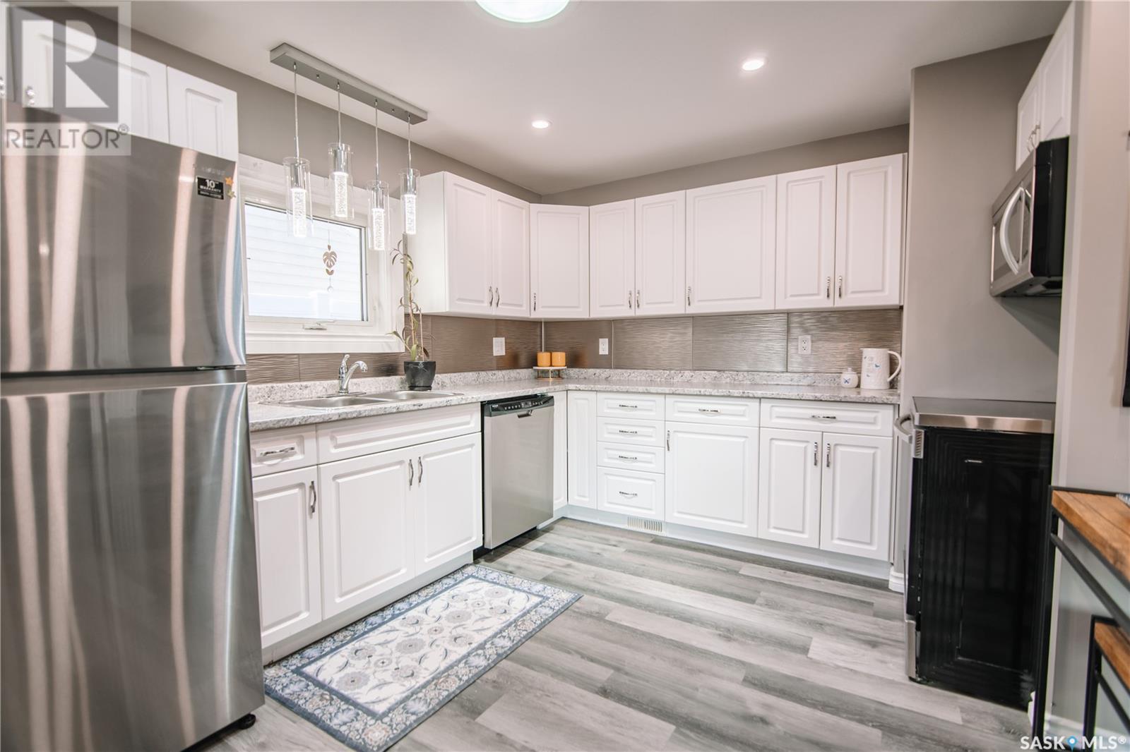 Are you looking for a home where you can move in and just live and not renovate, you may have just found it! Located in the desirable Palliser area in Moose Jaw, this home has major curb appeal starting with its attached single garage and comfy front deck. As you enter the home you find an open concept living space with an abundance of natural light. The kitchen is highlighted with plenty of upgraded white cabinets, soft close drawers and includes all the appliances. The living room is spacious and the whole main floor sports trendy finishing throughout. There are three good sized bedrooms, one four piece bathroom and a separate laundry room completing this 975 square feet of living space. The single garage is attached to the home and provides direct entry to your home. Heading out the back garage door you find your own personal oasis highlighted by a large private deck, a fully fenced yard, garden area and firepit. Some of the numerous upgrades include windows, doors, siding, shingles, furnace, on demand water heater, kitchen cabinets and counters, lighting, electrical panel, central air, keyless entry and flooring. This home is move in ready and is waiting for you to make this the next chapter of your home ownership journey!! (id:43042)