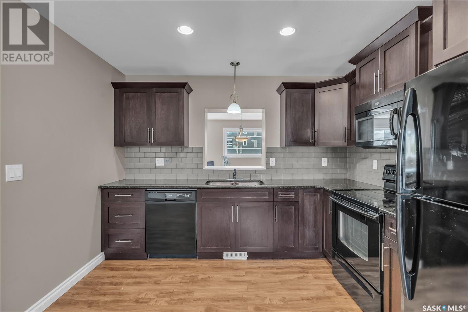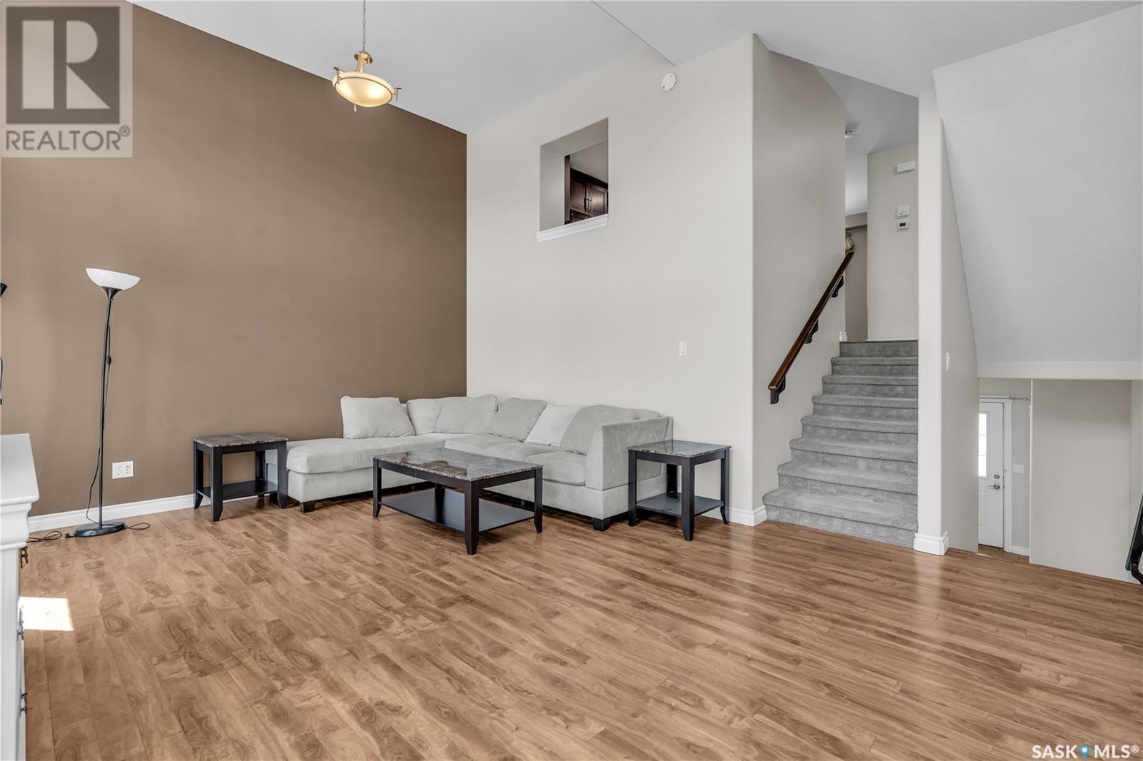 A Beautiful high-end townhouse for sale in sought-after Stonebridge! This stunning property offers 3 bedrooms, 4 bathrooms, and 1,467 sqft of fully developed living space, this well-maintained home is move-in ready and perfect for families or professionals. From the moment you enter the spacious front foyer, you'll be impressed by the thoughtful layout and natural light. The main level features a stunning, sunlit living room with soaring 12'6" ceilings, large windows, and patio doors that open to your private balcony—an ideal spot to entertain or enjoy your morning coffee while watching the sunrise. The second level showcases a stylish kitchen and dining area, complete with rich espresso cabinetry, stainless steel appliances, a tile backsplash, and a convenient 2-piece powder room for guests. Upstairs on the third level, you’ll find all three bedrooms, including a generous primary suite with a walk-in closet and a 4-piece en-suite. An additional 4-piece bathroom completes this level. In the basement level, you will a family room with another 4-piece bathroom for your additional living space. The utility room and a storage room also locate on this level. Don't miss the video tour on YouTube, and contact your local Saskatoon REALTOR® today to schedule a private showing! (id:43042)