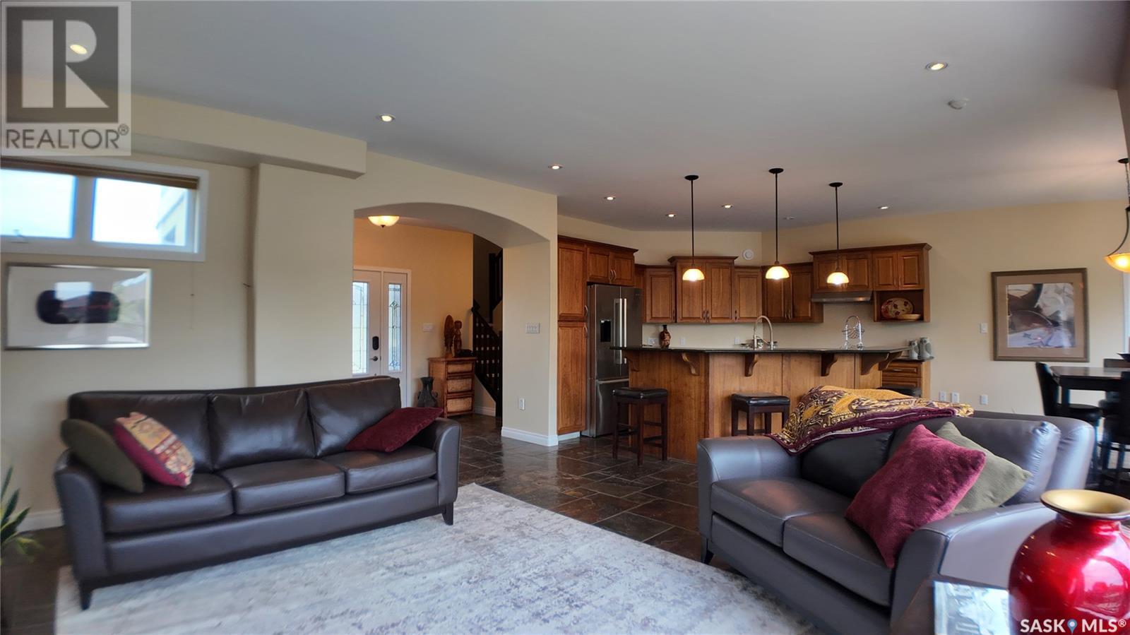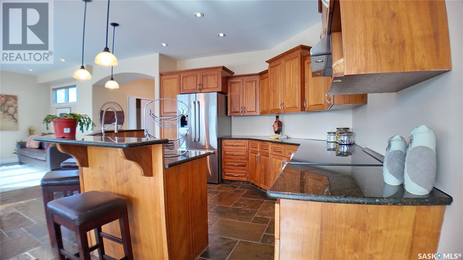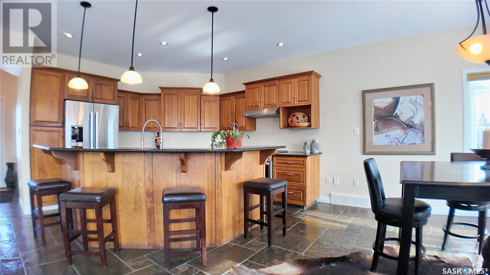 Step into nearly 3,100 sq ft of well-planned living space in this custom Fairview two-storey, where quality craftsmanship, innovative design, and comfort come together. With a wide layout, triple-pane windows, and slate finishes throughout, this home offers everyday function with long-lasting style. The main floor features an open-concept kitchen, dining, and living area — the size of many complete bungalows. Granite countertops, Bosch appliances, and custom walnut cabinets create a kitchen that’s as beautiful as it is practical. Appliances were purchased new and remain unused. The main-floor bedroom makes an ideal home office, and the laundry/mudroom leads directly to the finished, painted garage. Upstairs offers three generous bedrooms and two full, slate-finished bathrooms. The fully developed basement includes a fourth bedroom, another full bathroom with slate, a large family room, and a finished bonus room (without a window), perfect for crafts, storage, or hobbies. Even the under-stair storage is finished, lit, and ready to use. Outside, enjoy a 72x114 lot with a 5-car paved driveway, a fenced yard, an interlocking block patio with a fire pit, underground sprinklers, and a 12x16 deck featuring aluminum railing. Additional features: real slate flooring (pet-friendly & non-slip), hot water on demand, water softener, central vac, 200-amp panel, air exchanger, and furnace replaced in 2021. A portion of the roof (garage and bump-out) was reshingled in 2023 No known deficiencies—this home has been well cared for and is truly move-in ready. Floor plans are available to help you explore the layout. Built in 2007, this energy-efficient home is filled with thoughtful extras. Come see for yourself the value this Fairview home offers. (id:43042)