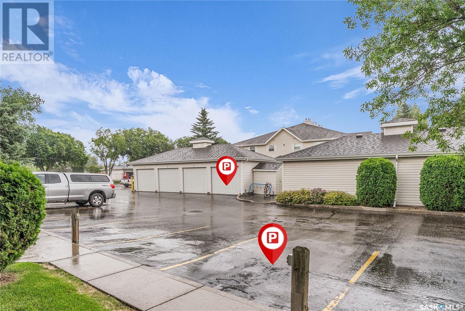 $361 MonthlyElectrified designated Parking Spot plus garage in this bungalow style, main floor coach home is well kept situated overlooking green space. Living room has patio doors to patio, good good-sized dining room, a white kitchen with stainless steel appliances, walk - in pantry. Two bedrooms with the Primary having a walk-in closet. The clubhouse has a rec/fitness center for all owners to enjoy. Perfect for University students with transit direct to U of S. Don't miss this one! (id:43042)