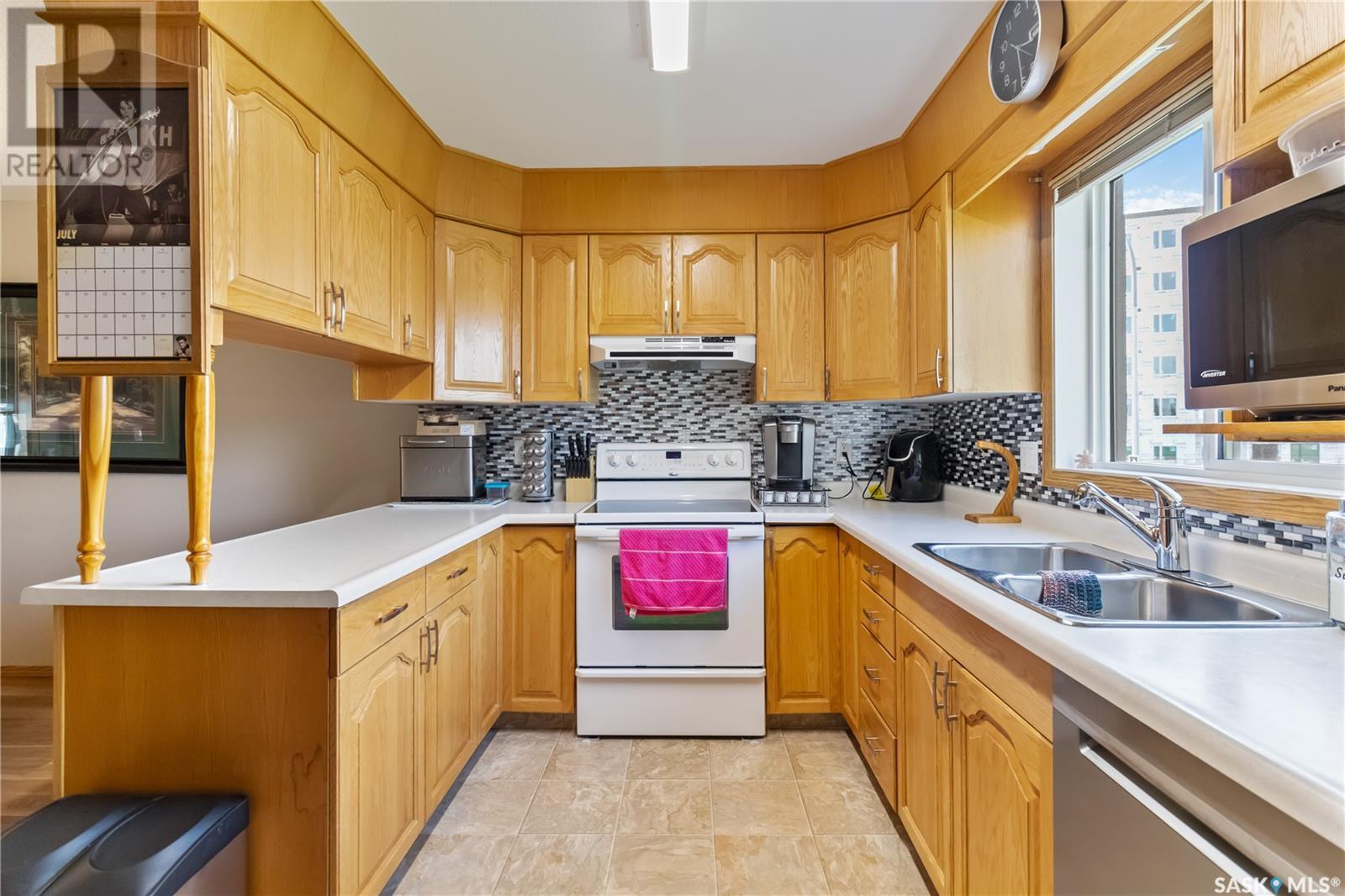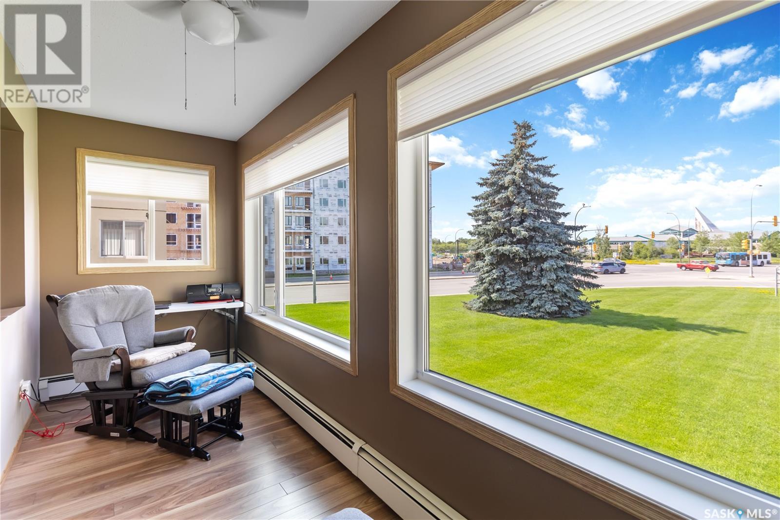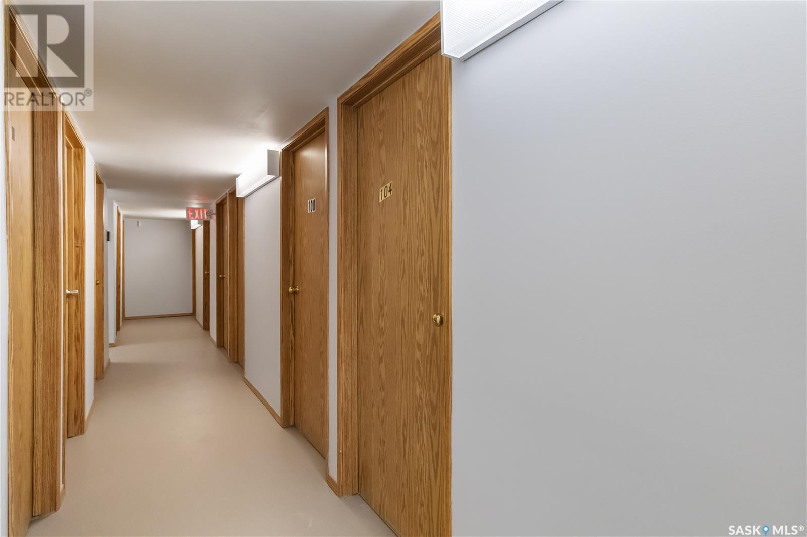 $650 MonthlyWelcome to 104-103 Keevil Cres in University Heights! This 1,577 sq. ft. condo features 2 bedrooms, a den and 2 full bathrooms. Not only is the size impressive, but the condition is equally remarkable. Shows 10/10! The kitchen is bright and inviting with new led lighting, tile backsplash, solid oak cabinets & a newer dishwasher. Off the dining area is a den with glass door - could easily be used as a third bedroom. The living room provides ample space for all furniture, with an additional sitting area/sun room at the back, perfect for enjoying coffee and reading your favorite book. Two bedrooms are down the hall and you will be impressed by the size - these are not your average bedroom sizes. The primary bedroom is 14.2x14.7 and includes a walk-in closet and a 3-piece en-suite. The 2nd bedroom is also large (13x14.7) and the main 4 piece bath is conveniently located across the hall. The laundry room is also substantial (9.5x12) offering plenty of storage space, room for another fridge and freezer and offers a newer washer and dryer. Other features include: Newer triple-pane windows throughout the condo with newer blinds and screens, two new air conditioners, updated laminate flooring, lighting and paint as well as 2 new tall toilets in the bathrooms. The condo also comes with a large storage room near the parkade (5x9x7), one underground parking stall, and free exterior parking for any extra vehicles. The building itself has undergone numerous upgrades in recent years, including a renovated recreation room with a pool table and kitchen, refreshed entryway and newly painted common areas. Please note, no pets are allowed. Condo fees include lawn care, snow removal, heat, water, sewer, garbage, common insurance, & reserve fund. The owners report that the reserve fund is in excellent condition. The building is aimed towards 55+. If you're looking for an active community with game nights, potlucks, bingo nights etc. this is the perfect place for you! (id:43042)