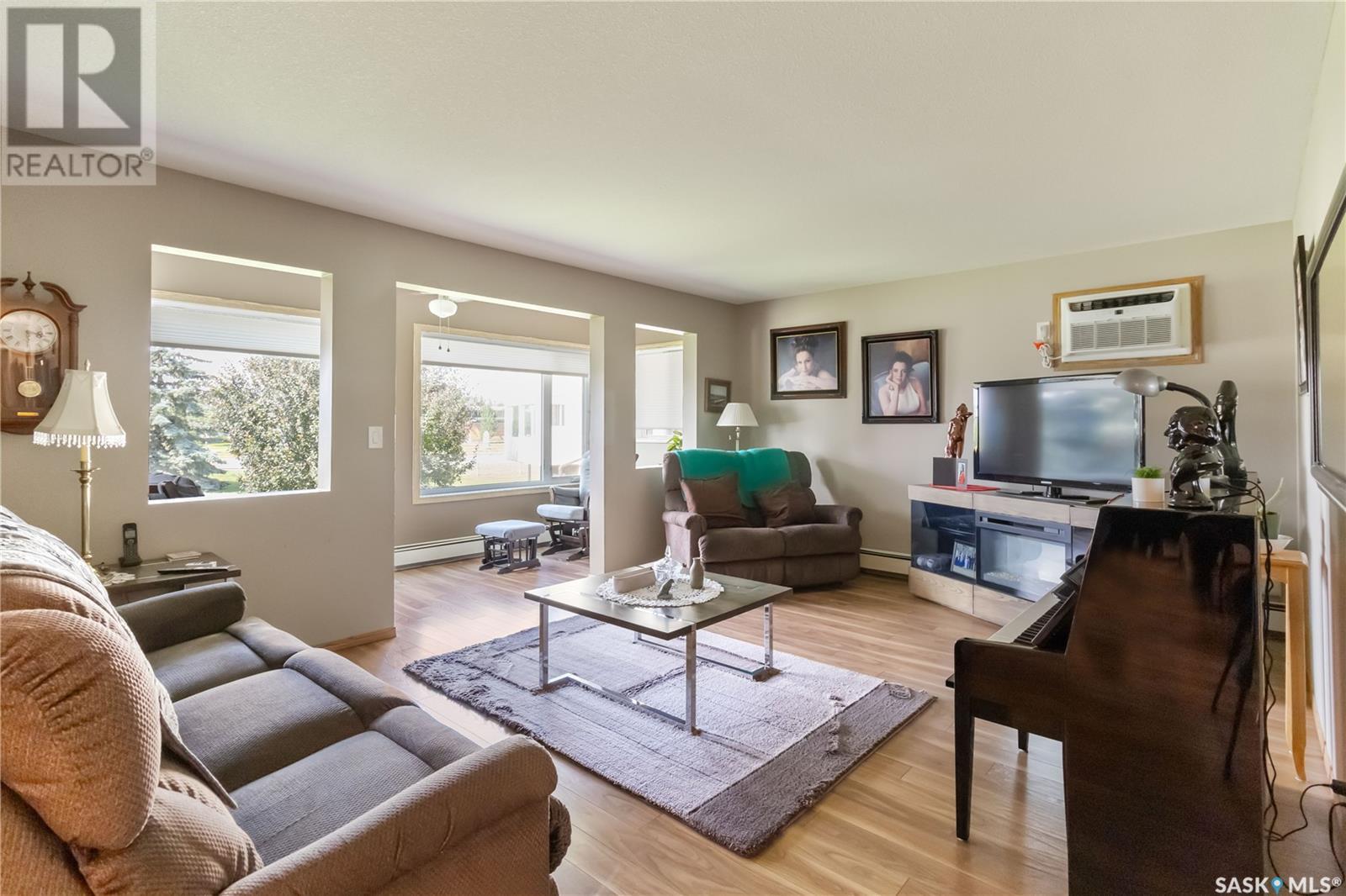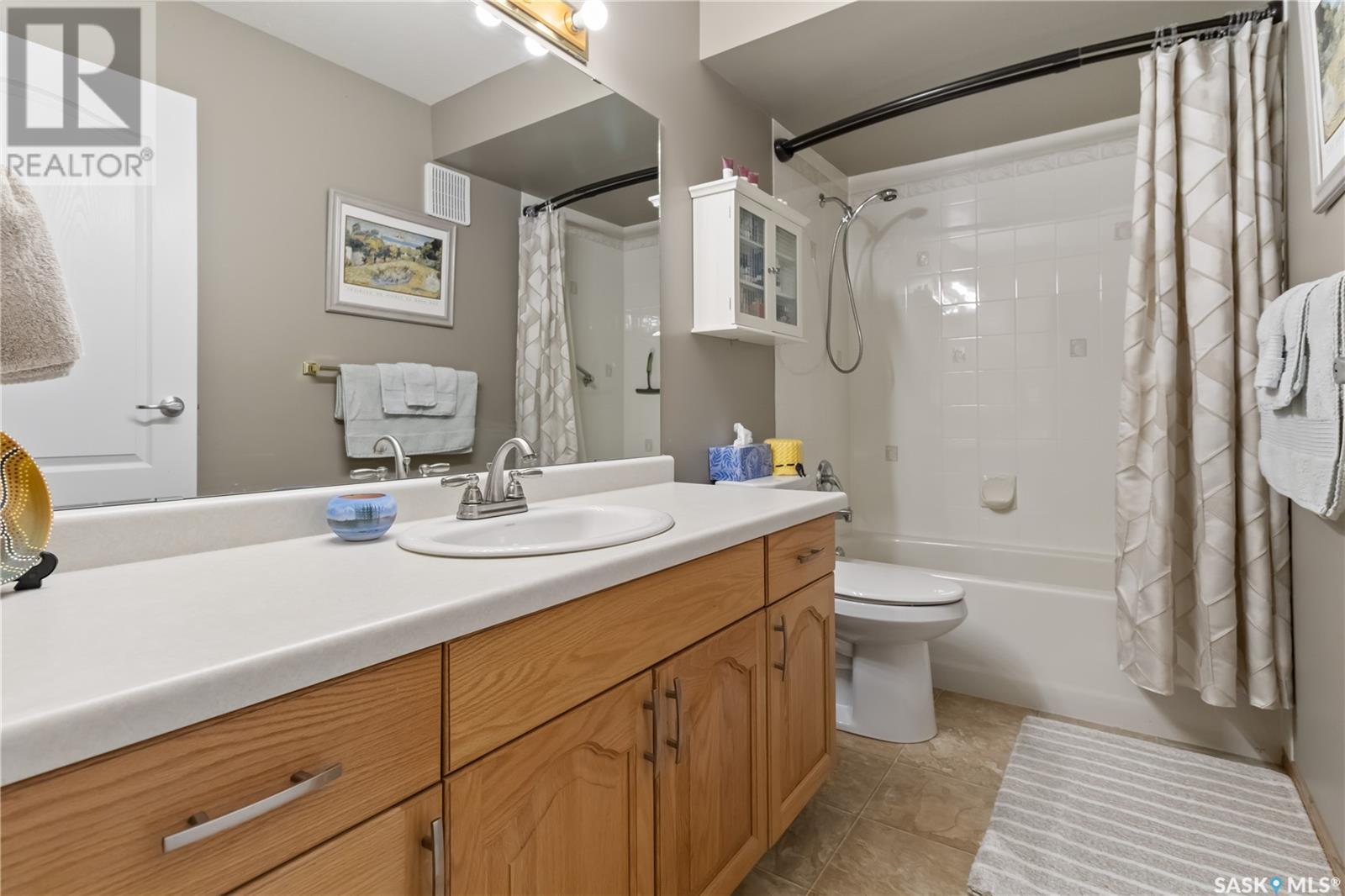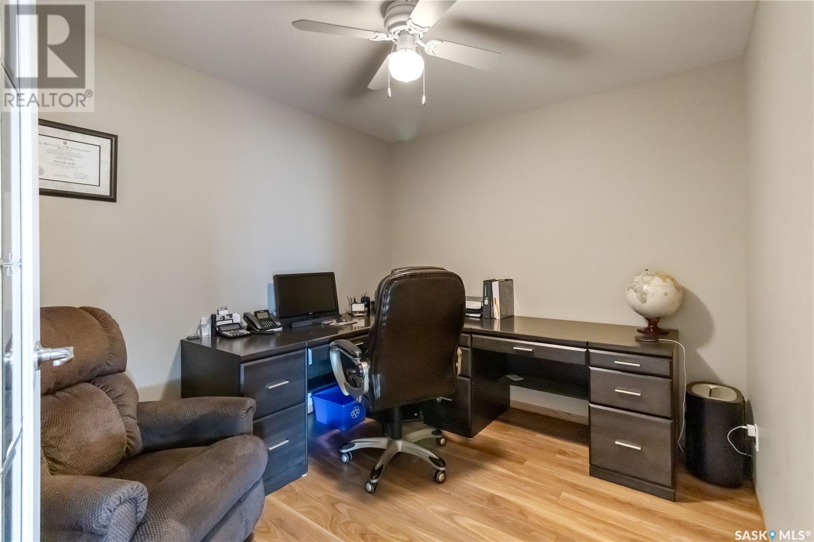 $650 MonthlyWelcome to 104-103 Keevil Cres in University Heights! This 1,577 sq. ft. condo features 2 bedrooms, a den and 2 full bathrooms. Not only is the size impressive, but the condition is equally remarkable. Shows 10/10! The kitchen is bright and inviting with new led lighting, tile backsplash, solid oak cabinets & a newer dishwasher. Off the dining area is a den with glass door - could easily be used as a third bedroom. The living room provides ample space for all furniture, with an additional sitting area/sun room at the back, perfect for enjoying coffee and reading your favorite book. Two bedrooms are down the hall and you will be impressed by the size - these are not your average bedroom sizes. The primary bedroom is 14.2x14.7 and includes a walk-in closet and a 3-piece en-suite. The 2nd bedroom is also large (13x14.7) and the main 4 piece bath is conveniently located across the hall. The laundry room is also substantial (9.5x12) offering plenty of storage space, room for another fridge and freezer and offers a newer washer and dryer. Other features include: Newer triple-pane windows throughout the condo with newer blinds and screens, two new air conditioners, updated laminate flooring, lighting and paint as well as 2 new tall toilets in the bathrooms. The condo also comes with a large storage room near the parkade (5x9x7), one underground parking stall, and free exterior parking for any extra vehicles. The building itself has undergone numerous upgrades in recent years, including a renovated recreation room with a pool table and kitchen, refreshed entryway and newly painted common areas. Please note, no pets are allowed. Condo fees include lawn care, snow removal, heat, water, sewer, garbage, common insurance, & reserve fund. The owners report that the reserve fund is in excellent condition. The building is aimed towards 55+. If you're looking for an active community with game nights, potlucks, bingo nights etc. this is the perfect place for you! (id:43042)