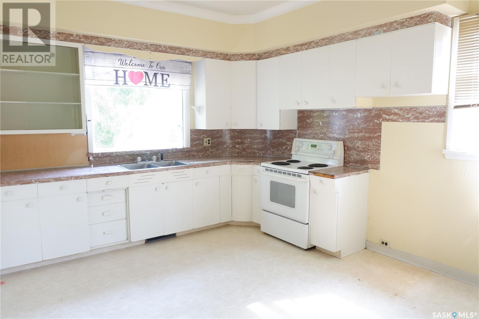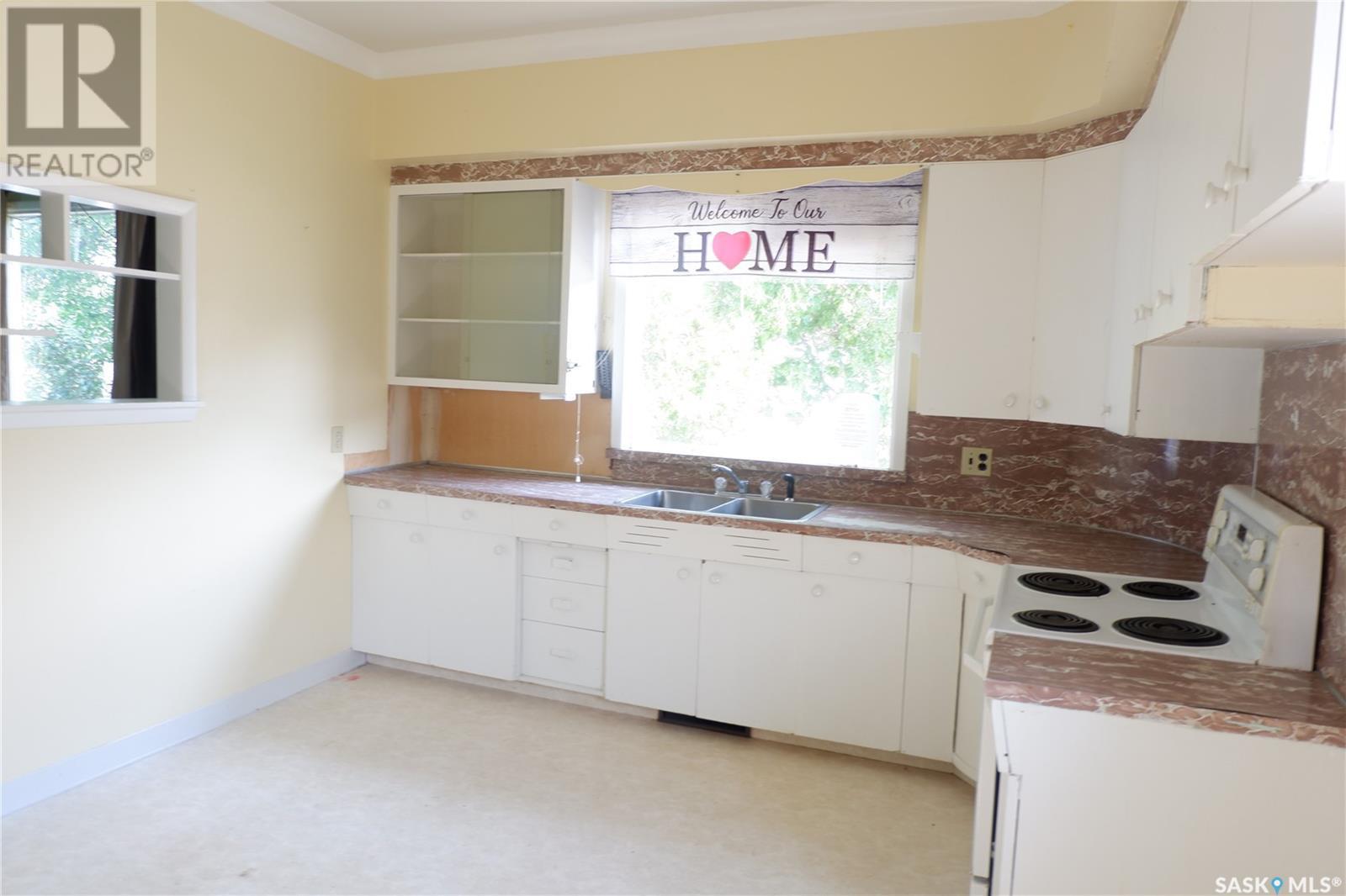 Located in the Town of Gravelbourg in a great location, close to downtown. The home has 2 bedrooms on the main floor. The primary bedroom has a massive walk-in closet! The bathroom is amazing. You will find a very large Jacuzzi tub and a shower! The basement has another kitchen and living room plus a room used as a bedroom. It is up to the buyer to determine if the window meets code. There is also a large laundry room with plenty of storage. The double detached garage is great for two vehilces and extra room for storage. Come check it out!... As per the Seller’s direction, all offers will be presented on 2025-07-16 at 1:00 PM (id:43042)