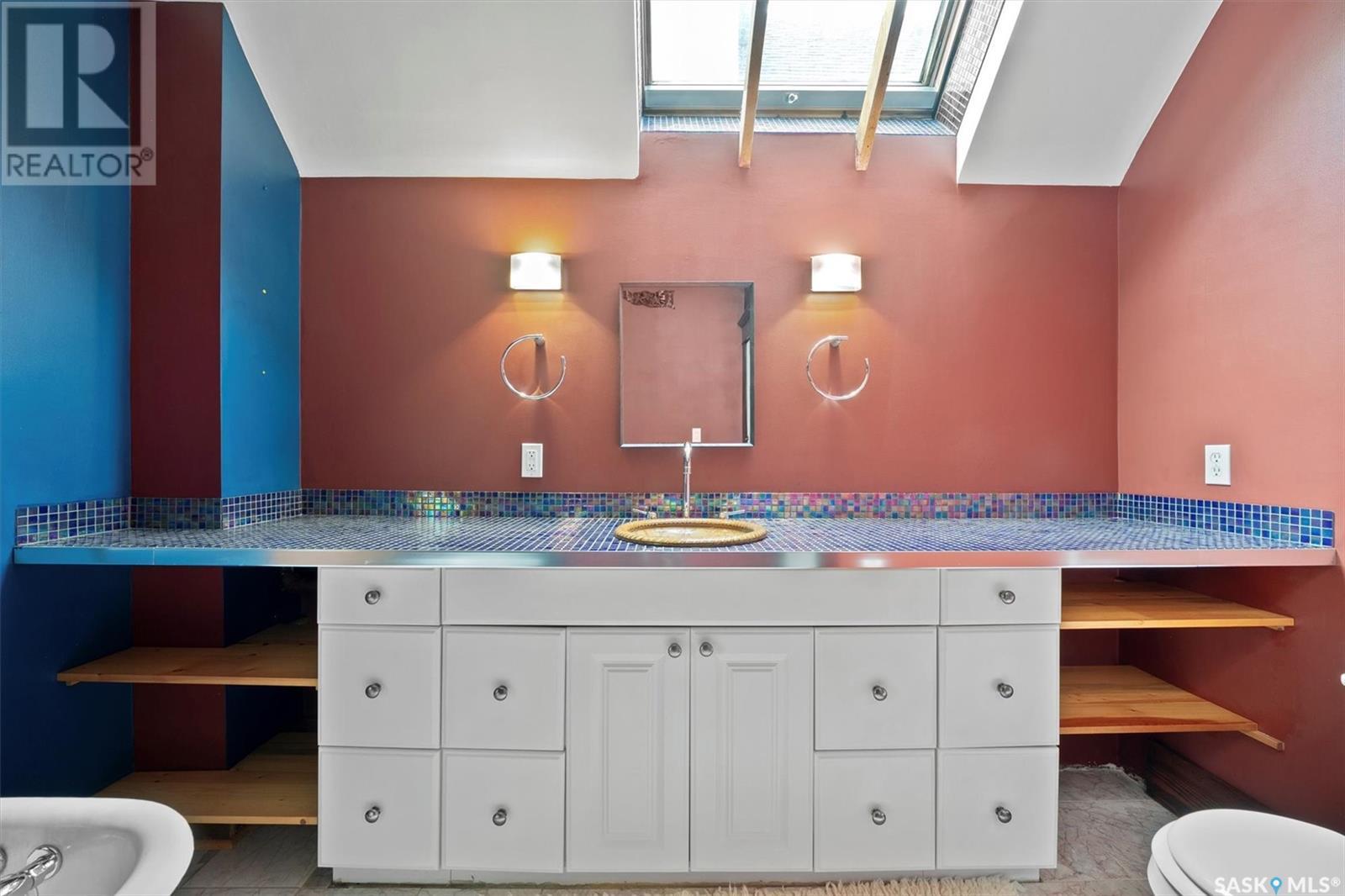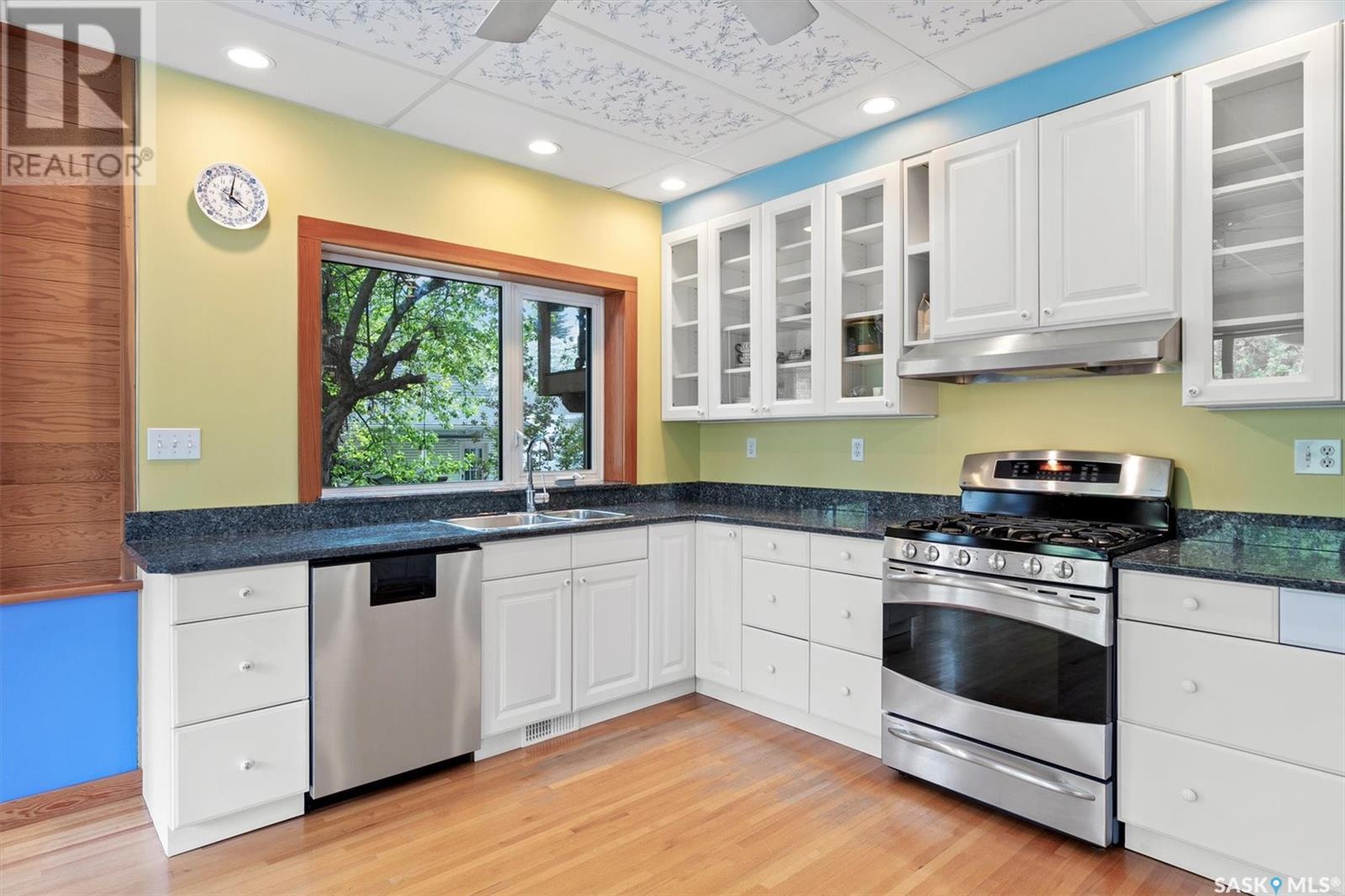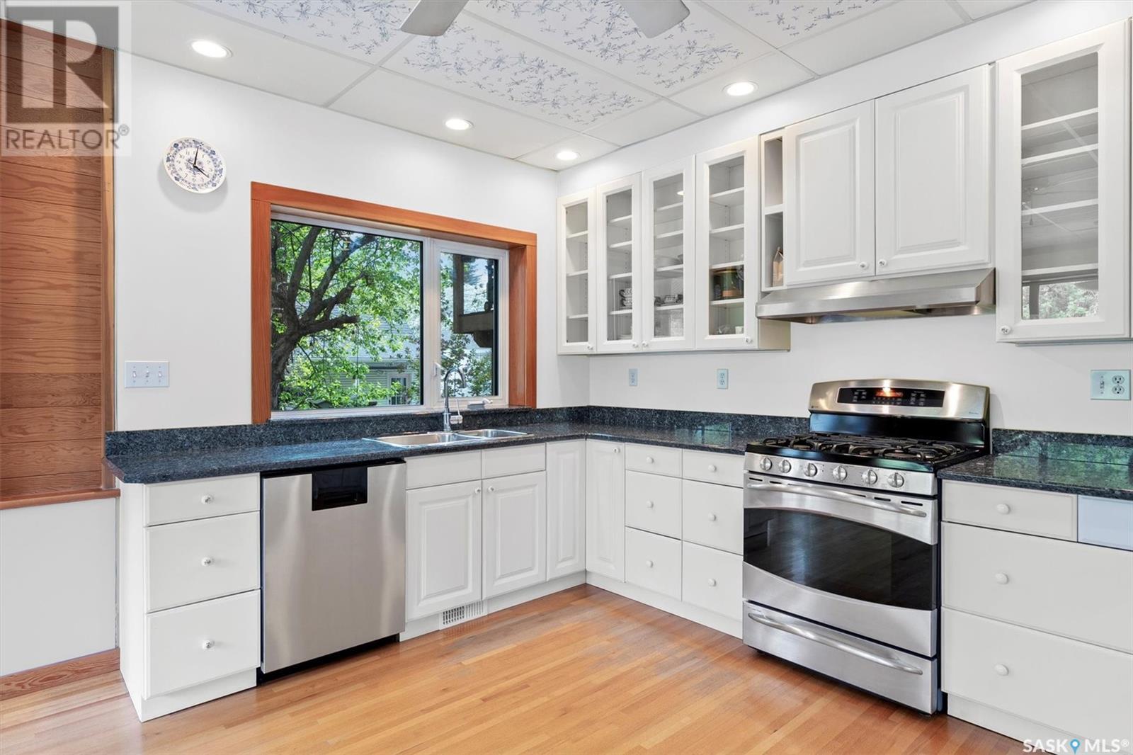 Idea for a professional couples...Just steps from University of Saskatchewan. University of Saskatchewan. This home is perfect for Professors , researchers or faculty looking to be close to campus... Welcome to 1040 Aird Street, a truly one-of-a-kind character home in the heart of Varsity View. Built in 1913 and completely renovated in 2004/2005 by architect Darrel Epp. This 3 bed, 3 bath home offers over 2,800 sq. ft. of beautifully finished living space on a 25’ x 140’ corner lot across and side facing from President Murray Park. The home blends heritage charm with modern structure and design, featuring a new foundation, updated plumbing, electrical, HVAC with HEPA filter, triple-glazed windows, insulation and vapour barriers, Hardie-board siding, and a metal roof. Inside, you’ll find artisan-crafted features throughout—including hand-forged ironwork, custom glass and woodwork, ceramic sinks, mosaic tile, and labradorite kitchen counters. Natural light pours through every room, including the vaulted upper floor and fully finished basement. Enjoy a detached garage with workshop, xeriscape landscaping and private yard, mature landscaping, and unbeatable walkability to the U of S, RUH, Meewasin Trail, and Broadway. A rare opportunity to own a home that is as functional as it is inspiring. Welcome home !! *White interior wall colour pictures are virtual colour changes for visual examples. Seller will include repainting of the interior to buyers colour choices.... As per the Seller’s direction, all offers will be presented on 2025-06-03 at 7:00 PM (id:43042)
