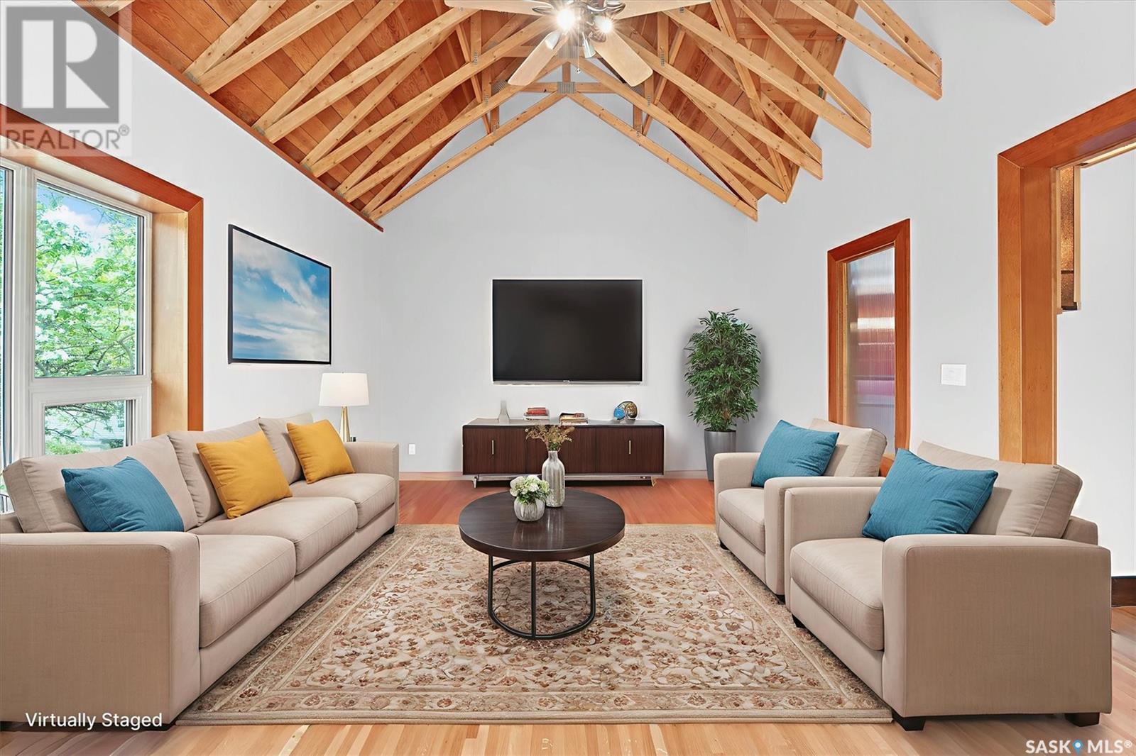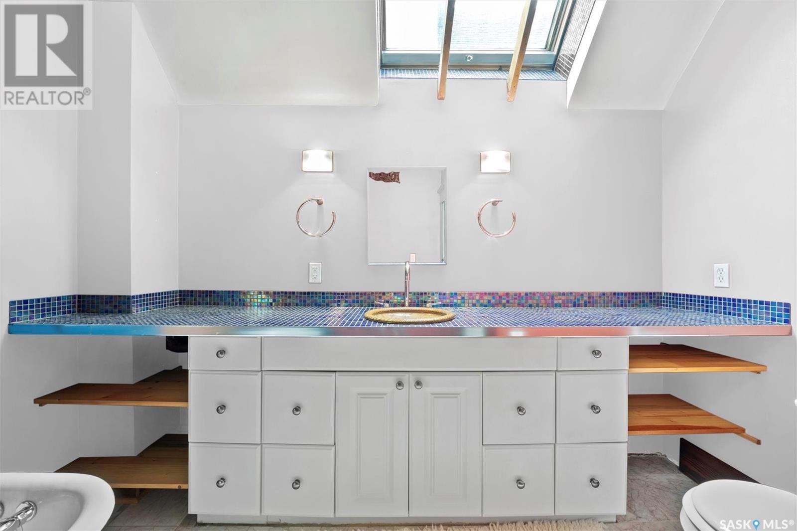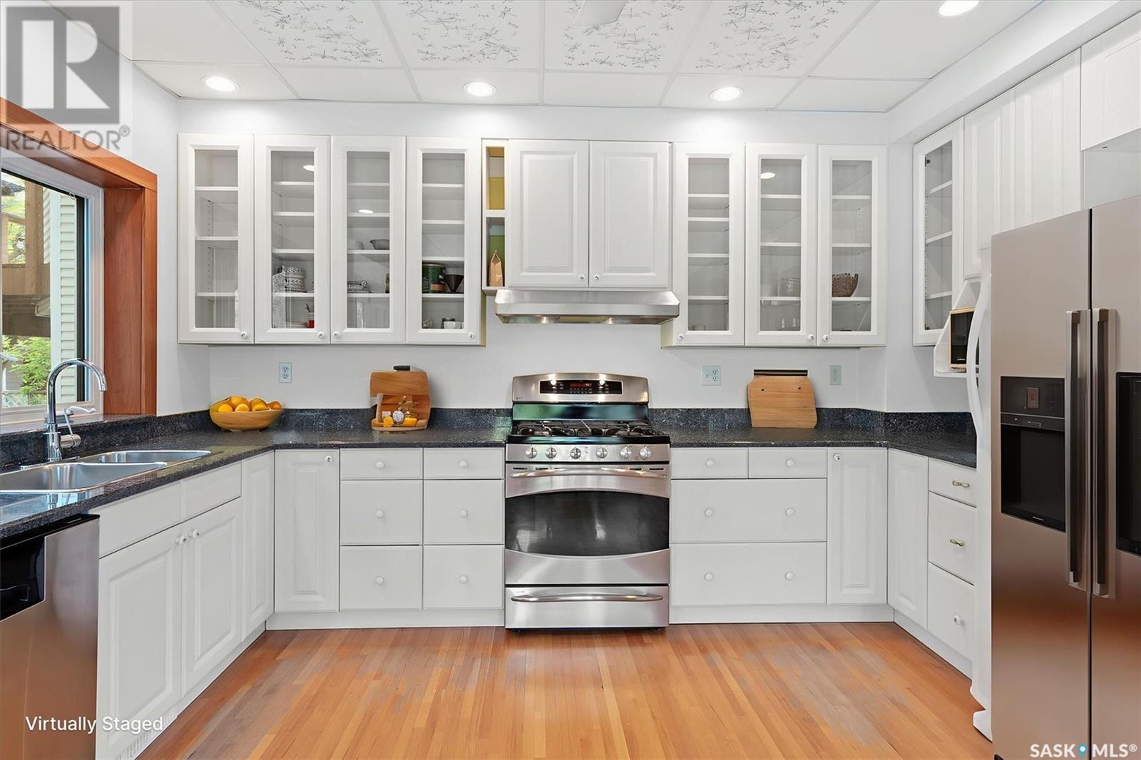 Idea for a professional couples...Just steps from University of Saskatchewan. University of Saskatchewan. This home is perfect for Professors , researchers or faculty looking to be close to campus... Welcome to 1040 Aird Street, a truly one-of-a-kind character home in the heart of Varsity View. Built in 1913 and completely renovated in 2004/2005 by architect Darrel Epp. This 3 bed, 3 bath home offers over 2,800 sq. ft. of beautifully finished living space on a 25’ x 140’ corner lot across and side facing from President Murray Park. The home blends heritage charm with modern structure and design, featuring a new foundation, updated plumbing, electrical, HVAC with HEPA filter, triple-glazed windows, insulation and vapour barriers, Hardie-board siding, and a metal roof. Inside, you’ll find artisan-crafted features throughout—including hand-forged ironwork, custom glass and woodwork, ceramic sinks, mosaic tile, and labradorite kitchen counters. Natural light pours through every room, including the vaulted upper floor and fully finished basement. Enjoy a detached garage with workshop, xeriscape landscaping and private yard, mature landscaping, and unbeatable walkability to the U of S, RUH, Meewasin Trail, and Broadway. A rare opportunity to own a home that is as functional as it is inspiring. Welcome home !! *White interior wall colour pictures are virtual colour changes for visual examples. Seller will include repainting of the interior to buyers colour choices.... As per the Seller’s direction, all offers will be presented on 2025-06-03 at 7:00 PM (id:43042)