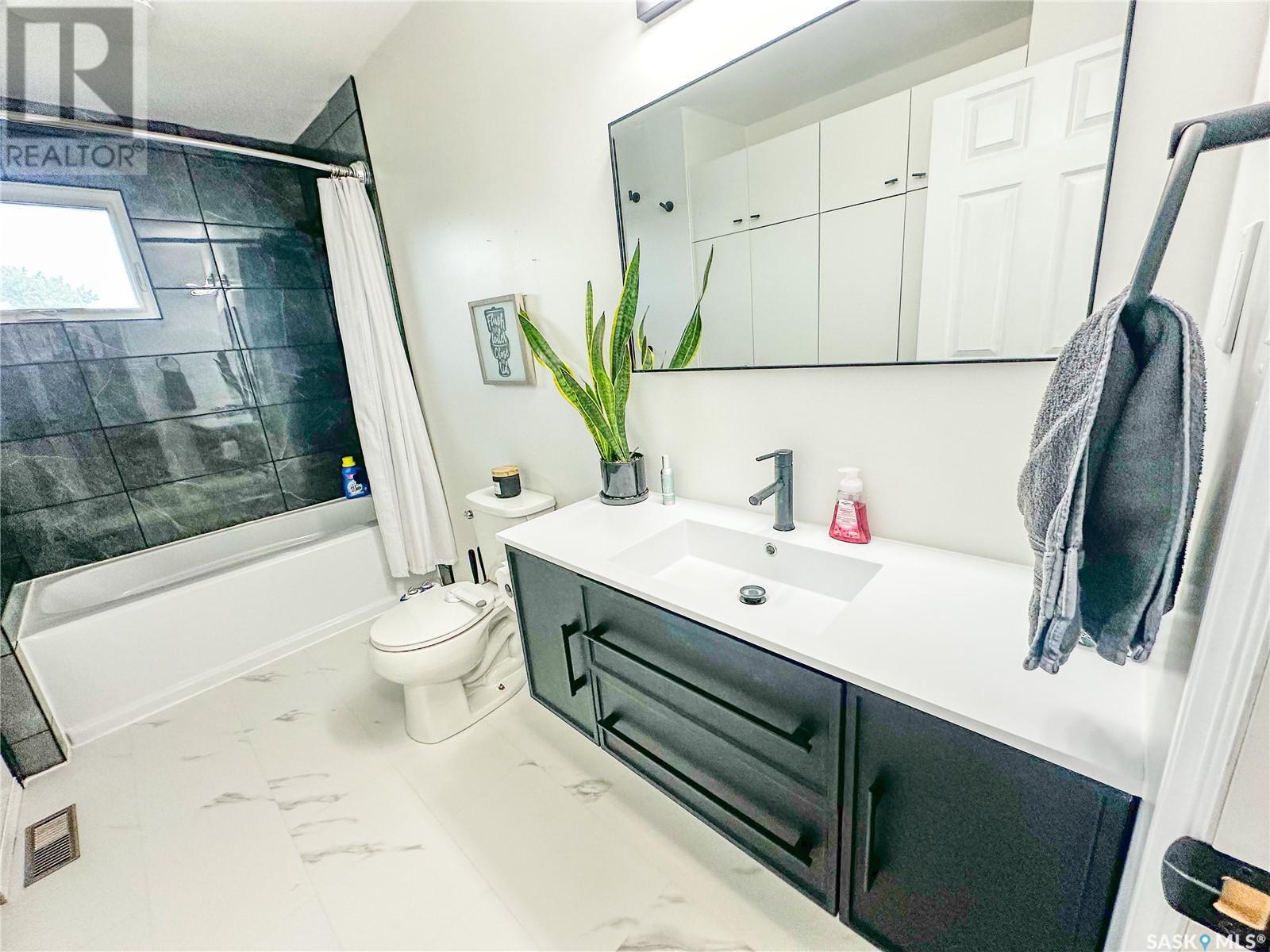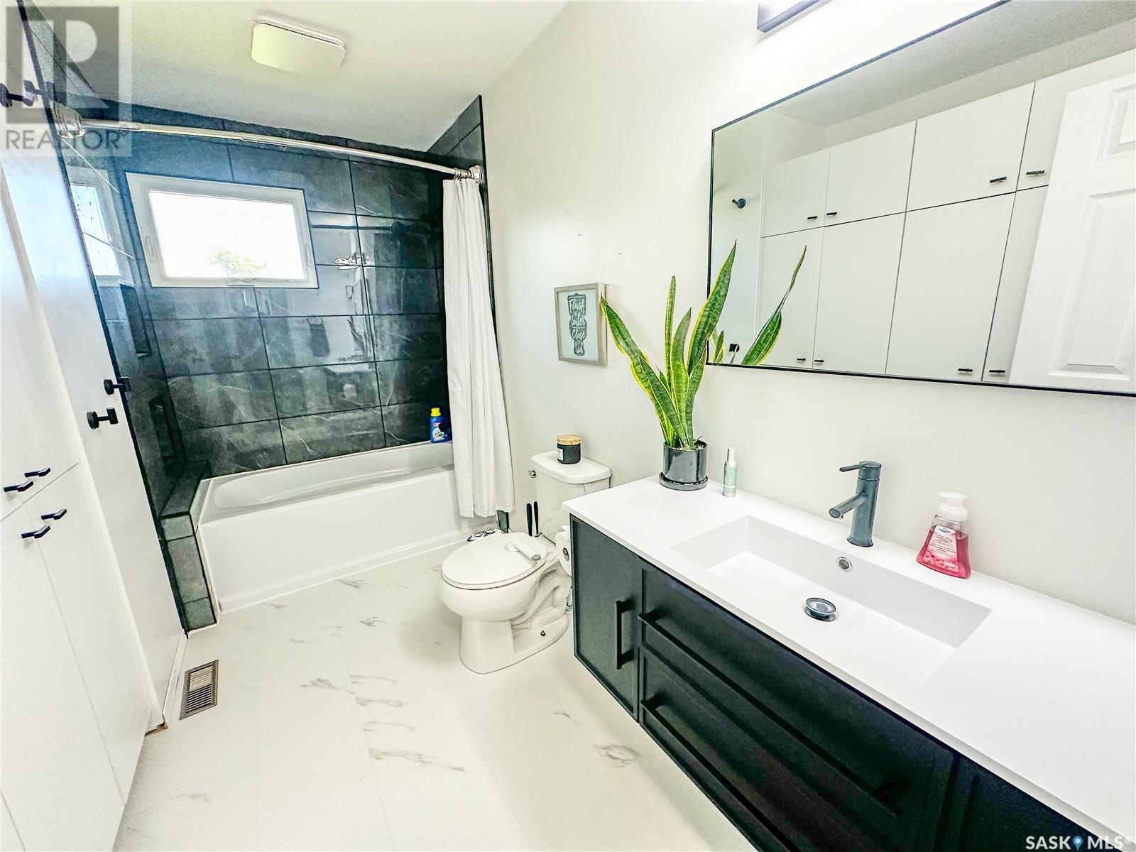 You are going to want to take a look at this one! Complete NEW Modern renovations from top to bottom! Located on a quiet, family street, just a block from the high school and down the street from the rinks, hall, pool, golf and a few minutes from downtown. The main floor is completely renovated including the primary bedroom which has a fabulous dressing room closet attached to a super nice 3pce ensuite! Down the hall you will find another beautiful 4pce bathroom and another bedroom. If you are looking for OPEN CONCEPT, this is it! The main living, kitchen and dining room are all connected to be able to interact from any of these areas. Heading down to the MODERN finished basement, there is a large bedroom with walk in closet, another beautiful NEW bathroom, a large rec room and tons of storage. WOW this place is very nice and ready for you to move in! Enjoy the summer in your large backyard with your own garden, lilac bushes and raspberries. Or enjoy your central A/C on those hot, summer afternoons There are two nice sheds for your storage as well. The updates are many: ducting, Pex plumbing, shingles 2021, windows, Siding, Flooring, Interior doors, Main and basement finished 2022, including a kitchen refresh. The seller is leaving the shelving, the closet organizers, all curtains and blinds, a chest freezer along with the other appliances as listed! You are getting a lot for your money with this beautiful home! Don't be sorry when you see a sold sign, have a tour and fall in love with it like I did! (id:43042)