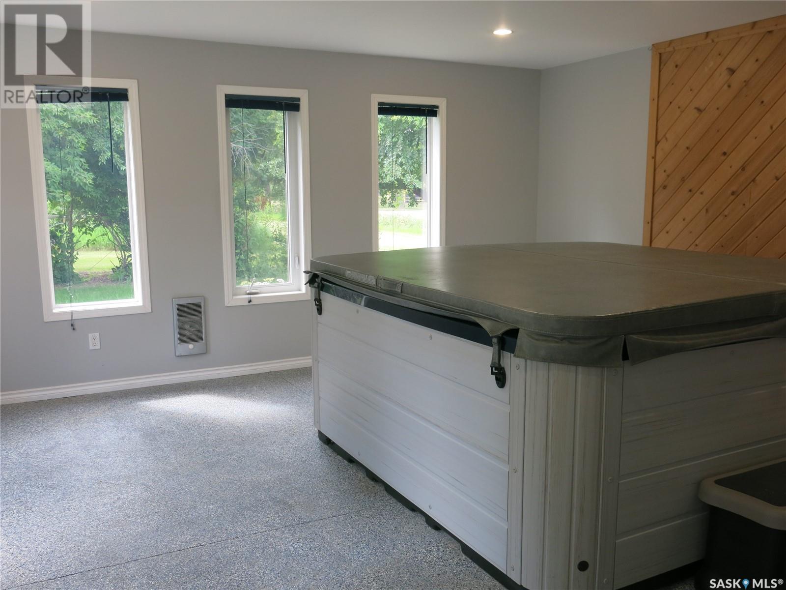 Welcome to 106 Boswell Street in the charming, friendly, and peaceful community of Neudorf, SK! This one packs a serious punch! Extremely well maintained and full of value added extras, this bungalow sits proudly on 3 lots backing green space and is move in ready! Upon entering, you are greeted with a large foyer area. The open style kitchen boasts high end custom cabinetry, with eye catching backsplash, some serious counter top space, good size pantry, a convenient dust sweep, and high end appliances all included. The floor plan flows well into a large living room. Two good size bedrooms and an updated 4 pc bath are just down the hall. Main floor laundry is super handy with the washer and dryer included. Now it's time to introduce a super cool bonus - The hot tub room - well positioned at the back of the house with lots of windows that easily allow for a nice, cool, cross breeze when it's time to kick back and just relax! (Yes, the hot tub is included!) This room has the WOW factor! Your imagination can wonder here! The lower level is very inviting with a large recreation room with a gas fireplace, extra den/flex room, a nice 3 pc bath, and a large utility room and cold storage area. The entire home is painted in warm, neutral tones. This property is very well maintained and updated with triple pane windows, weeping tile, sump pump, central air, central vac, new shingles (May 2025), steel beam to replace teleposts, updated electrical and plumbing, 2 garden sheds, all appliances and two freezers included. The single attached garage has recently been painted. Neudorf is a great commuter town to Melville (37km), Yorkton (77km), Regina (136km), and close to the beautiful Qu'Appelle Valley. Neudorf also offers great sports and recreation (fantastic rink and community hall), grocery store, pizzaria, churches, elementary school, coffee shop, co-op gas and hardware. You need to check out this house today! (id:43042)