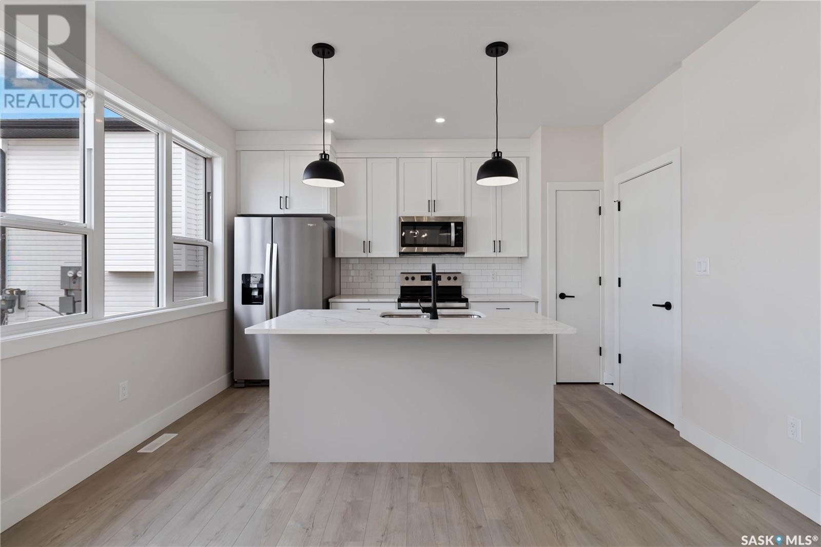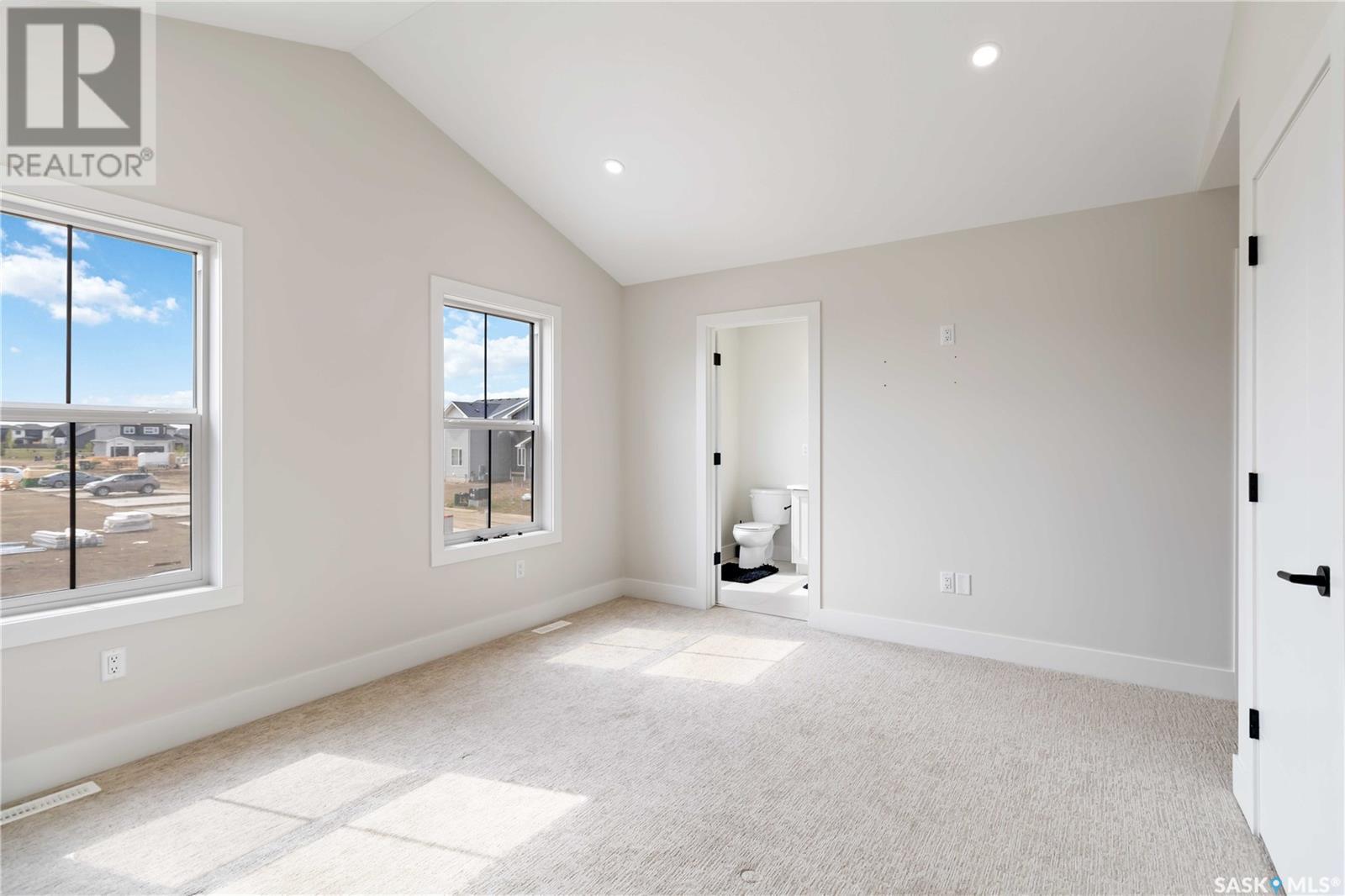 Welcome to this stunning two-story home in the sought-after community of Aspen Ridge, offering over 1,600 sq. ft. of contemporary living space. Featuring three spacious bedrooms, a versatile bonus room, and 2.5 bathrooms, this home is designed for modern family living. The open-concept main floor is filled with natural light and showcases a stylish kitchen with an eat-up island, quartz countertops, stainless steel appliances, and soft-close cabinetry. A convenient two-piece powder room completes the main level. Upstairs, you’ll find a well-appointed 4-piece bathroom, a laundry area, and all three bedrooms, including a primary suite with a large walk-in closet and a beautiful 4-piece ensuite featuring dual vanities and a walk-in shower. The bonus room adds flexibility for a home office, playroom, or second living space. The unfinished basement with a separate side entry and egress windows offers excellent potential for a legal suite or custom development. Outside, enjoy the fully landscaped front yard with underground sprinklers and one of the largest yards in the area—perfect for outdoor living or future landscaping dreams. The double-attached garage adds practicality, completing this exceptional home. Don’t miss your chance to own in one of Saskatoon’s most desirable neighbourhoods. Contact your favourite Realtor® today to book a private showing! (id:43042)