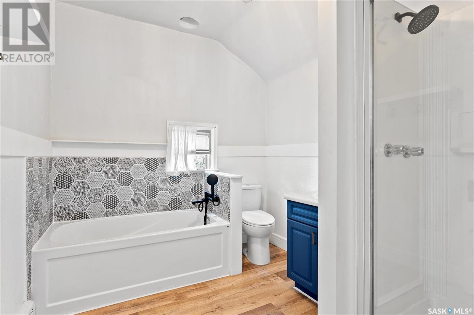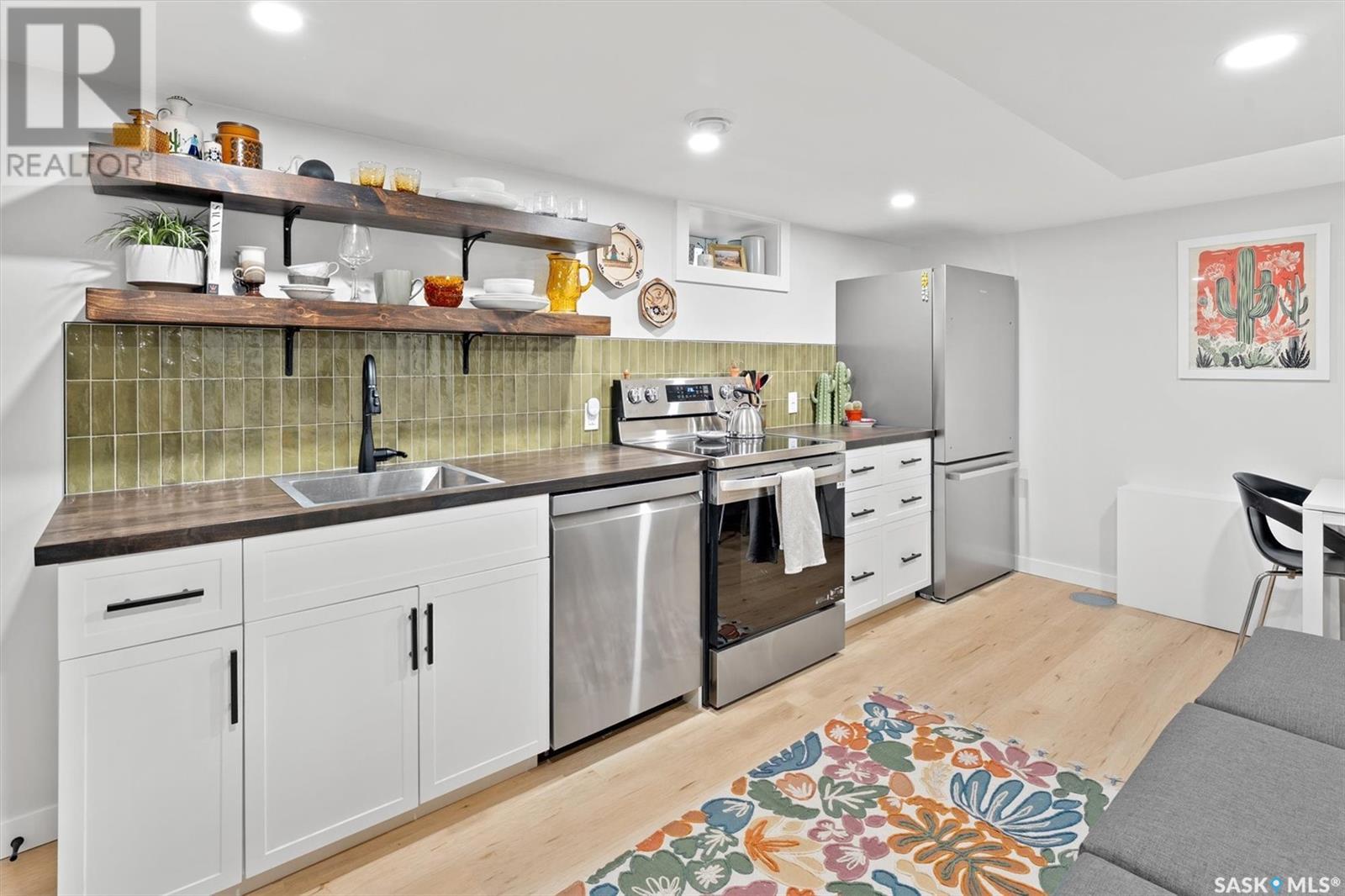 Don’t miss this incredible opportunity to own this beautifully updated home with Legal Suite in Caswell Hill! This move-in ready home offers the perfect blend of classic charm and modern updates—plus a fully finished legal basement suite for added income or flexibility. The main floor features 9' ceilings, large windows that flood the space with natural light, and a semi-open layout with vinyl plank flooring in the spacious living and dining areas. The stylish 2-piece bathroom includes convenient main-floor laundry. The kitchen has updated cabinetry and countertops, a tasteful backsplash and direct access to the backyard and deck. Upstairs, you'll find three generously sized bedrooms and a stunning 4-piece bathroom. The lower level offers a legal basement suite with its own private entrance, providing a turnkey rental opportunity. The suite includes a full kitchen, bathroom, bedroom, and living area—it is beautifully finished and ready for tenants, guests, or extended family. Enjoy a fully fenced yard with a large deck, dog run, and mature trees for added privacy. Additional features include a detached garage, updated exterior and shingles, RV parking, and bonus storage in the attic and enclosed porch. Located just minutes from Downtown and within close proximity to Caswell School, Ashworth Holmes Park, Mayfair Pool, and all major amenities. Call to set up your private viewing today! (id:43042)