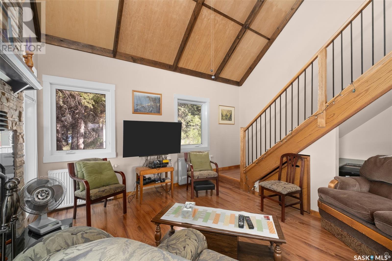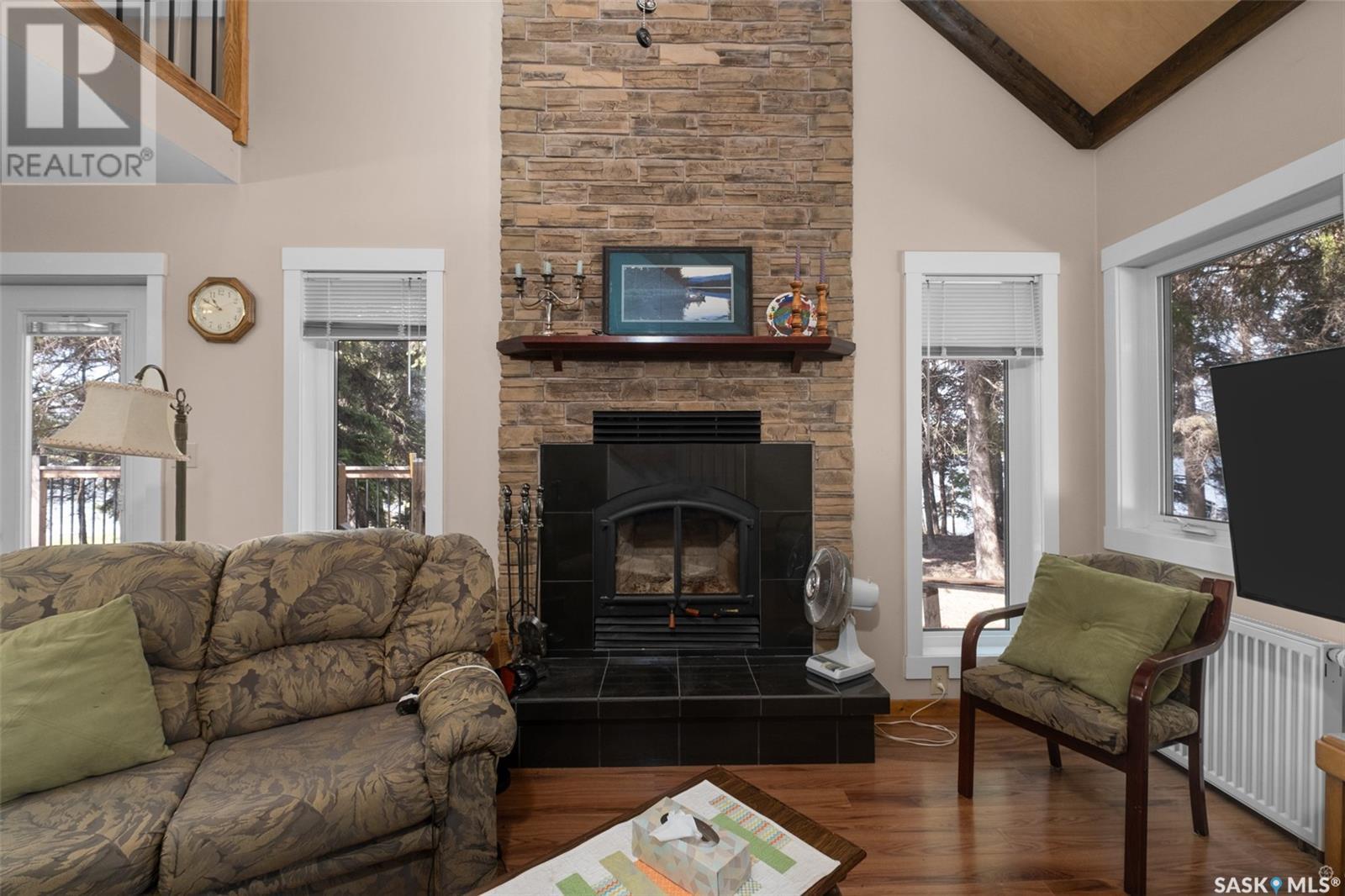 Unbelievable opportunity to own a beautiful year round lakefront cabin on the shores of Lake Nebo. Private 1.72 acre lot with 265 feet of lakefront. This open concept 1889 square foot 1 ¾ storey home was built in 2011. The main floor provides a spacious foyer, kitchen, dining area, living room, one bedroom, full bath and laundry. The 2nd level offers a loft area, bedroom, full bath and huge bonus room which is currently being used for extra sleeping space. High efficiency wood burning fireplace. Direct access to the heated 2 car garage with in-floor heat. Water supply is a 1200 gallon water tank. Septic system is a 1500 gallon holding tank. Heating system is a propane boiler. Heated 4’ crawl space with concrete floor. Outside you will find a large deck, fire pit, horseshoe pit, as well as a large lawn and beach area. Lake Nebo is situated just off Highway #3 only 20 minutes from Memorial Lake, 1 hour west of Prince Albert and only 1 ½ hours north of Saskatoon. This turn-key cabin includes all furnishings so you can just move in and start enjoying the lake! (id:43042)
