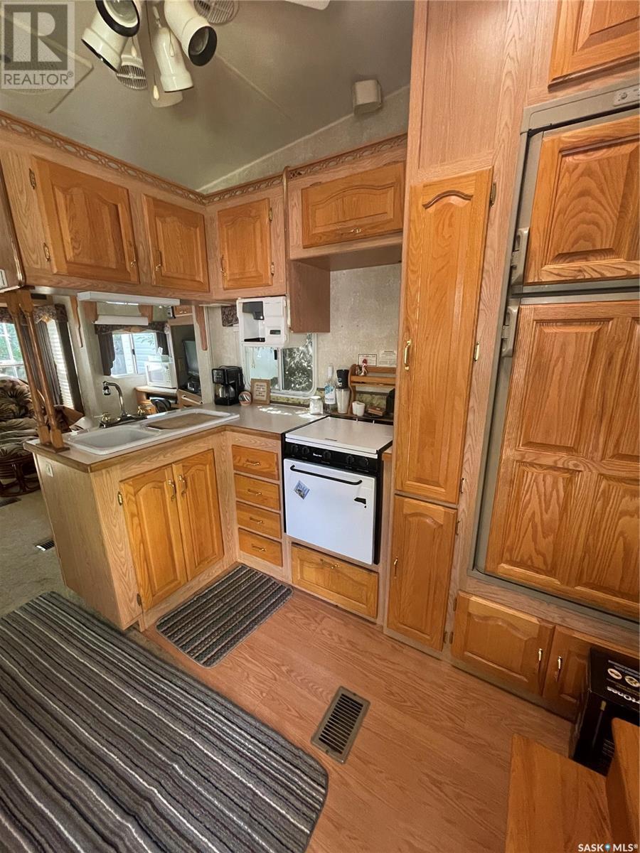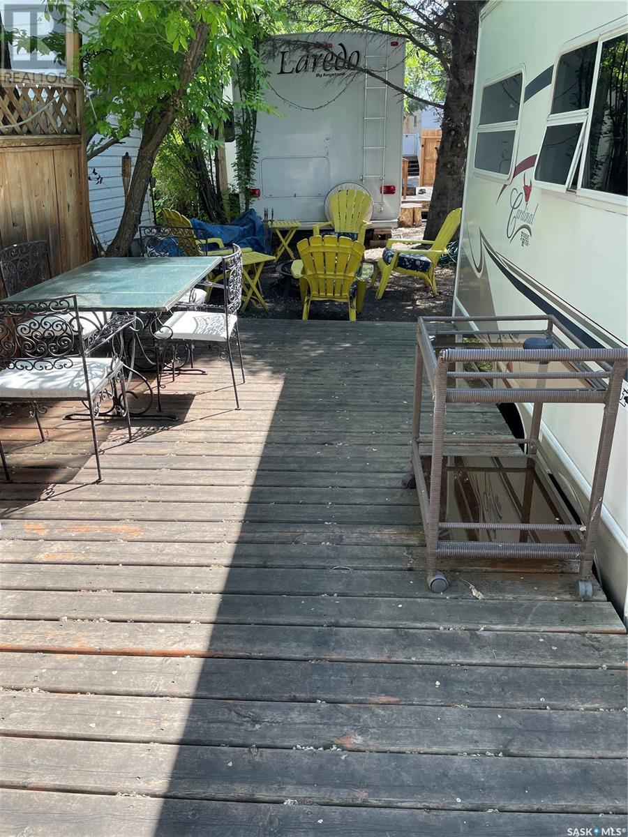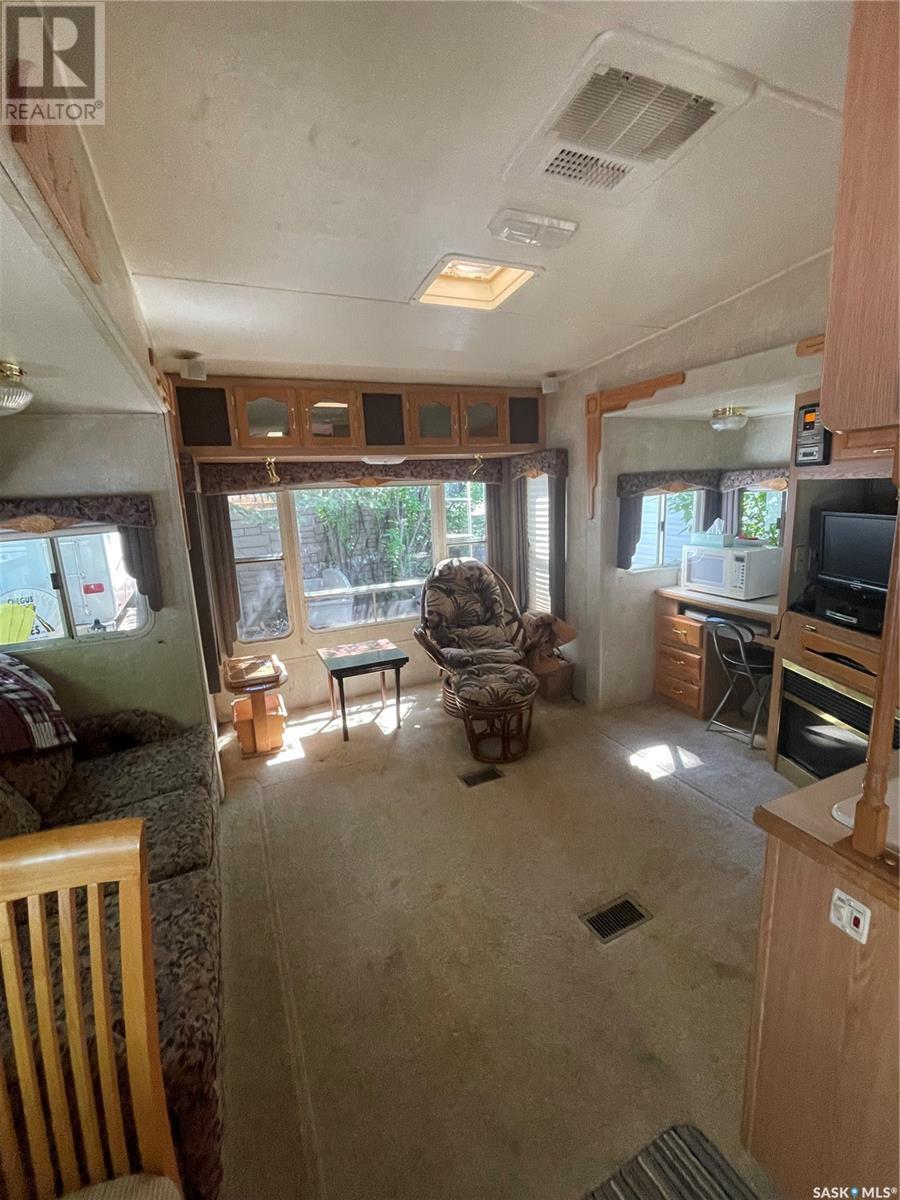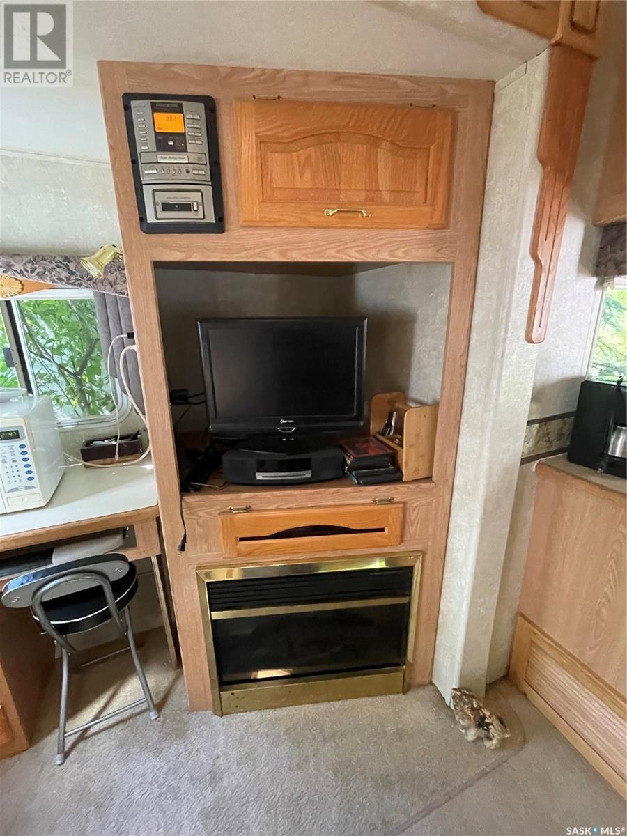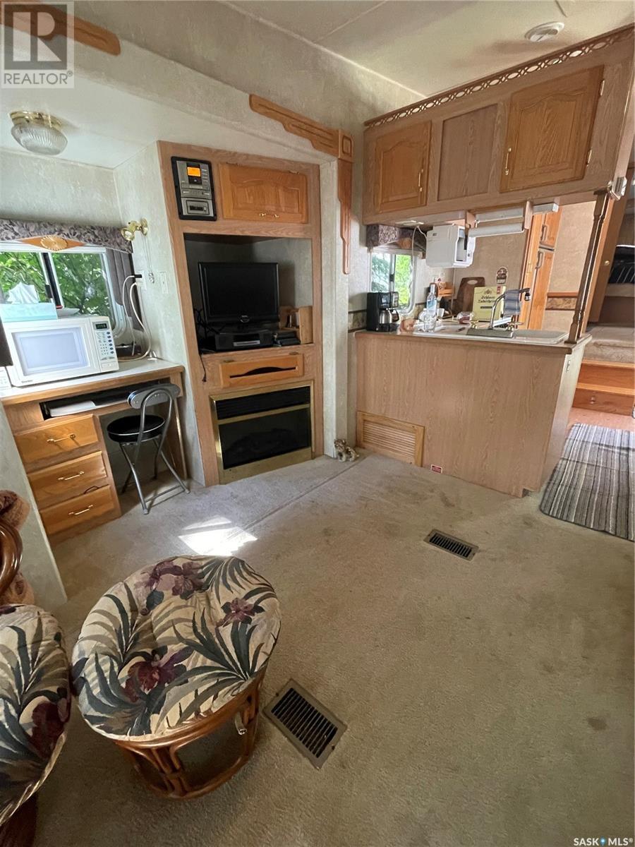 Lake life is just an hour drive from Saskatoon, Poplar Beach RV Park is 6 km north of Wakaw Site 108 includes a 2003 Cardinal 34ft 5th Wheel RV, deck, fence, storage shed and fire pit area The RV is supplied with washer, fridge, stove microwave, central vac, furnace, central air conditioning, built in stereo system, TV, DVD, electric fireplace, full bathroom, vaulted ceiling, ceiling fan, large bedroom with large mirrored closet and plenty of storage. This peaceful quiet community offers many amenities to is members including beach, playgrounds, common gathering area, security gate, washrooms and showers. Membership/site fees are $1142/year. Poplar Beach has a boat launch, marina and boat storage yard. (id:43042)