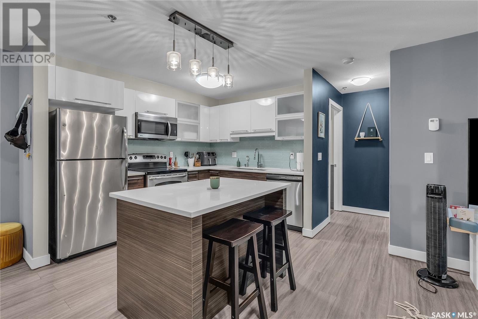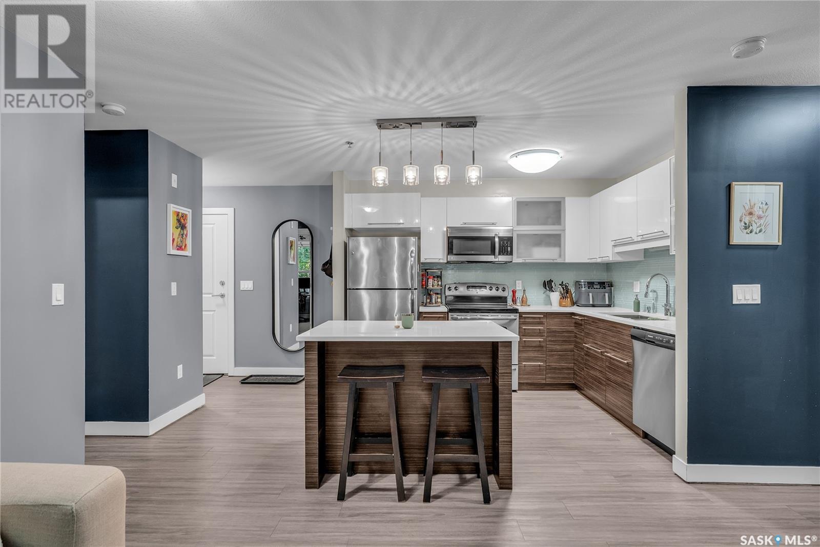 $475.21 MonthlyWelcome to your next home in the vibrant community of Stonebridge! This stylish and well-maintained 2-bedroom, 1-bathroom apartment-style condo offers a perfect blend of comfort, modern design, and an unbeatable location—overlooking peaceful green space that is very private. Inside, you'll find a bright open-concept layout that seamlessly connects the living room, dining area, and kitchen—creating a spacious and inviting atmosphere ideal for entertaining or everyday living. Large windows fill the space with natural light, while neutral tones and clean lines highlight the modern finishes throughout. The kitchen is a true highlight, featuring quartz countertops, a large central island, ample cupboard space, and sleek modern cabinetry. The living room flows effortlessly into the dining area, allowing for easy furniture placement and plenty of room to relax or gather with friends and family. Additional features include in-suite laundry, two convenient surface parking stalls, and access to premium building amenities such as a fully equipped fitness room and an indoor pool. Perfect for first-time buyers, professionals, or those looking to downsize, this move-in-ready condo is located close to parks, shopping, restaurants, schools, and public transit. Don't miss your chance to own this beautiful condo in one of Stonebridge’s most desirable and walkable communities! (id:43042)