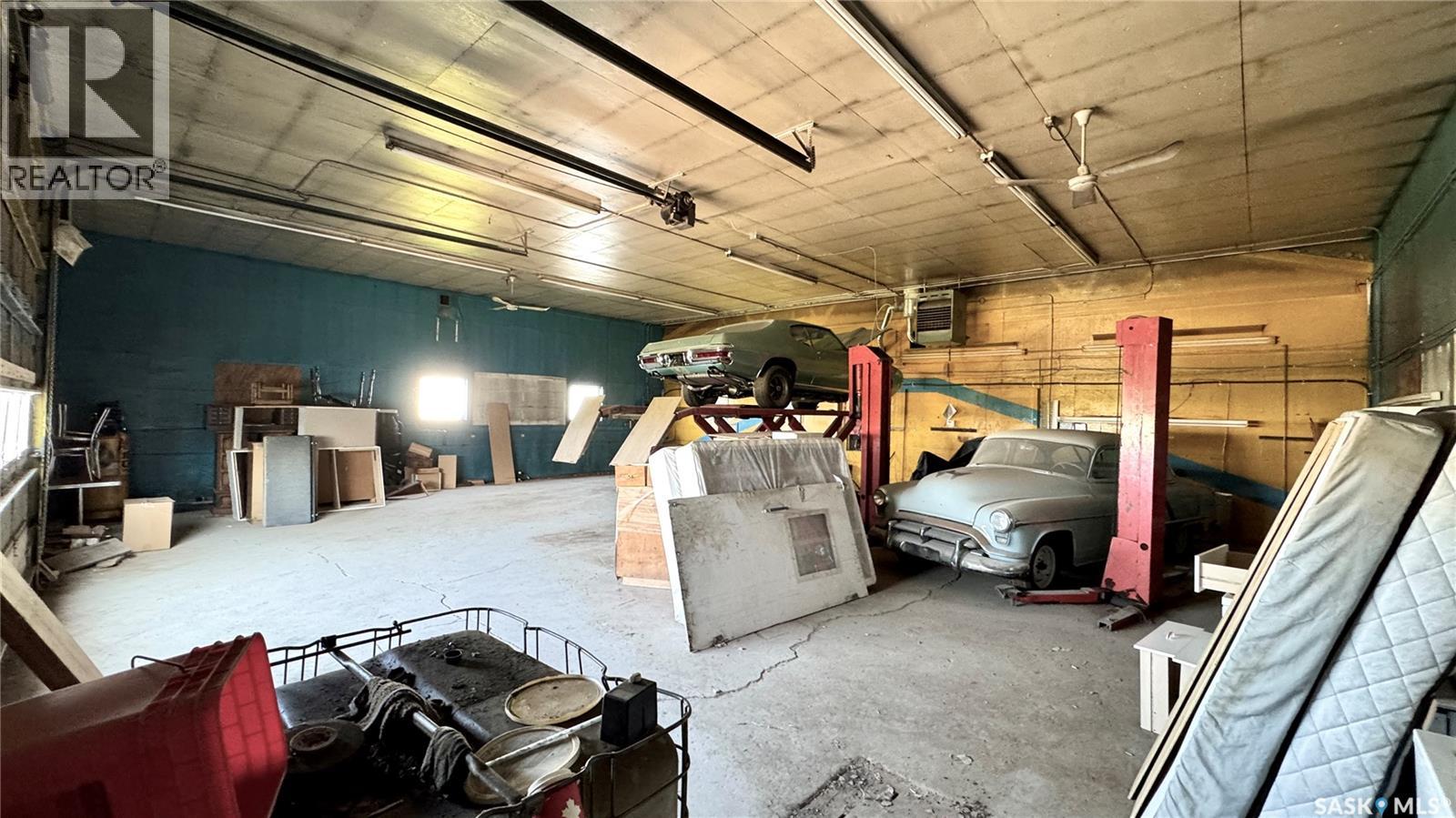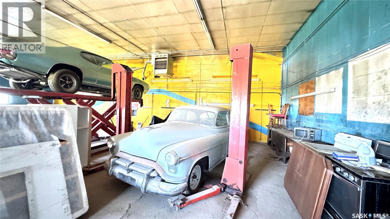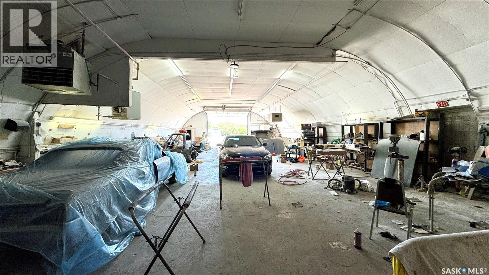 109 McGregor St – MULTI-USE COMMERCIAL PROPERTY IN Davidson, SK This versatile property spans 11 titled parcels in the heart of Davidson, offering a rare combination of COMMERCIAL SHOP SPACE, living quarters, and storage. Originally built in 1971 as a Ford dealership, the main building now features a renovated front area with a kitchen, living room, office space, and four lockable bedrooms - ideal for staff housing or a live/work setup. The rear workshop, built in 1973, includes a forced air furnace, TWO HOISTS (one drive-on, one post), a large air compressor, and a seamless metal snaplock roof (10 years ago). An overhead door at the back of the building provides convenient access to the shop area housing the hoists. Attached is a 1,464 sq ft COLD STORAGE building, perfect for additional equipment or material storage. Also on-site is a 40' x 120' Arch Rib/Quonset-style building, seamless metal snap-lock roof, currently used privately as a PAINT AND BODY SHOP. It includes a paint booth, storage area, frame tie-downs, and a DEVILBISS heated air make-up unit that filters and heats air for the booth while venting exhaust. An overhead door provides vehicle access, with the booth located at the back of the structure. This Quonset is adjoined to a FENCED COMPOUND, ideal for secure outdoor storage. Whether you're expanding an automotive business, seeking mixed-use space, or looking for a centrally located investment, this well-equipped property delivers space, functionality, and long-term potential. (id:43042)