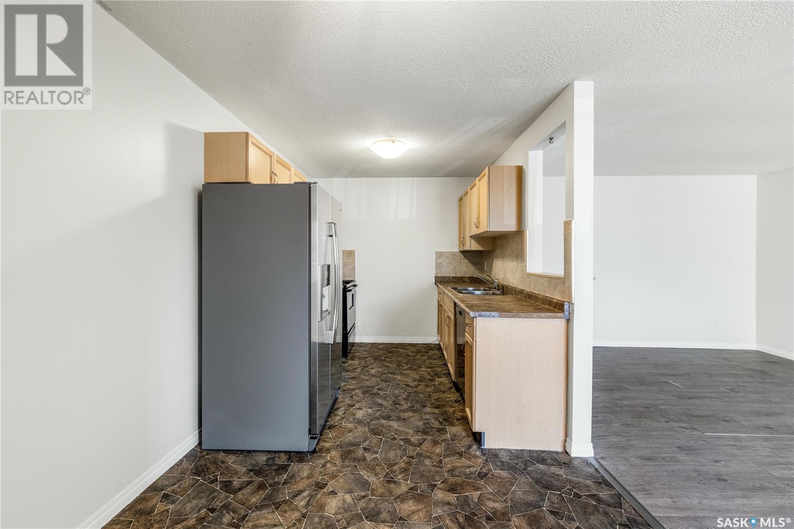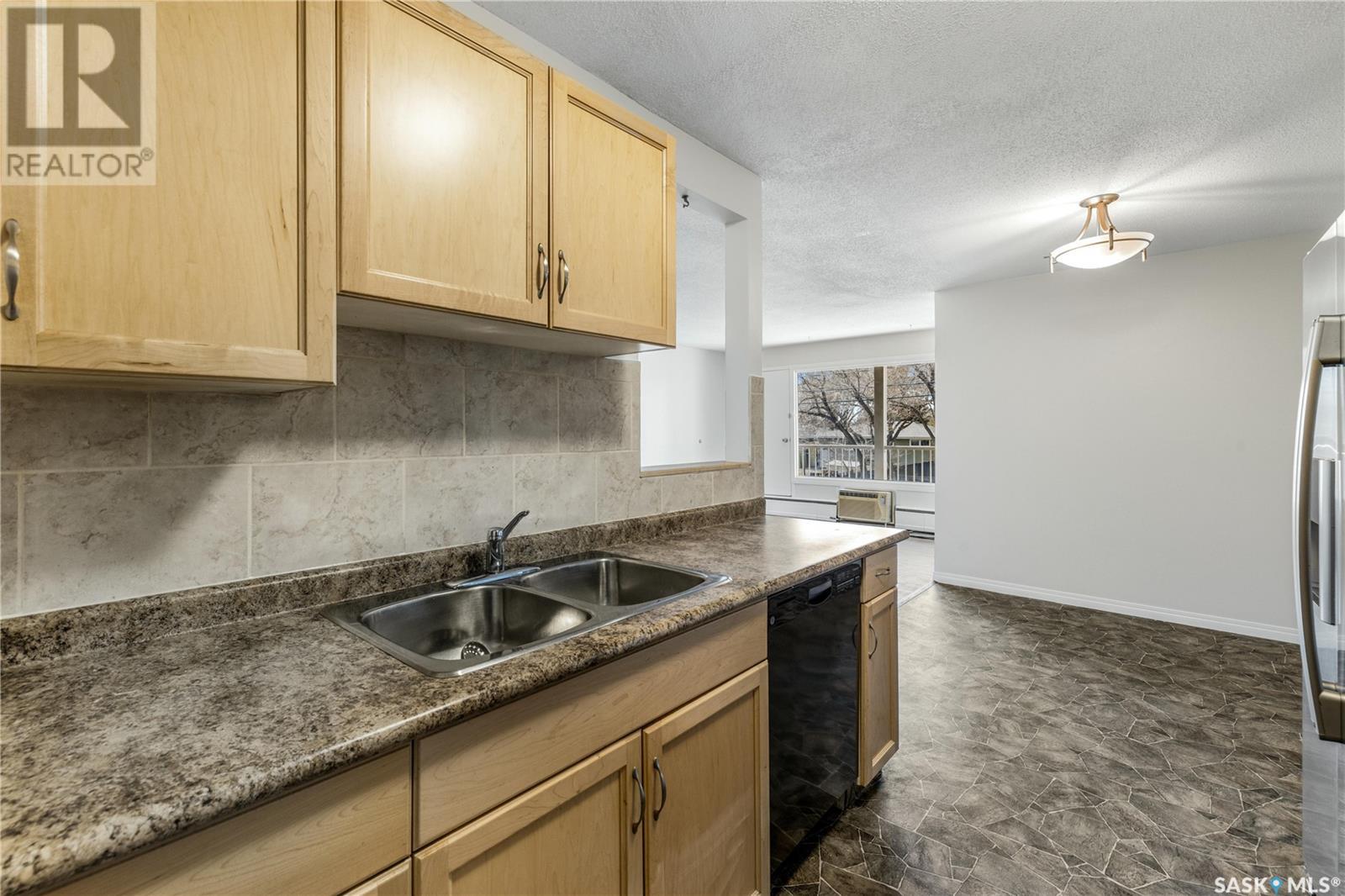 $469.45 MonthlyRenovated in 2008 and freshly repainted in 2025, this spacious 2-bedroom condo offers a welcoming and move-in ready space on the second floor. The entire unit, including doors, was recently painted in a fresh, neutral palette, enhancing its bright and inviting feel. Both bedrooms are generously sized, providing comfortable retreats with ample space for furniture and storage. The maple kitchen cabinetry is paired with neutral countertops and all appliances including a fridge with water and dishwasher for convenience. In 2021, the living room, dining area, and bedrooms were updated with vinyl plank flooring, including new subflooring. One of the standout features is the oversized outdoor balcony—among the largest you'll find in apartment-style condos—overlooking the parking lot for a quieter, more private setting compared to units facing the street. Additional features include in-suite laundry, a window A/C unit for added comfort during the warmer months, and one electrified parking stall included (#11), ideally located with convenient alley access right behind the building. (id:43042)