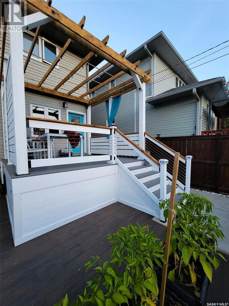 Welcome to this beautifully renovated 1,422 sq ft semi-detached two-storey home, nestled on a quiet street in Holiday Park. This 4-bedroom, 4-bathroom half duplex offers a perfect blend of modern updates and functional design, ideal for families or investors alike. Step inside and be impressed by the tasteful renovations completed over the past five years, including stylish quartz countertops, updated plumbing and lighting fixtures, a designer backsplash with floating shelves, fresh paint, and upgraded appliances including fridge, dishwasher, washer, and dryer. The main floor offers a warm and inviting open-concept layout, while upstairs you’ll find comfortable bedrooms and updated bathrooms. The fully finished basement is set up for a non-conforming one-bedroom suite with a separate entrance and dedicated laundry—perfect for rental income or extended family living.The outdoor space is a true showstopper! Enjoy summer days on the pergola-covered deck or unwind on the cozy patio. The low-maintenance backyard features synthetic turf, raised garden beds, a charming shed, and two electrified parking stalls. The front yard is equally impressive, beautifully landscaped to enhance curb appeal. With trendy, thoughtful touches throughout and a location close to the river, parks, and amenities, this move-in ready gem won’t last long. Book your private showing today! (id:43042)