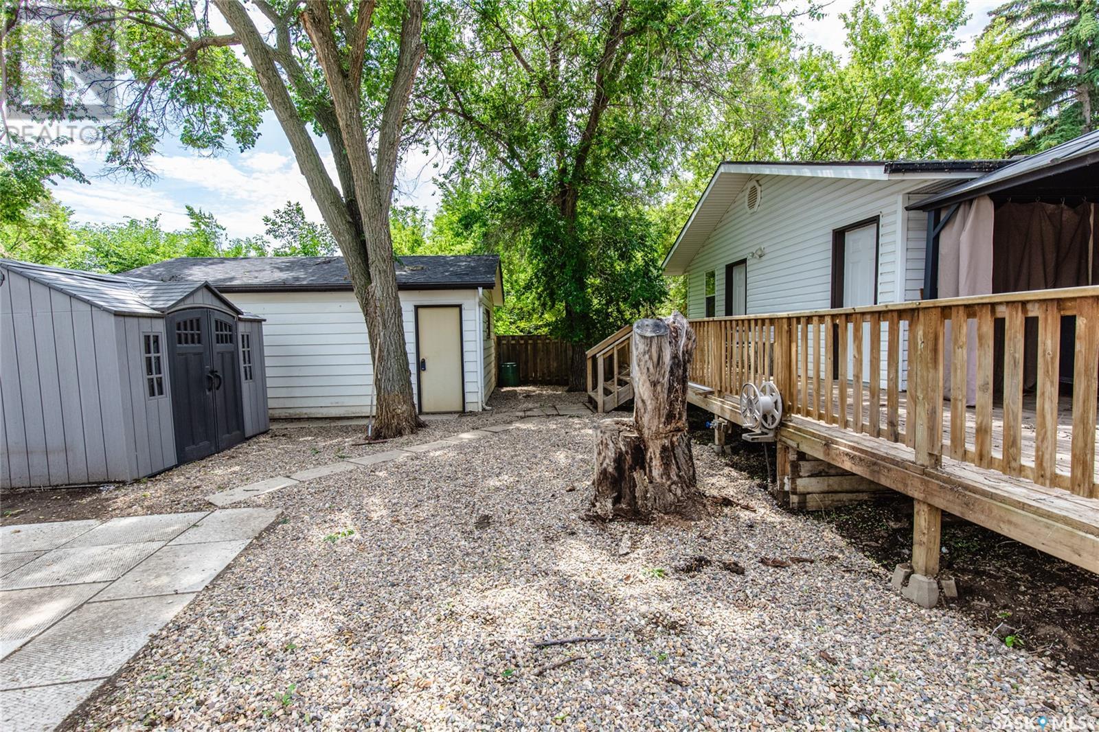 Discover this incredible 1437 sq ft home, perfectly situated on a beautiful, tree-lined street, only half a block from SaskPoly. It's ready for new owners! Step inside and be impressed by the expansive living room. The updated kitchen offers ample cabinet and counter space, while an addition hosts the formal dining area. The main floor boasts a very large bathroom with a supersized jet tub and the bonus of main floor laundry. You'll also find three good-sized bedrooms, all with generous closet spaces. The lower level is a fully self-contained suite, featuring a large kitchen, living room, a full four-piece bathroom, and two large bedrooms, plus its own laundry room. This offers great flexibility for income or easy conversion back to a single-family home. This home has seen numerous smart updates under current ownership(APV): addition in 2008 - windows, siding, 2inch stereo insulation, interior wall insulation, attic insulation (blown in) 2010 - all electrical updated (with the exception of 1 wire to a hall light) 2011 - Finished basement suite, new stack, new sewer under house 2012 - Kitchen renovation and upstairs bathroom. Further enhancements include a high-efficiency furnace and central air conditioning. The exterior features a fully fenced yard and a fantastic oversized single garage. A spacious deck provides plenty of room for outdoor entertaining. Don't miss the opportunity to own this updated home with flexible living options in Moose Jaw's beautiful avenues! (id:43042)