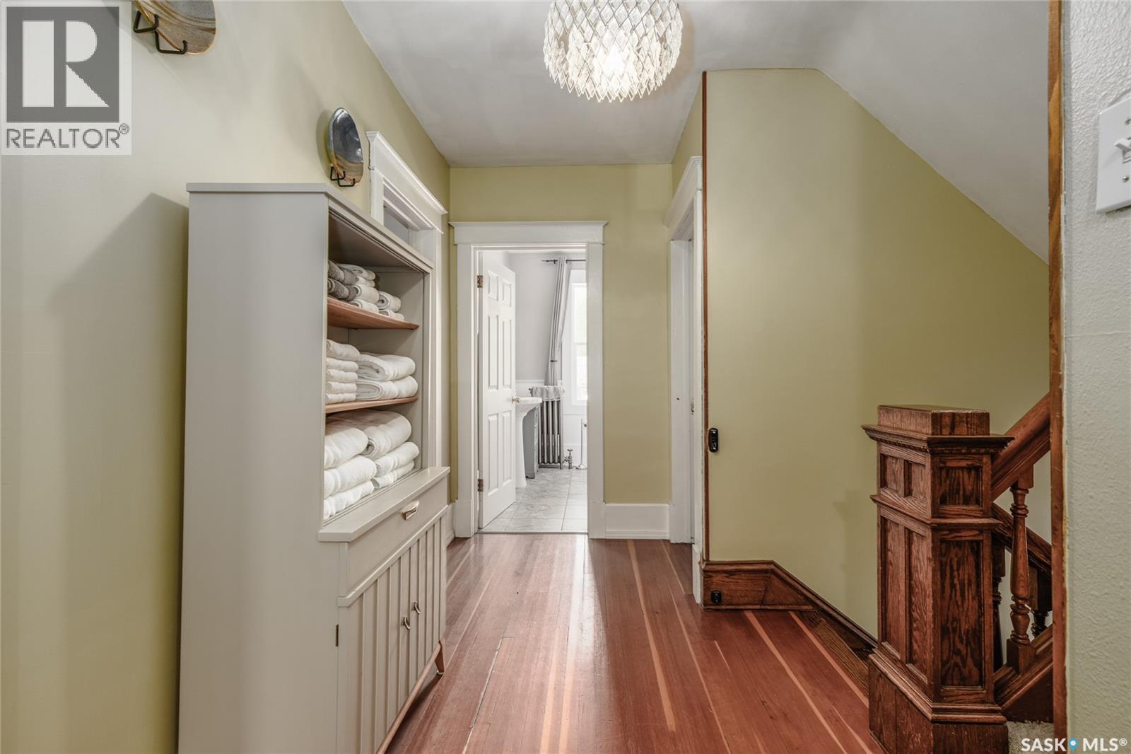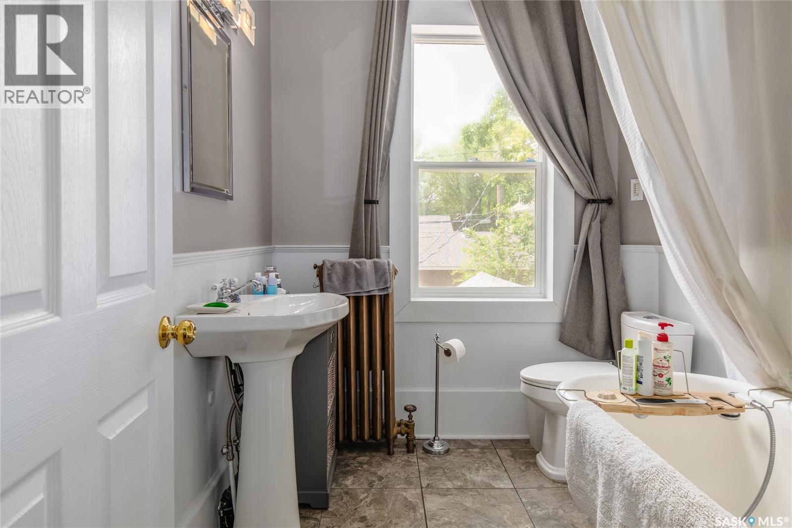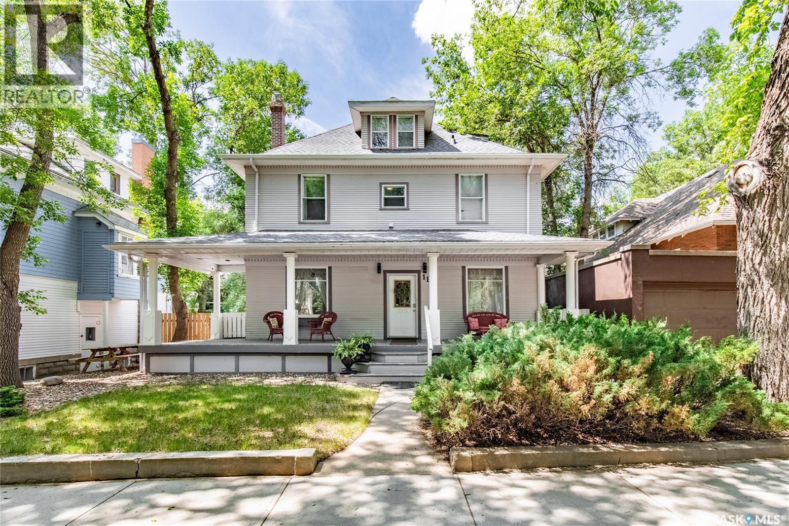 Welcome to this beautiful, character-filled home nestled on the tree-lined and sought-after Clifton Avenue. From the moment you arrive, the inviting front covered porch sets the tone — this is a home with heart, history, and so much to offer! Step inside and you’ll find a main floor full of warmth and possibility. A bright front office and 2-piece bathroom offer function and flexibility right off the entry. The living room is cozy and welcoming, featuring a wood-burning fireplace with stunning green tilework — a true focal point with vintage appeal. The dining room is simply breathtaking, with rich wood moldings and exposed ceiling beams that make every dinner feel special. The kitchen has updated countertops and a layout that could easily be opened up into the adjacent breakfast room for even more space and flow. Head upstairs and you’ll find four comfortable bedrooms and a 4-piece bathroom complete with a charming clawfoot tub — classic and functional. The third level is a hidden gem: a sprawling loft-style room with its own 4-piece bathroom and walk-in closet. Whether you use it as your primary suite, a creative studio, or a bonus room, it’s a space full of possibilities. The basement offers high ceilings and a wide-open layout, ready to be finished however you dream it — home gym, rec room, extra bedrooms... the sky’s the limit. Outside, enjoy a fully landscaped yard, large deck, and complete fencing for privacy. There’s even a single-car garage to round it all out. This home is more than just a place to live — it’s a piece of Moose Jaw’s history, beautifully preserved and waiting for its next chapter. Don’t wait… book your private viewing today! (id:43042)