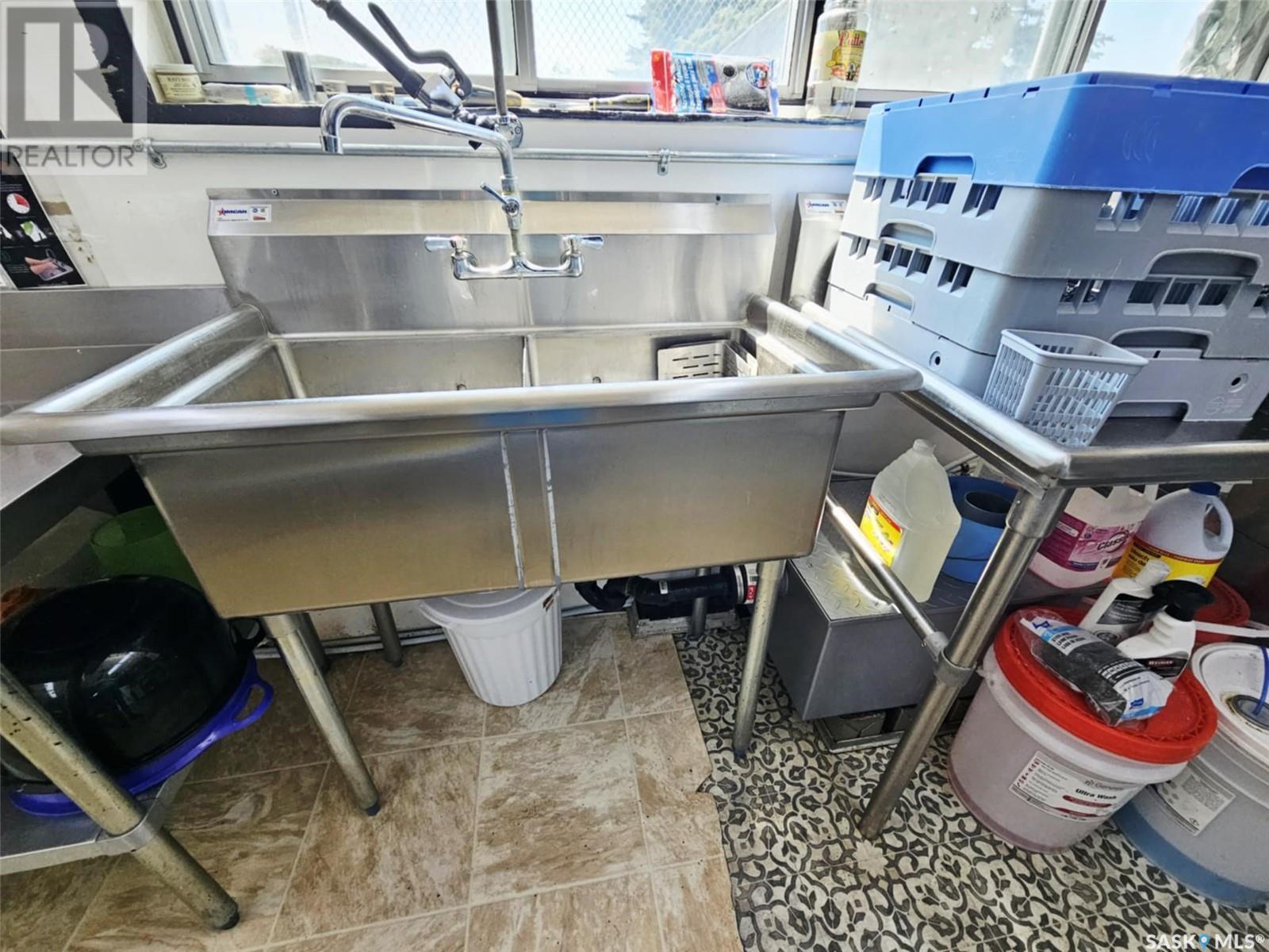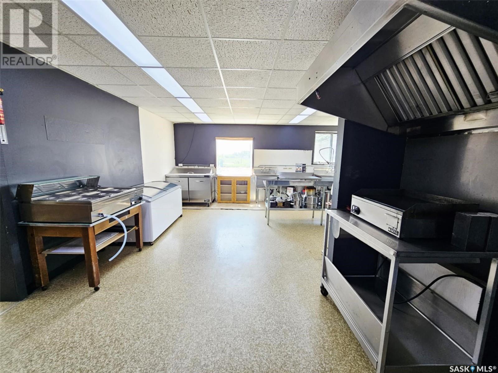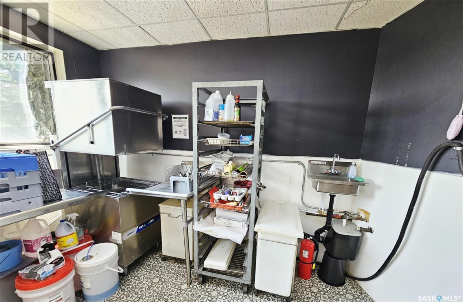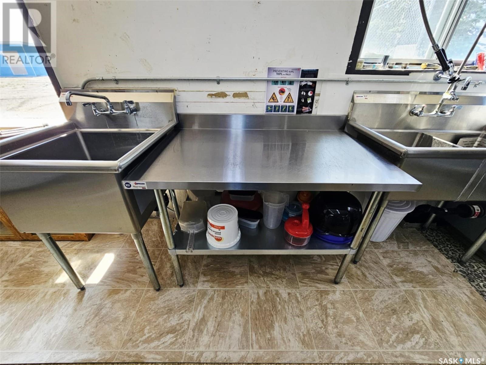 Spy Hill Saskatchewan is located directly in the center of 5 Potash mine sites: Mosaic - K1, K2 and K3; Nutrien - Rocanville and Scissors Creek. This gives the restaurateur many options for takeout, delivery and catering clients. All equipment, as pictured is included in the lease rate. Kitchen approx. 308 ft2, dining room approx. 542 ft2 and storage room approx. 308 ft2. Dedicated electrified parking spot approx. 180 ft2. Operating costs include: power, heat, water, common area janitorial, video security monitoring, landscaping and snow removal. 112 King Street, Spy Hill is a 31 room property, primarily rented by contractors in the Potash industry. 28 Fully serviced RV sites are also on the property. (id:43042)