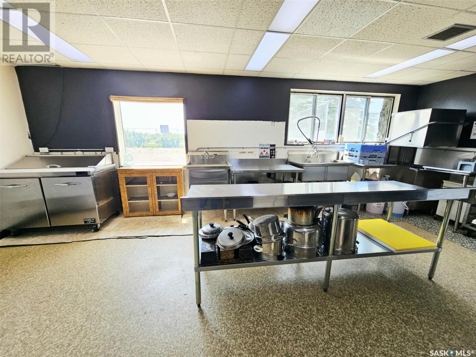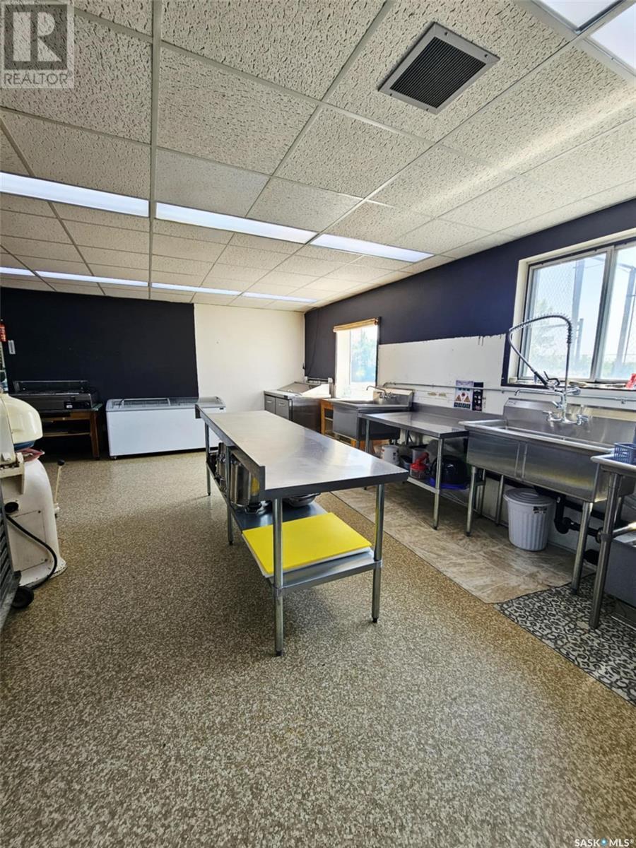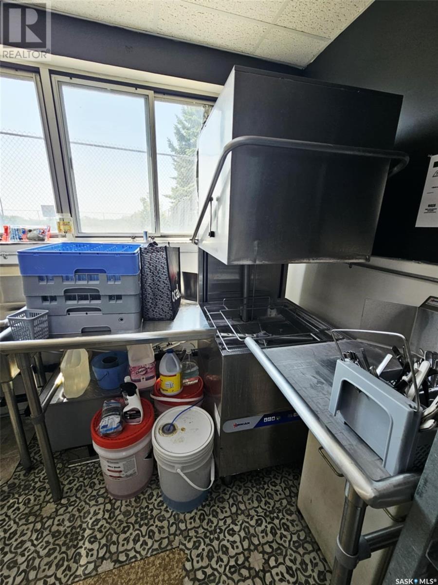Spy Hill Saskatchewan is located directly in the center of 5 Potash mine sites: Mosaic - K1, K2 and K3; Nutrien - Rocanville and Scissors Creek. This gives the restaurateur many options for takeout, delivery and catering clients. All equipment, as pictured is included in the lease rate. Kitchen approx. 308 ft2, dining room approx. 542 ft2 and storage room approx. 308 ft2. Dedicated electrified parking spot approx. 180 ft2. Operating costs include: power, heat, water, common area janitorial, video security monitoring, landscaping and snow removal. 112 King Street, Spy Hill is a 31 room property, primarily rented by contractors in the Potash industry. 28 Fully serviced RV sites are also on the property. (id:43042)