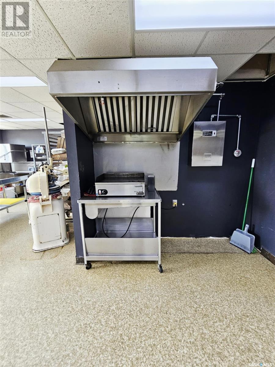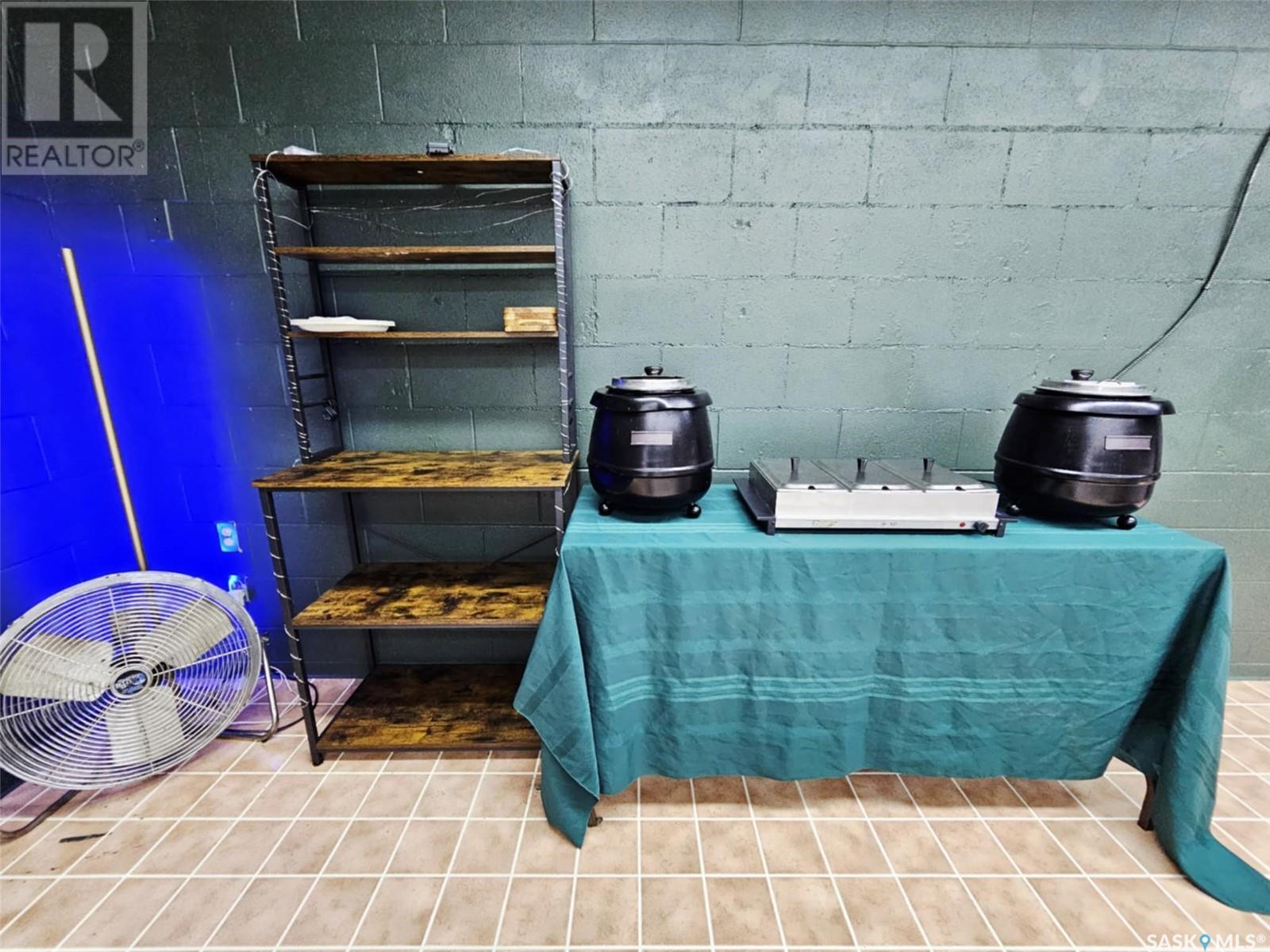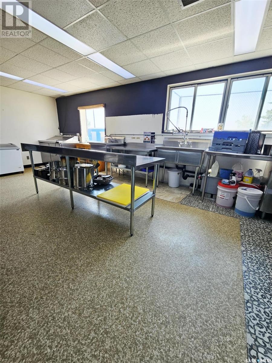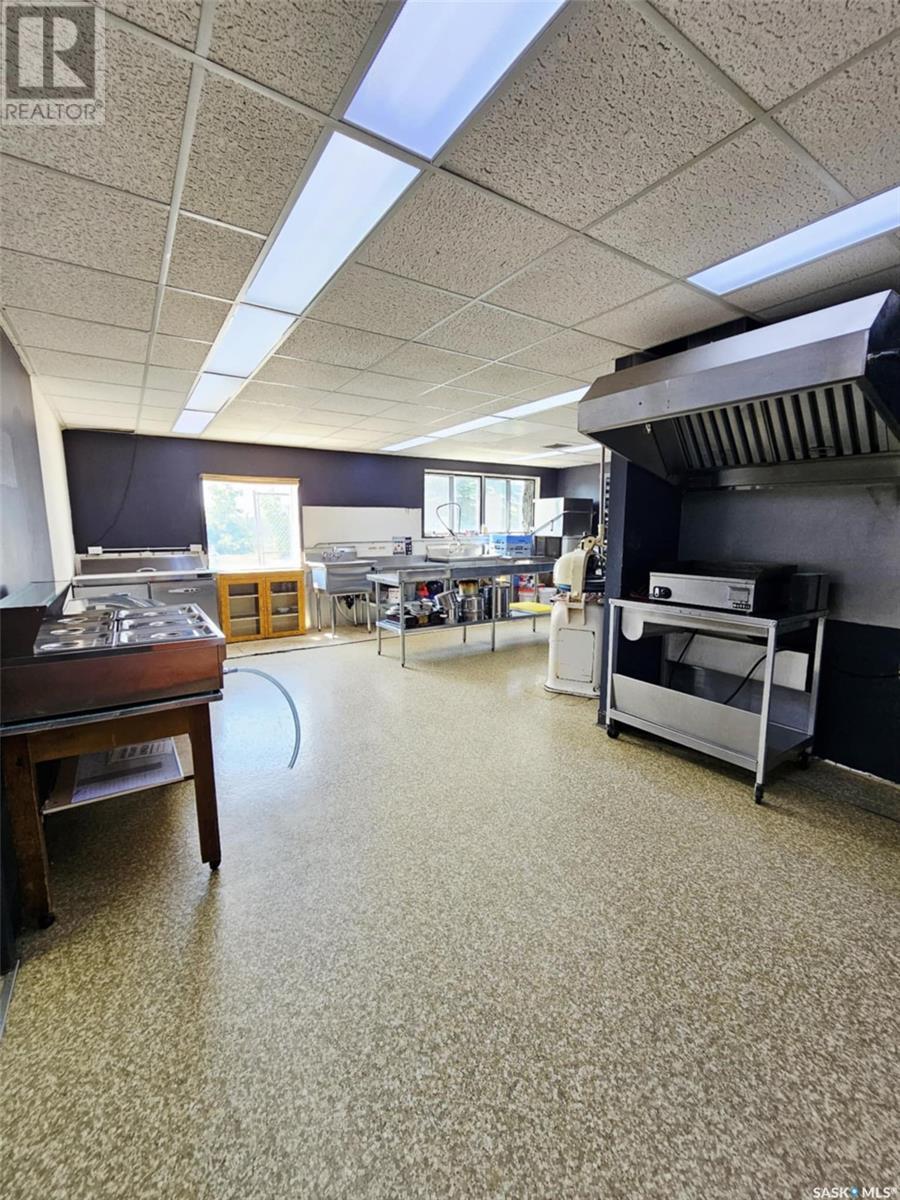 Spy Hill Saskatchewan is located directly in the center of 5 Potash mine sites: Mosaic - K1, K2 and K3; Nutrien - Rocanville and Scissors Creek. This gives the restaurateur many options for takeout, delivery and catering clients. All equipment, as pictured is included in the lease rate. Kitchen approx. 308 ft2, dining room approx. 542 ft2 and storage room approx. 308 ft2. Dedicated electrified parking spot approx. 180 ft2. Operating costs include: power, heat, water, common area janitorial, video security monitoring, landscaping and snow removal. 112 King Street, Spy Hill is a 31 room property, primarily rented by contractors in the Potash industry. 28 Fully serviced RV sites are also on the property. (id:43042)