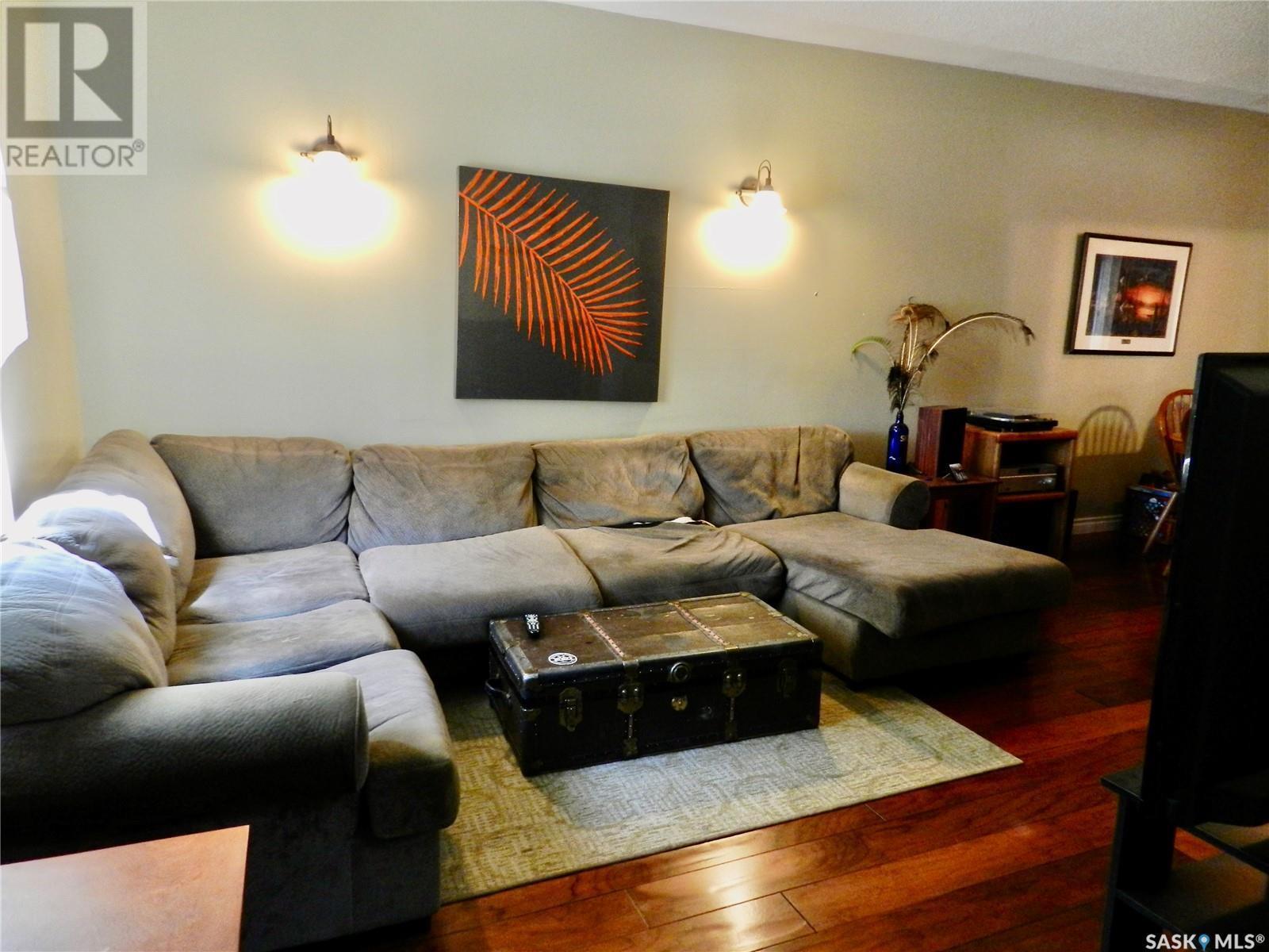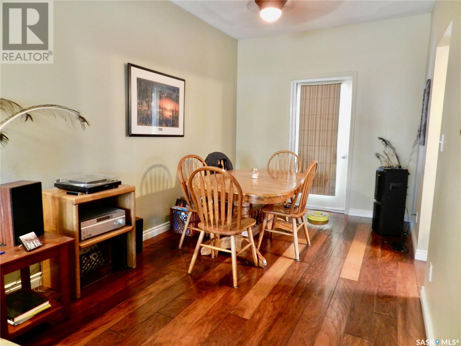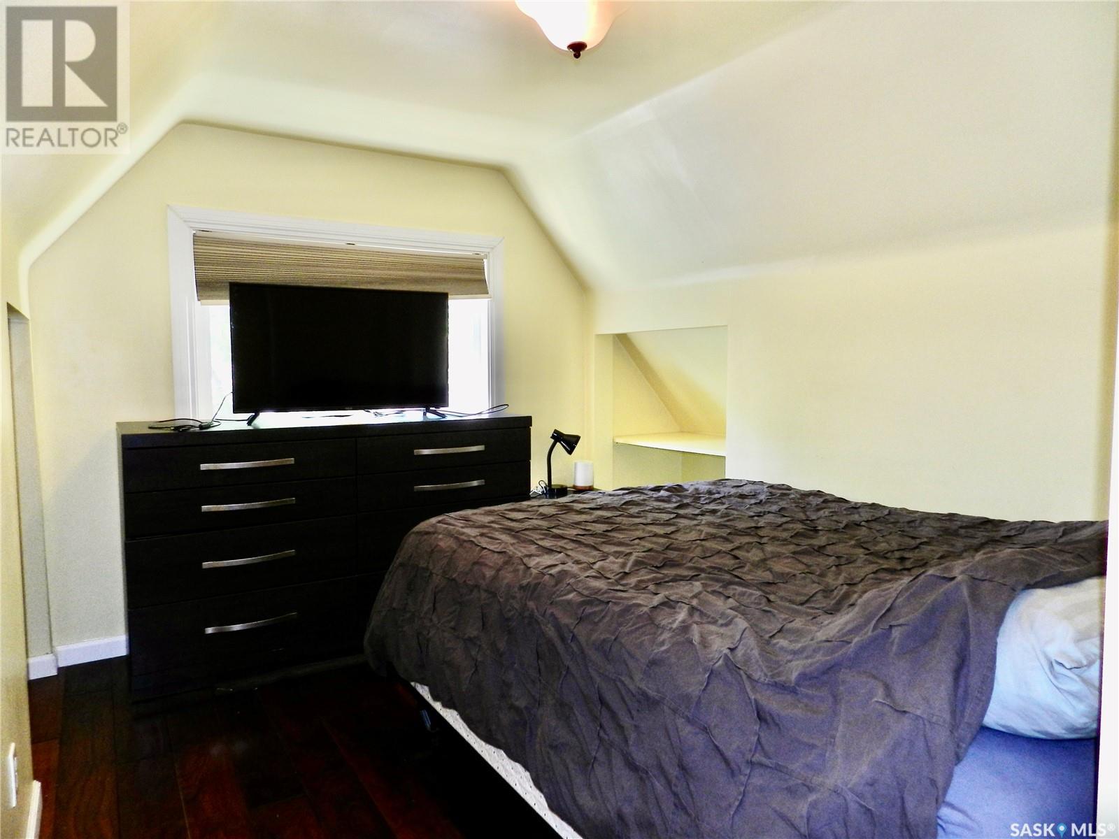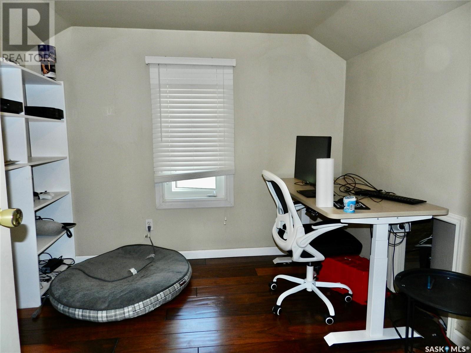 Located just a short walk from Sask Polytech, this 2 bedroom, 1 1/2 story home is a great investment as a rental or starter home. Gorgeous hardwood floors run throughout the sizeable living room, adjoining dining area and into the updated kitchen featuring a convenient pantry. On the second floor which you'll notice has the same flooring through most of it, are 2 bedrooms and an updated bathroom. The unfinished basement is a decent height and could accommodate a family room, or bonus room etc. Most of the windows are newer, furnace 2022, and the insulated, super single (18 X 24) garage was built in 2007. This cute home is waiting for you! Book a showing today. (id:43042)