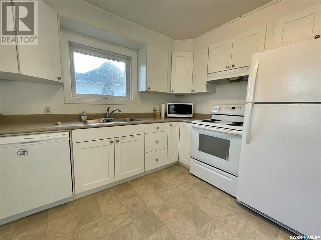 Looking for an affordable home? It doesn't get much better than this centrally located 3 bedroom bungalow. Oversized front porch has plenty of room for you to sit and enjoy your morning coffee with the back porch being the perfect boot room! Inside the layout is fully functional with a modern white kitchen and all appliances included! Your main living and dining area has original hardwood floors and lots of natural light. 3 good sized bedrooms and a 4 piece bathroom complete the main level. Laundry is located downstairs with tons of storage/workshop space all ready for your development. This house has updated windows, siding, furnace, new carpet in the bedrooms, new back deck and so much more. Let's not forget the DOUBLE detached garage that is the cherry on top, RUN don't walk for this one. (id:43042)