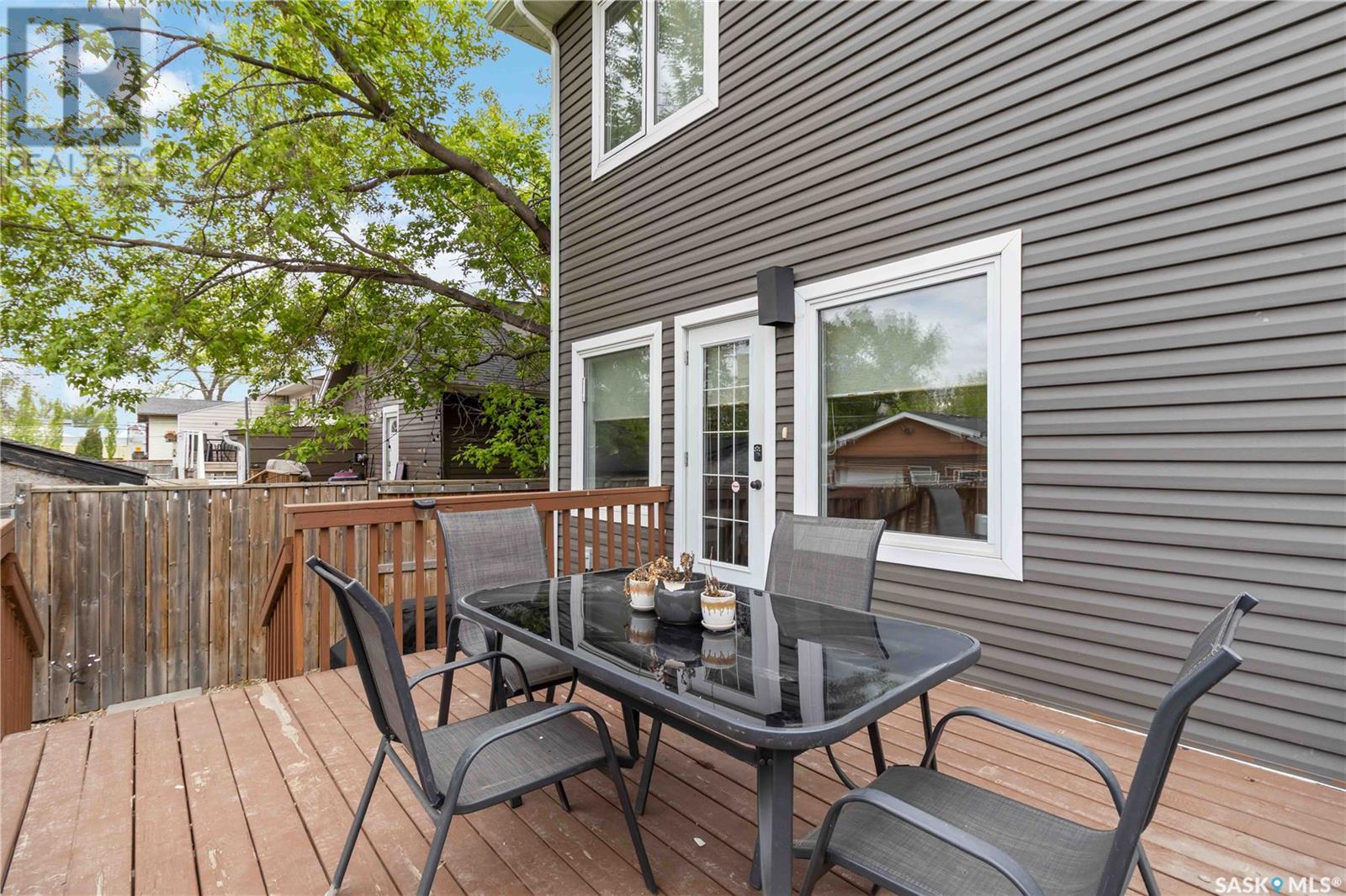 ***TURNKEY! FULLY FURNISHED, NEARBY UOFS, EXTRA STORAGE!***Welcome to 112A 109th St located in the heart of Saskatoon! Minutes away from the University of Saskatchewan, this property boasts 1410 sqft. Featuring 3 bedrooms and 2.5 bathrooms, there is ample space throughout. The exterior of this home has been beautifully completed with lovely landscaping, home finishes, and more. The main level of this home features a 2-piece bathroom upon entry with a spacious open-concept living, kitchen, and dining area. The oversized kitchen is finished with high quality finishes from the cabinets and countertops features custom built finishes. The upper level of this home features 3 spacious bedrooms with an oversized master bedroom, and a walk-in closet that open into a beautifully finished 4-piece ensuite. In addition, the top floor also features another spacious 4-piece bathroom. The washer and dryer are conveniently located on the upper level. The basement is full of potential with windows throughout. The backyard features a lovely spacious deck, with a fully finished yard that is well-loved and cared for. In addition, a double detached garage is also in the rear with access to a back alley. The attached storage unit on the left front side belongs to this property and is included! Nearby, one will find an elementary school steps away from the home, the University Saskatchewan is minutes away from this home with nearby bus routes. Nearby high schools, grocery stores, gas stations, gyms, and more make this home conveniently situated in the heart of Saskatoon! Call your favourite agent to view! (id:43042)