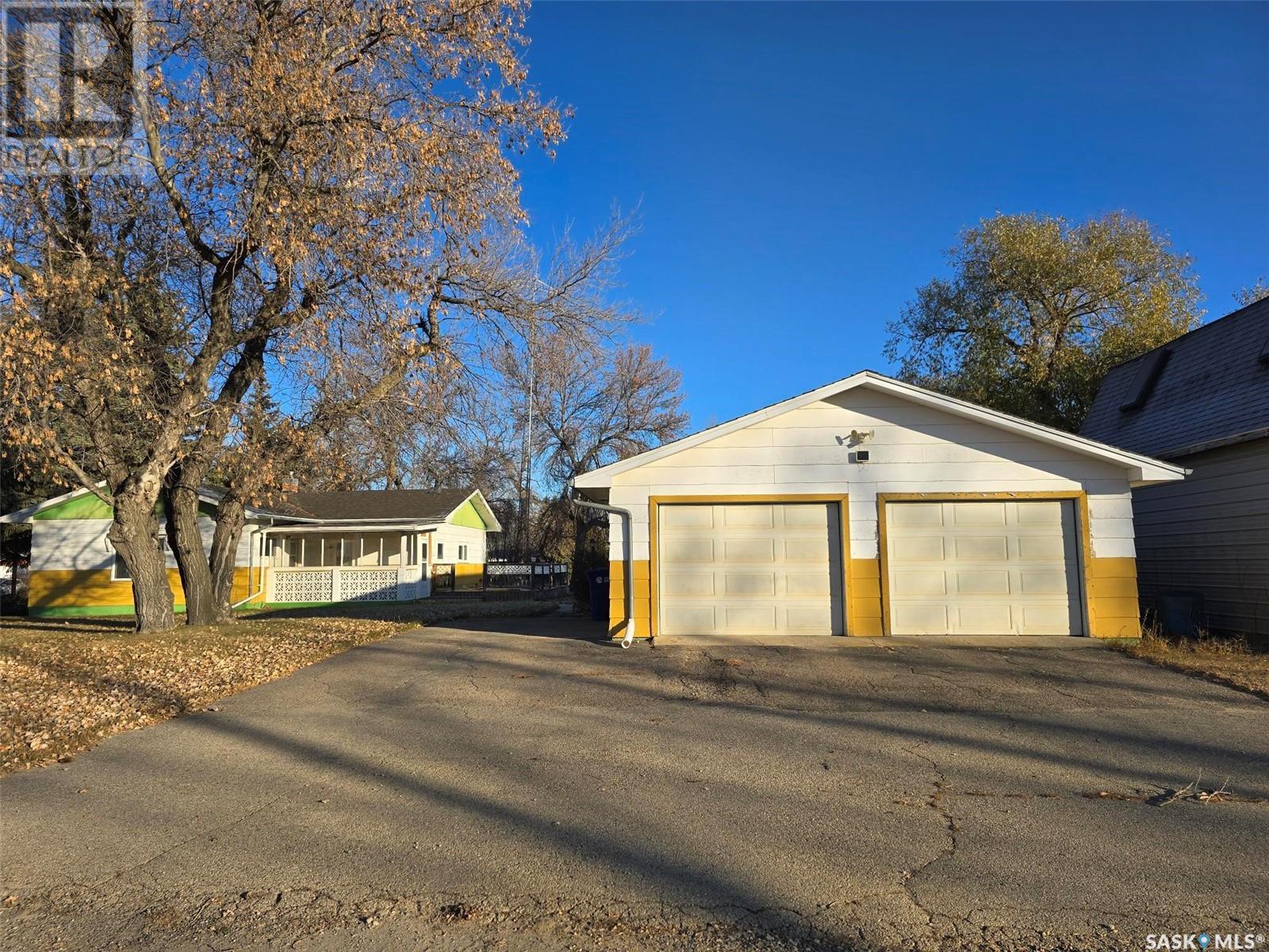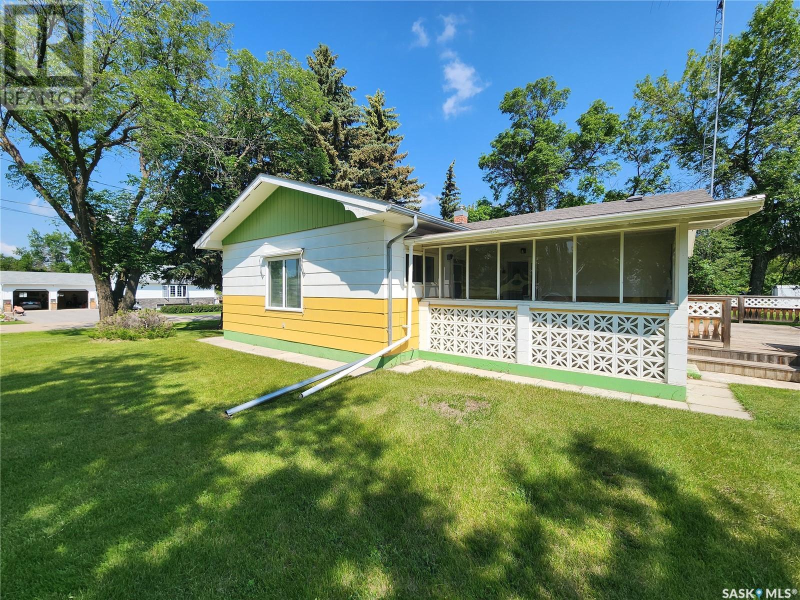 It's all about the yard and location and GARAGE at 113-115 Blanchard Street , Wolseley Sk. Located on the south side of town , across the street from a great golf course, on a large corner lot 100' wide with every man's dream... an insulated double garage (24' x 32'). Yes... this is a wonderful asset to this property. The home was built in 1912 but an addition was added in 1977 to provide an extra living room to already a spacious dining /bonus area. Ceiling in the original home are 9'. The 2 bedrooms are located just off this area. The bright and sunny east kitchen is at the back of the home , along with the updated 4 piece bathroom (2016). There is a small room beside the kitchen used currently as storage and partial laundry room. Step into the Sunroom to enjoy some summer days "bug free". Are you ready to purchase a home in a historical community for a good value...this one is not to be missed. Firepit and small garden located in the back yard. Shingles done in 2016. Good starter or revenue property. Don't miss out! (id:43042)