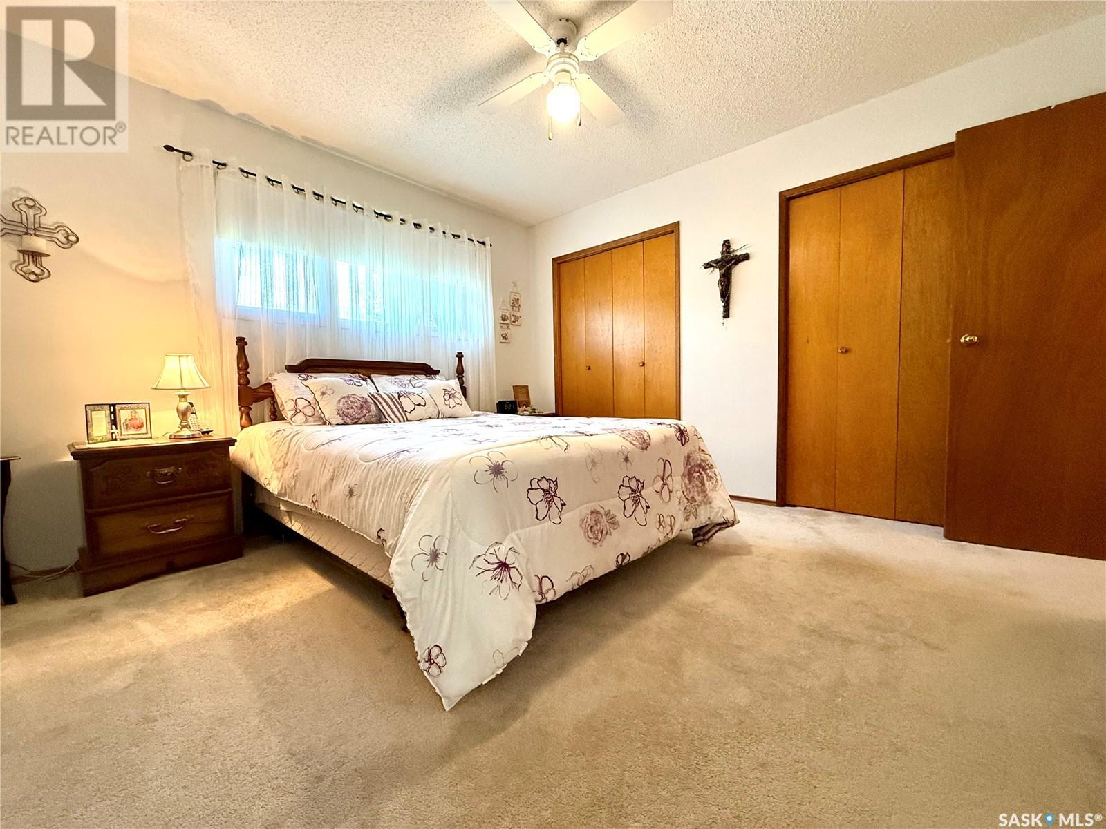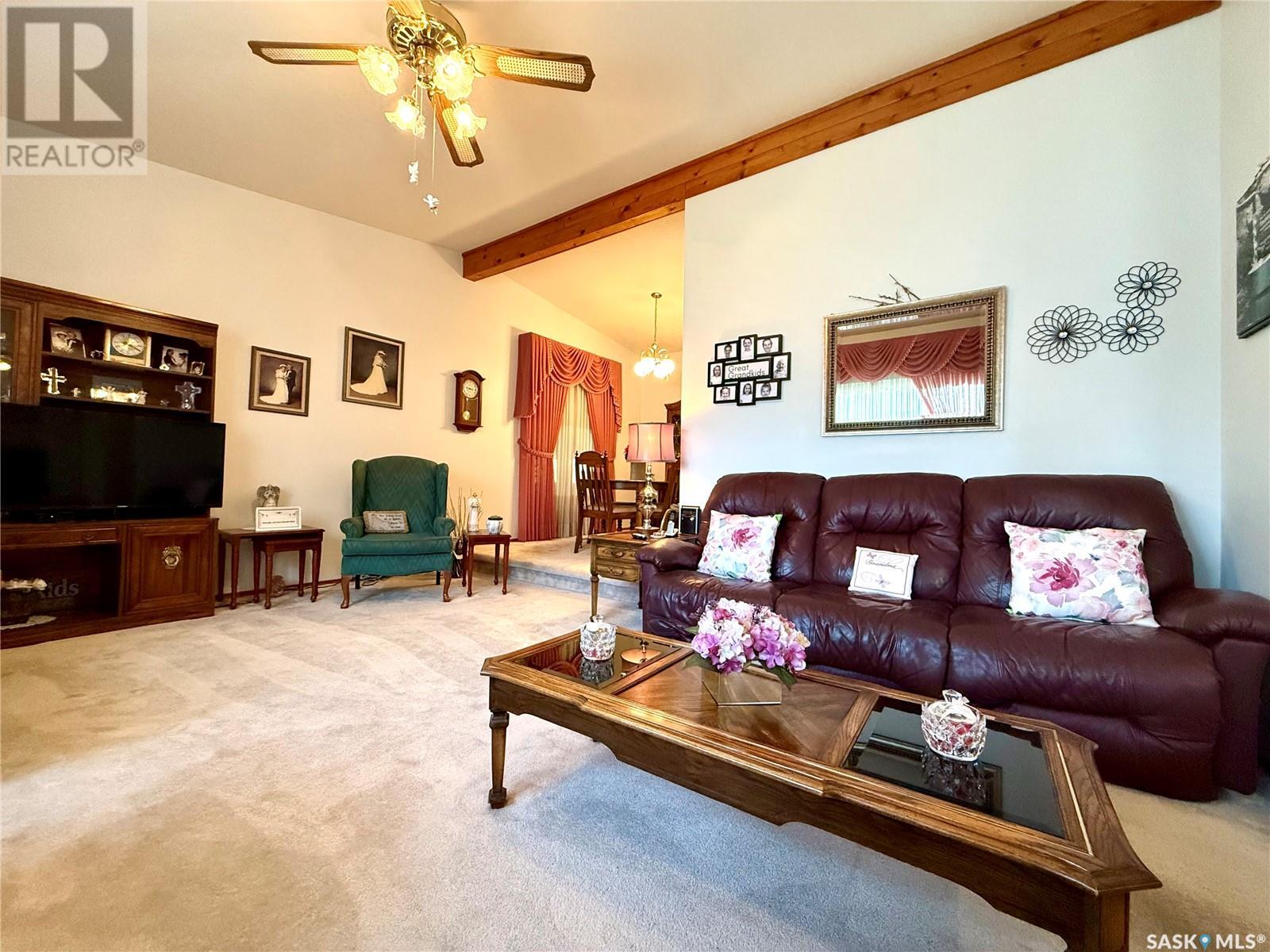 Nestled in the highly sought-after Silver Heights neighborhood, this meticulously maintained bungalow offers timeless charm and enduring quality. Built in 1987, this one-owner home showcases classic architectural features of its era, including a welcoming sunken living room, a formal dining room ideal for entertaining, and a cozy kitchen nook perfect for everyday meals. This spacious home offers four well-appointed bedrooms and three bathrooms, including a master suite complete with his and hers closets and a private two-piece ensuite. A three-season sunroom, located just off the garage, provides additional living space to enjoy the outdoors in comfort. Set on a pristine lot just half a block from Yorkton’s perimeter highway (Queen Street) with direct access to Melville, the property combines suburban tranquility with convenient connectivity. The location is unbeatable—directly behind the hospital and nursing home, and within walking distance to a family-friendly water park, tennis and basketball courts, and scenic paved walking trails. Impeccably cared for both inside and out, this home has never experienced water intrusion during local flooding events. It offers a rare opportunity to own a solid, gently lived-in property in one of Yorkton’s most desirable subdivisions. Don’t miss your chance to own this classic Silver Heights gem. (id:43042)
