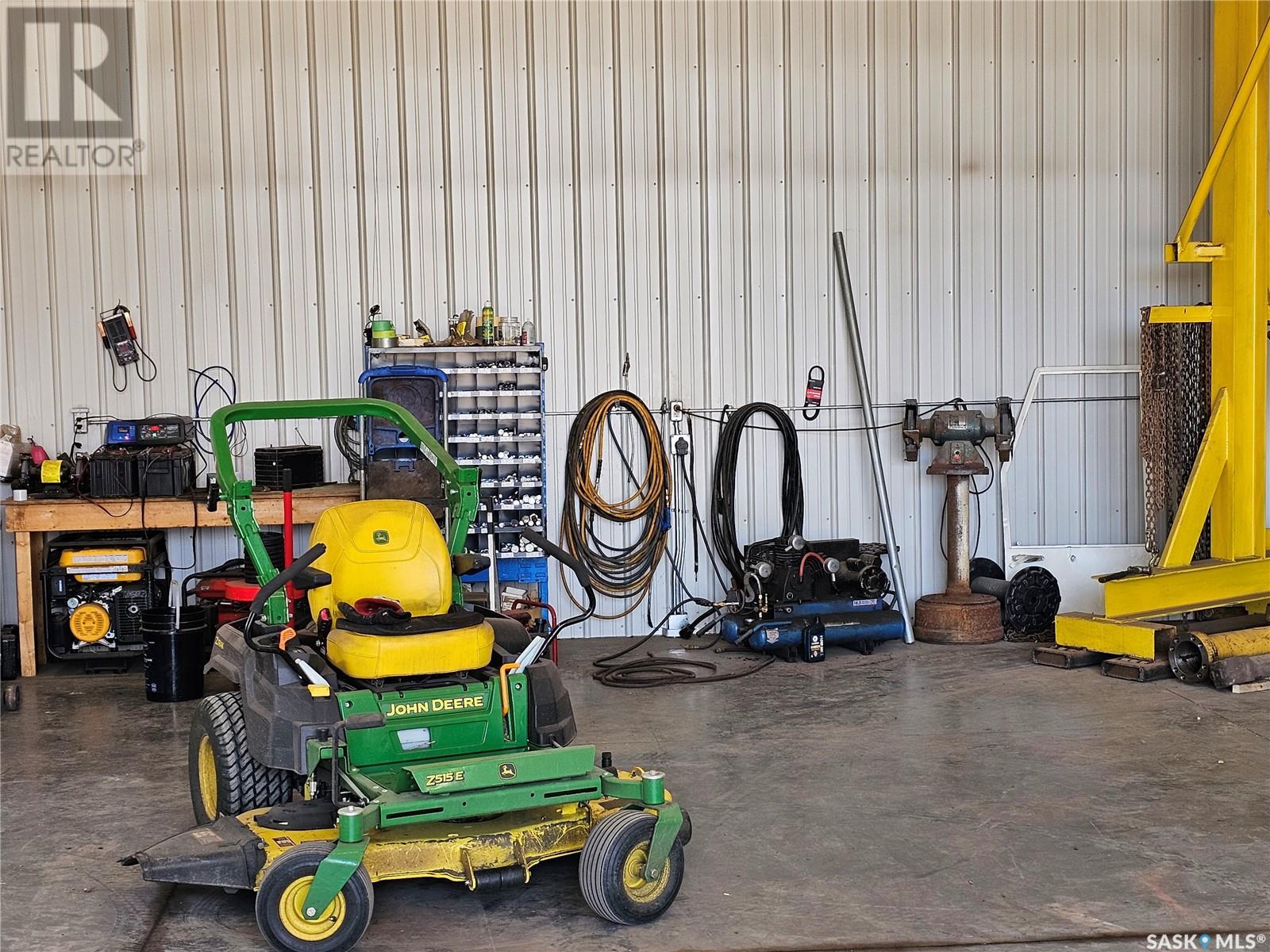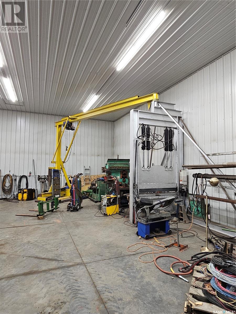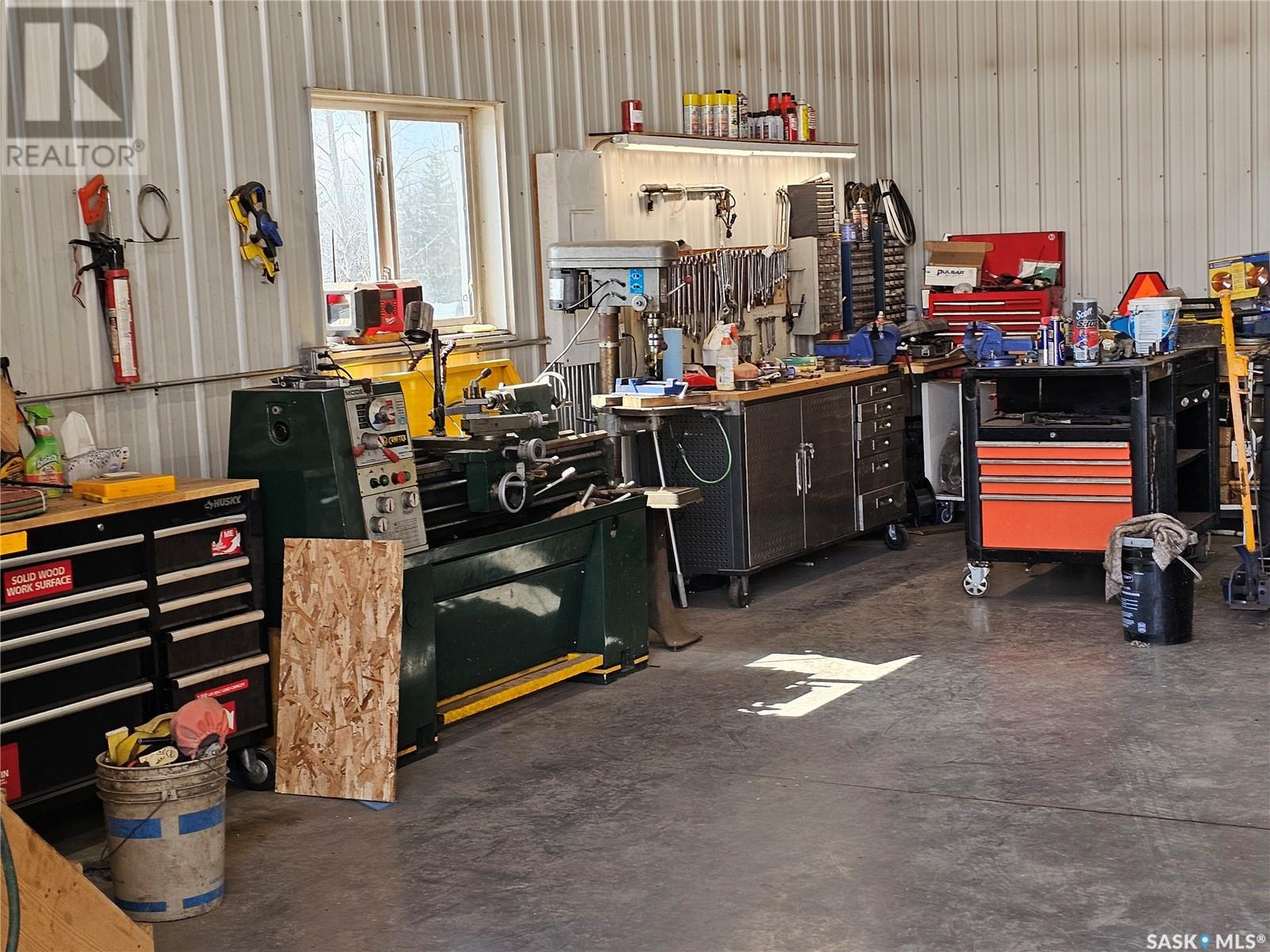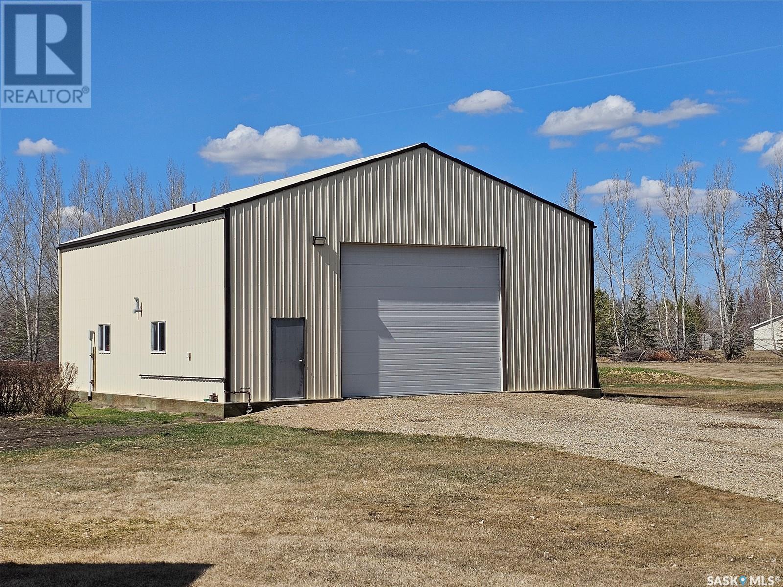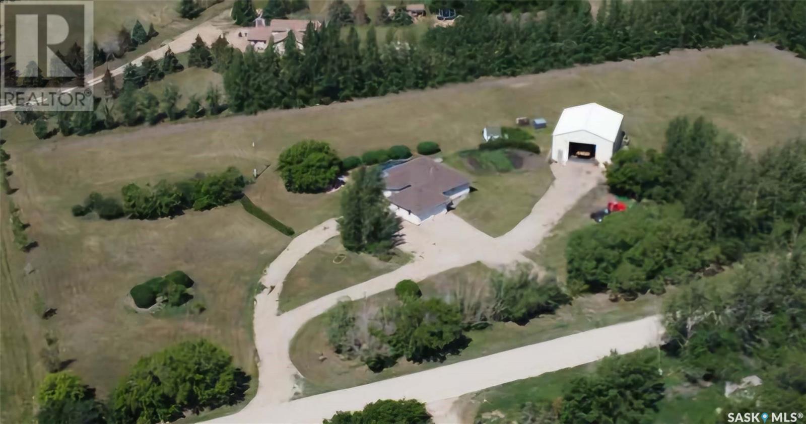 Welcome to your own 5-acre private park: fully grassed, cotoneaster hedges and lilac bushes, 3 flower beds with perennials, a garden and raspberry patch. The property is surrounded by beautiful mature trees including a large maple with a patio seating area. There is large deck on south and west side of the house. A circular small-stoned driveway lead to the house and shop from the paved road. This spacious and bright 1480 sq. ft. bungalow, has an open concept with fully finished basement and a 24 x 24 - 2 car attached garage. Main floor has 3 bedrooms plus den, 3 bathrooms, laundry room, linen and pantry closets, and large entryway with 2 coat closets. The kitchen boasts ample storage space, modern appliances (stove was purchased in January 2025), and a large peninsula facing the dining area with access to the deck. The living room has 3 large windows with a stunning view! The house is bright and sunny The HUGE open-concept basement includes an entertaining area, gaming/movie area, bathroom, storage, and plenty of additional space for an office or workout area. Furnace, water heater, and air conditioning were new in 2023 There is also a water softener and an osmosis filter. Outside, a few steps take you to the LARGE SHOP (40 x 48 x 16) with in-floor heating, tall overhead door, bathroom, and upper mezzanine for office or additional storage. See below for shop equipment available for separate purchase. This acreage is very close to an elementary & high school, post office and service station, as well as the town hockey and curling rinks, dance studio, community centre, café and bar. It is a quick drive to amenities such as the Highway 16 gas station and convenience store (2 min drive), and the Saskatoon South Costco and shopping centre (9 minute drive). SHOP ITEMS AVAILABLE FOR SEPARATE PURCHASE: (id:43042)