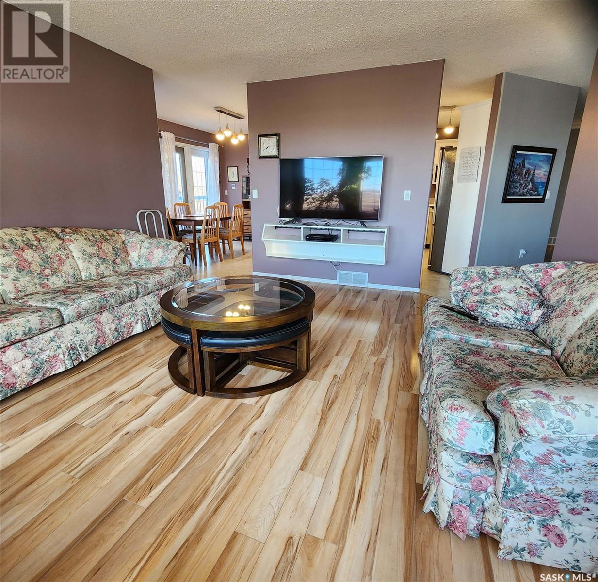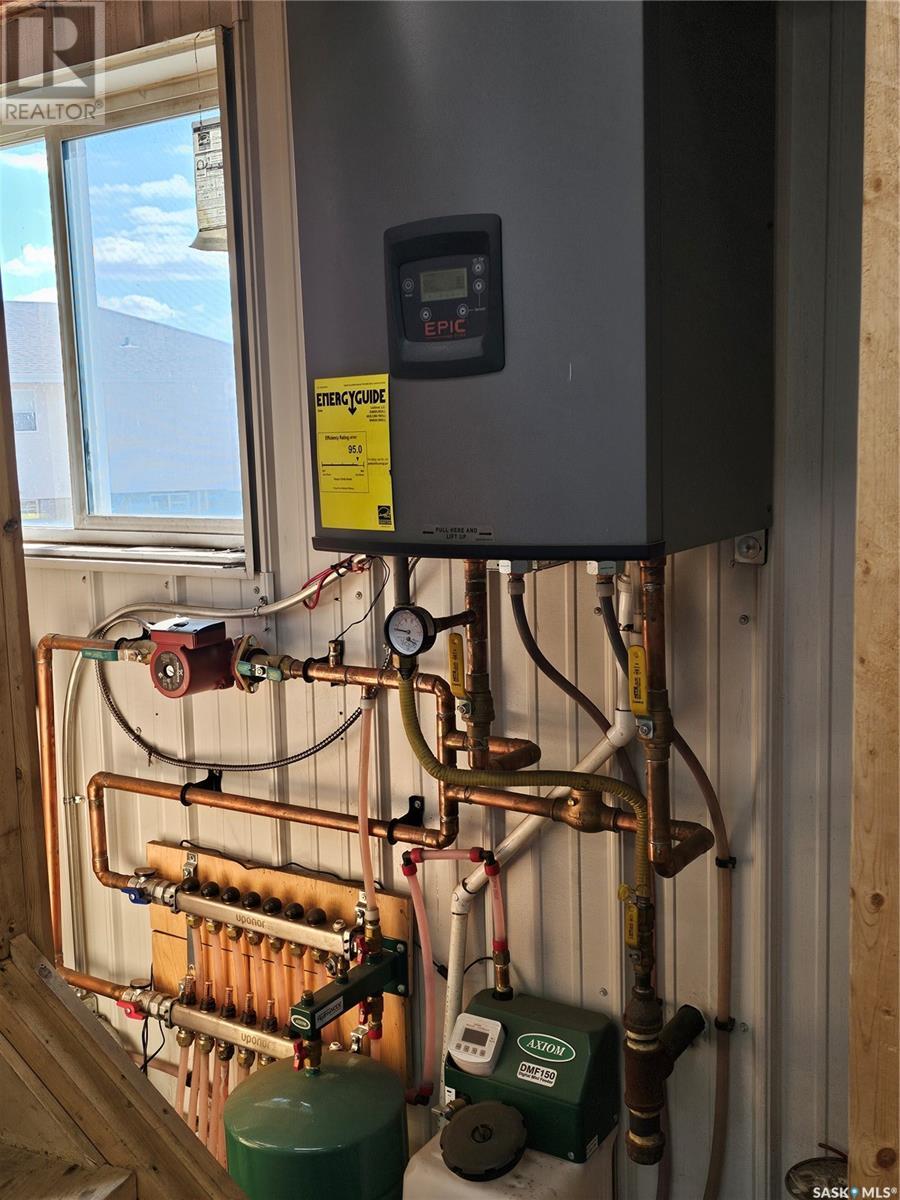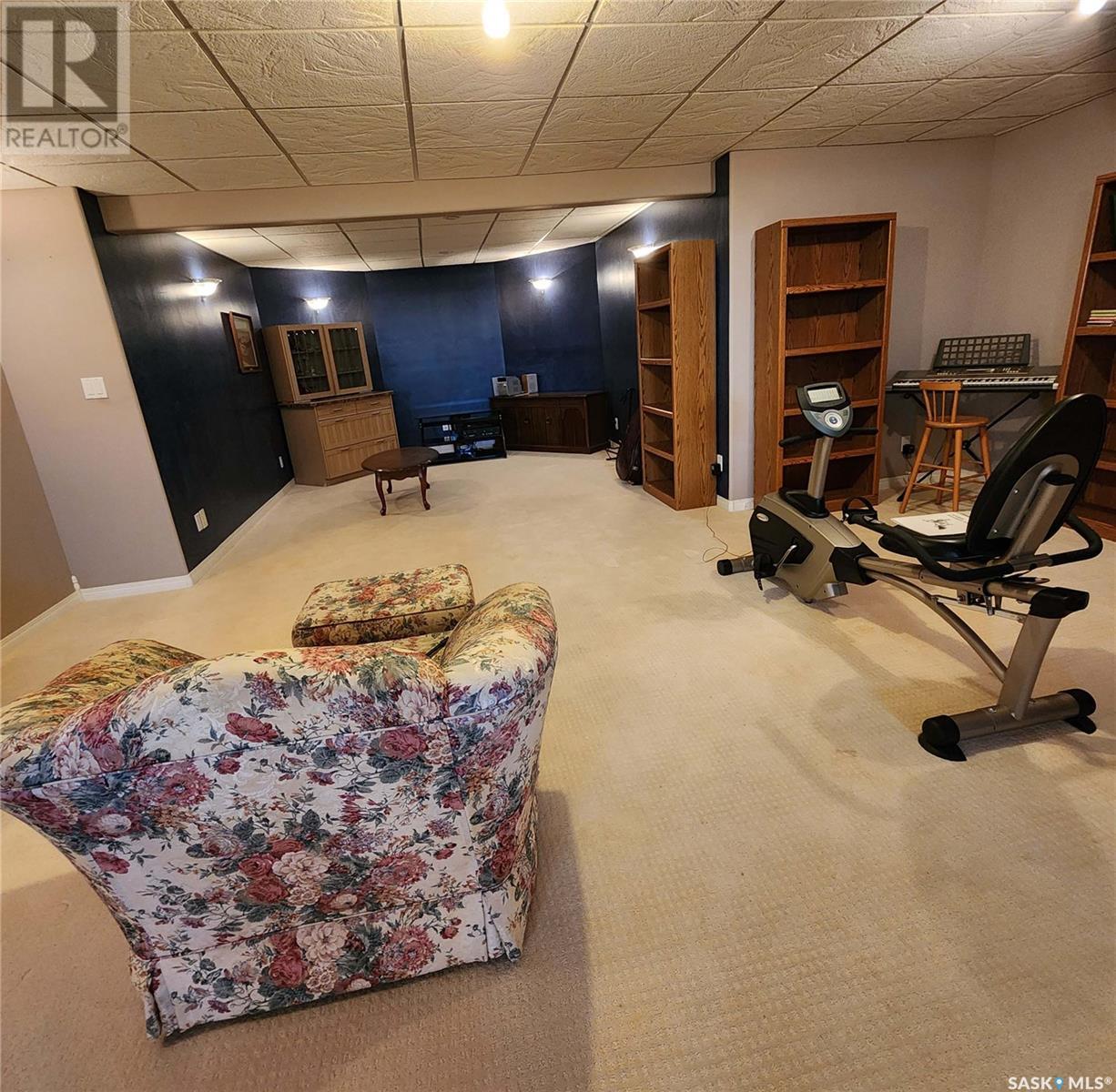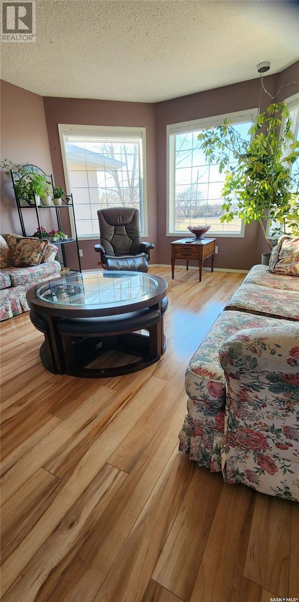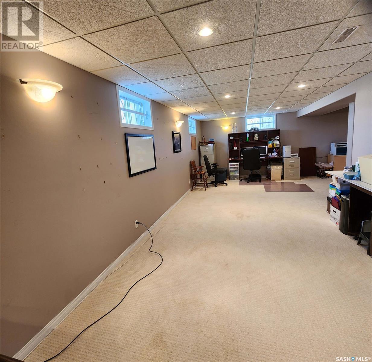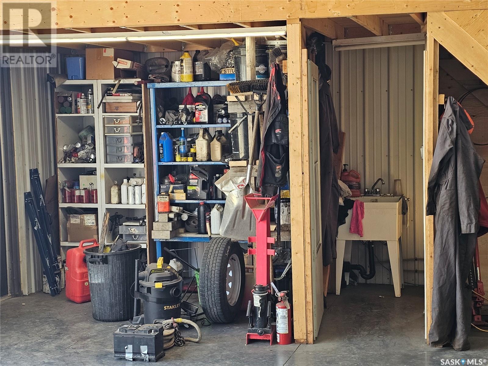 Welcome to your own 5-acre private park: fully grassed, cotoneaster hedges and lilac bushes, 3 flower beds with perennials, a garden and raspberry patch. The property is surrounded by beautiful mature trees including a large maple with a patio seating area. There is large deck on south and west side of the house. A circular small-stoned driveway lead to the house and shop from the paved road. This spacious and bright 1480 sq. ft. bungalow, has an open concept with fully finished basement and a 24 x 24 - 2 car attached garage. Main floor has 3 bedrooms plus den, 3 bathrooms, laundry room, linen and pantry closets, and large entryway with 2 coat closets. The kitchen boasts ample storage space, modern appliances (stove was purchased in January 2025), and a large peninsula facing the dining area with access to the deck. The living room has 3 large windows with a stunning view! The house is bright and sunny The HUGE open-concept basement includes an entertaining area, gaming/movie area, bathroom, storage, and plenty of additional space for an office or workout area. Furnace, water heater, and air conditioning were new in 2023 There is also a water softener and an osmosis filter. Outside, a few steps take you to the LARGE SHOP (40 x 48 x 16) with in-floor heating, tall overhead door, bathroom, and upper mezzanine for office or additional storage. See below for shop equipment available for separate purchase. This acreage is very close to an elementary & high school, post office and service station, as well as the town hockey and curling rinks, dance studio, community centre, café and bar. It is a quick drive to amenities such as the Highway 16 gas station and convenience store (2 min drive), and the Saskatoon South Costco and shopping centre (9 minute drive). SHOP ITEMS AVAILABLE FOR SEPARATE PURCHASE: (id:43042)