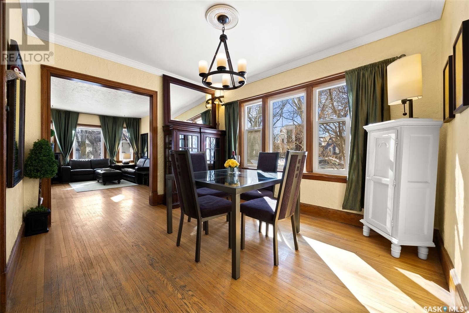 Want a truly beautiful character home in Regina's prime location, with modern upgrades including new shingles, newer furnace, newer A/C, newer PVC windows, in floor heated bathroom, and oversized newer garage? Welcome to 115 Connaught Crescent, nestled in the picturesque mature tree lined street in the Crescents. This charming home blends classic character with the perfect balance of modern charm. Walking in, you will notice natural light that fills every corner of the main floor with cheerful calming decor. With 1,072 square feet of main floor living space, this home features 4 bedrooms and 2 full bathrooms, making it a comfortable space for families or those who love to entertain. The main floor is bright and open, offering three bedrooms and a well-designed kitchen with a gas range and ample storage. Walking into the rooms, you will notice 9' ceiling, original wood flooring and windows. The lower level offers a spacious living area which includes a fourth bedroom, a large bathroom, and a subfloor for added warmth and comfort. This level also houses the home office space, laundry and extra storage area. A standout feature of this property is the oversized 22' x 23' double garage with 10' ceilings and a 9' door, extra rebar concrete floor, providing excellent storage and workspace with convenient laneway access. Outside, you’ll find a low maintenance yard with garden beds in both the front and back—perfect for those who love to garden without too much upkeep. The backyard also offers a great space for entertaining and enjoying warm summer days ahead. Located just minutes from downtown, Wascana Park, and the vibrant Cathedral area. This home offers the best of both character and convenience. Don’t miss your chance to own this hard-to-find home in one of the city’s most sought after neighbourhoods! (id:43042)