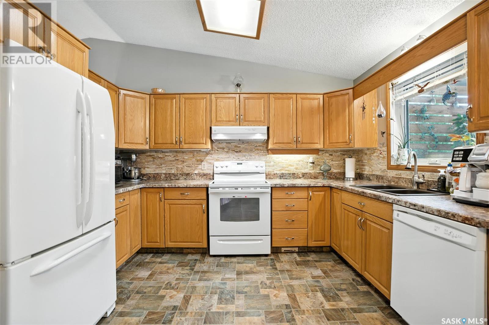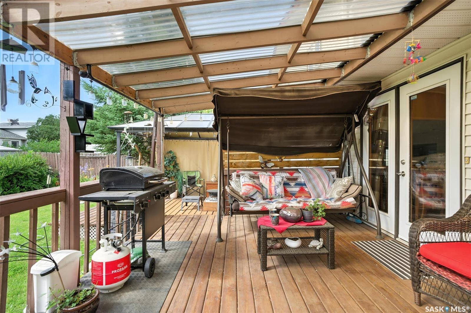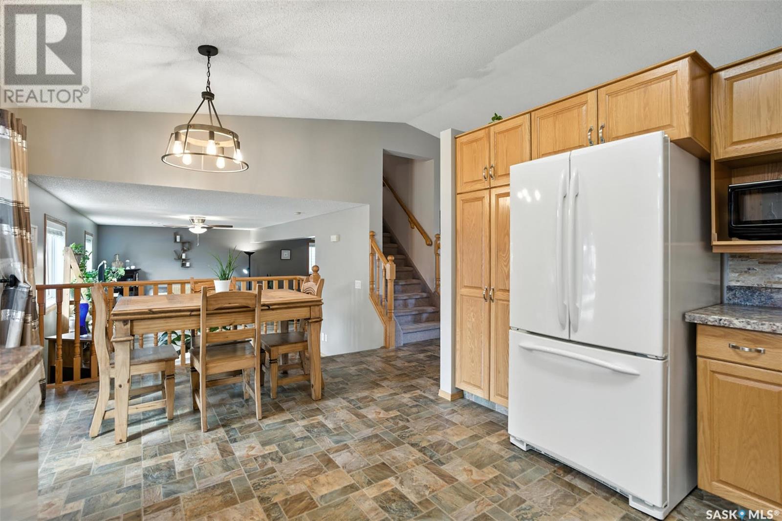 Welcome to this spacious and beautifully maintained two-story split in the highly desirable Dundonald neighborhood. Offering 1,736 square feet of well-designed living space, this 3-bedroom, 3-bathroom home is perfect for families seeking comfort, functionality, and a fantastic location. The layout is bright and inviting, with tons of natural light and generous family living areas throughout. The home is fully developed and loaded with great features, including central air conditioning, updated shingles, updated windows, updated furnace, and updated water heater—providing comfort and peace of mind for years to come. Step outside to enjoy the huge, mature yard, ideal for kids, pets, and outdoor entertaining, complete with a beautiful deck for relaxing or hosting guests. The double attached garage offers direct access to the home, and there’s plenty of storage throughout the house. Don’t miss your chance to own this move-in-ready gem in one of Saskatoon’s most sought-after communities! Call today for your private tour! (id:43042)