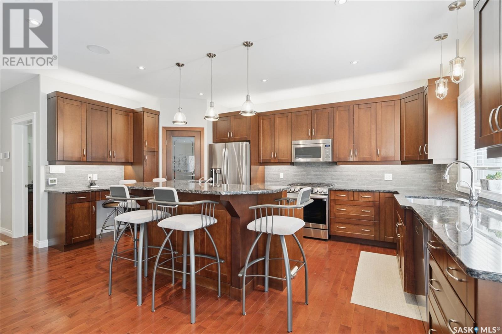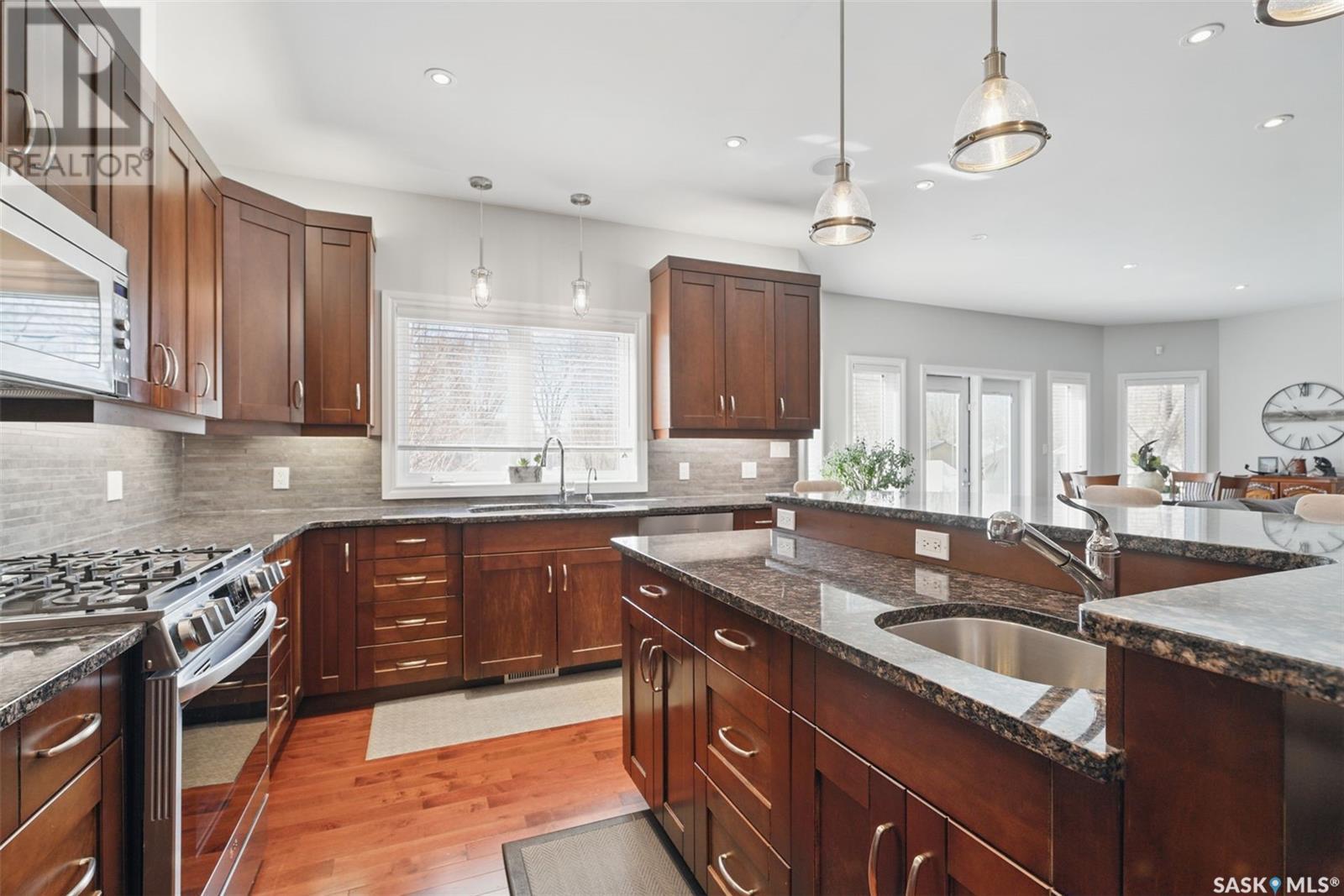 Curb appeal and quality - beautifully well-treed established area with large mature trees in a very welcoming and quiet neighbourhood. J just 5 minutes to Stonebridge and Downtown, it is centrally located to all parts of the city so access is easy. This home has it all! Step into luxury in this 2538 sq ft 2 storey dream home. Open concept living is the way to go and this home delivers. The kitchen dining area is perfect for socializing while you entertain. The kitchen is a cook's dream with maple cabinets, a prep sink separate from the main kitchen sink as well as granite counter tops and pantry with tons of storage. The range in the kitchen is currently a gas range but there is a 220V plug if you wanted to switch to an electric range. The many windows flood the area with natural light. There is hardwood flooring throughout the main floor and in the primary bedroom. The main floor has a 2 pc bathroom with laundry. and the 2nd floor has a 4 pc bathroom with laundry as well. Let the day melt away in the steam shower or in one of the 2 jetted tubs while listening to your favourite music on the Control 4 Audio system which controls the audio, TV's and lighting in the home. Your feet will always be warm since the bathrooms, basement and garage all have hydronic in-floor heating. The basement is the epitome of a relaxing and fun space with room for friends and family. There is a wet bar and plenty of space for your family to enjoy. The large back deck is tiled and has a natural gas BBQ hookup. The front and back yard has perennials, a watering system in place and was customized, hand crafted and designed by the seller. This property maximizes it's worth and it shows. Call your Realtor today to book your private viewing. (id:43042)