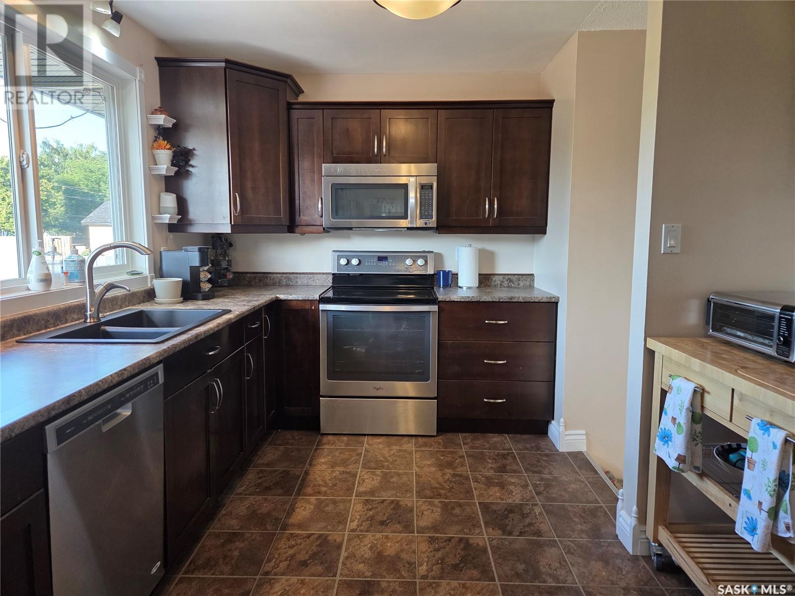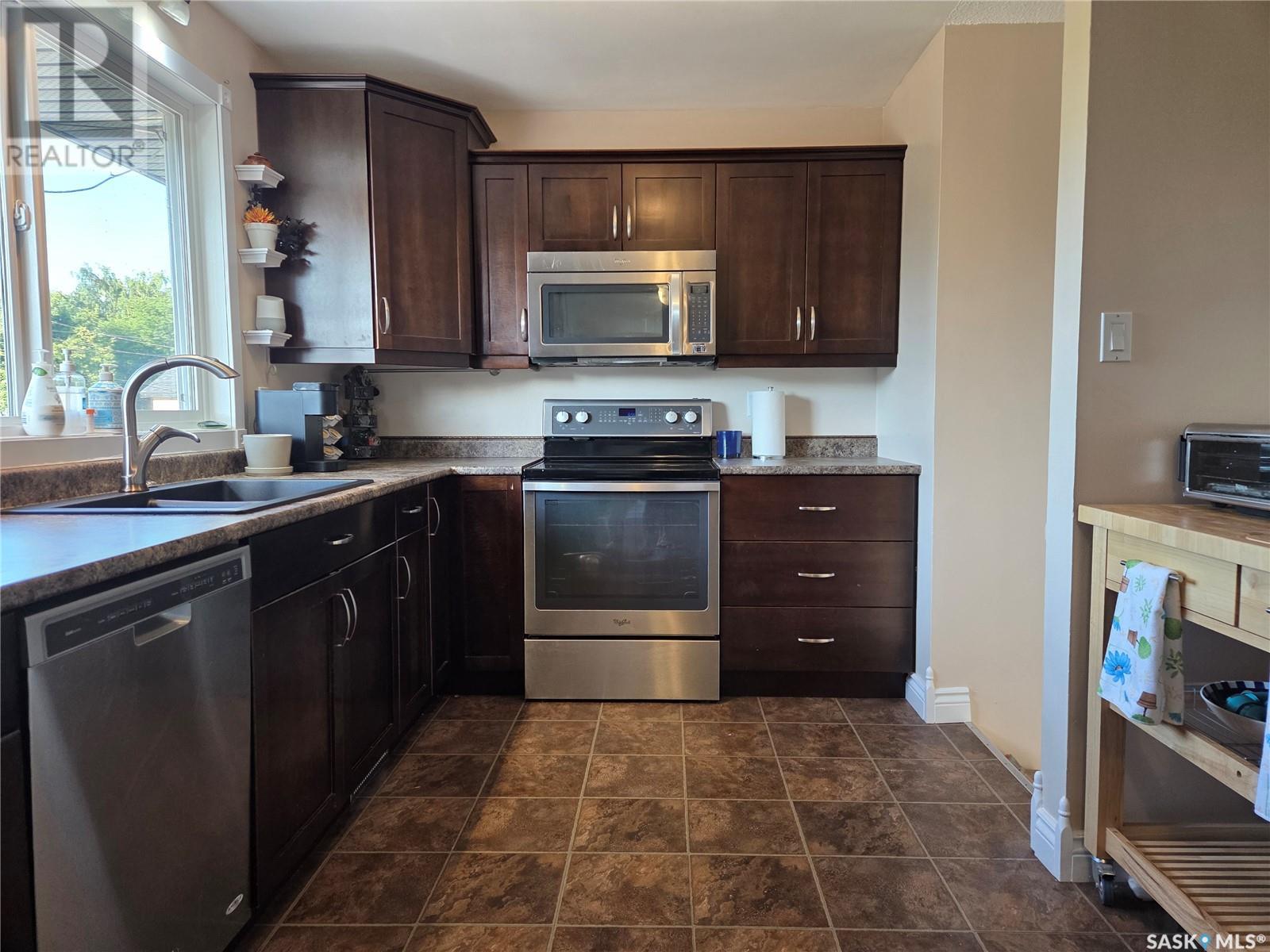 Welcome to 119 Sylvite Crescent in Allan! You wont want to miss this spacious bungalow with four bedrooms, one full bath on the main floor and a 2 pc ensuite PLUS The basement has already been roughed in for a 3rd bathroom! As you enter the front door, you'll see a tiled entry and hallway to a huge living room. The kitchen and dining area are at the back of the house with patio doors to a two tiered deck and gorgeous back yard. The lower level has a huge family room and an additional games area (which could easily be walled of into a 5th bedroom. This home is absolutely move-in ready and all the big ticket items have been done! Recent upgrades include: new vinyl siding, soffits, fascia and eavestroughing in 2024. The shingles on both the garage and house were also replaced in 2024 as well as all new exterior doors and the living room window! The furnace and HW heater were replaced in 2022. The overhead garage door was replaced in 2023. This home includes a hot tub (which requires a new cover), and an above-ground pool! Who needs a lake property when you have this in your backyard? There is plenty of room for a swing set, trampoline - you name it! There is tons of parking - including RV parking. The 28 by 28 garage has tons of storage and much of the shelving will be included. There are two storage sheds - one with electricity. Call your favorite realtor to view this fantastic home! Allan is located 65 km SE of Saskatoon and is home to many amenities including a K-12 school, Co-op Food Store and Gas bar, Allan Communiplex, restaurants, churches and even a bowling alley and swimming pool! (id:43042)