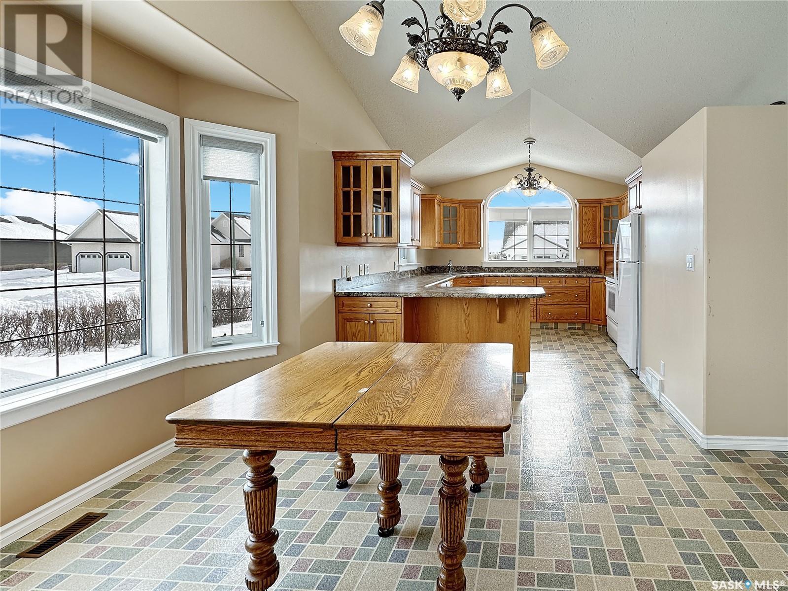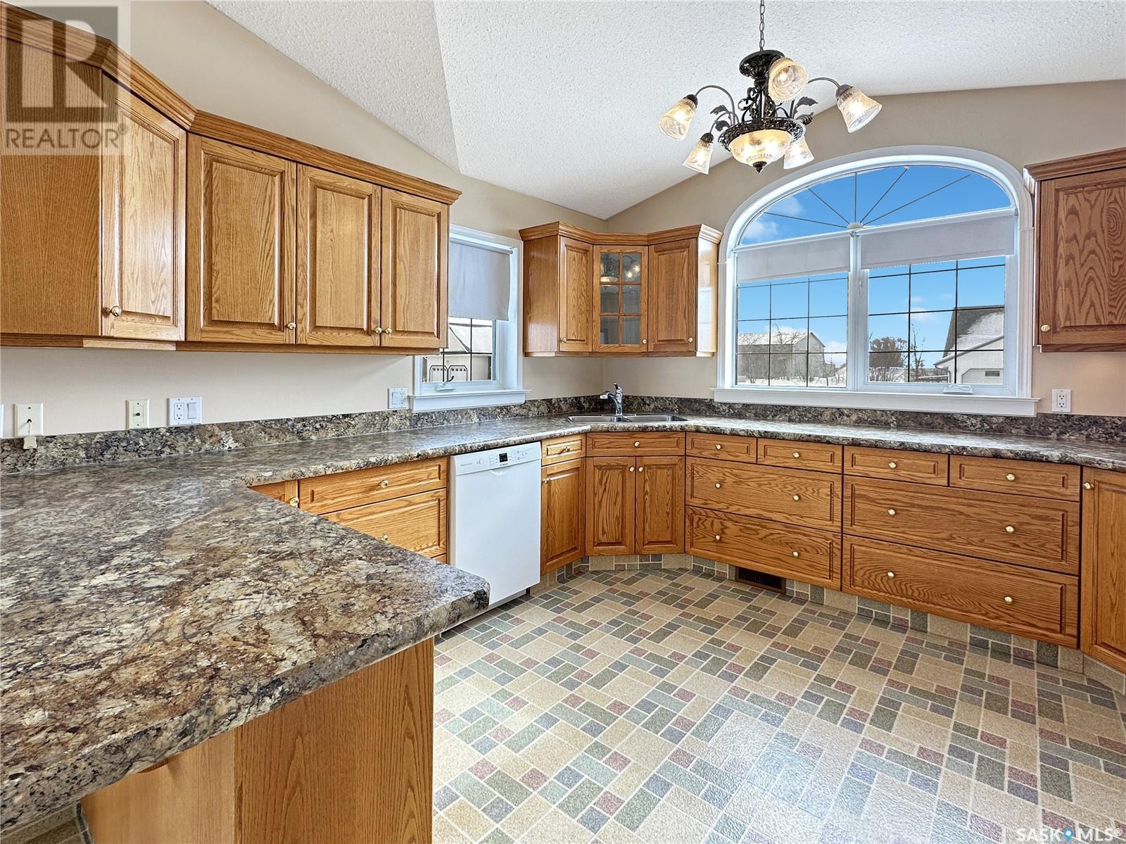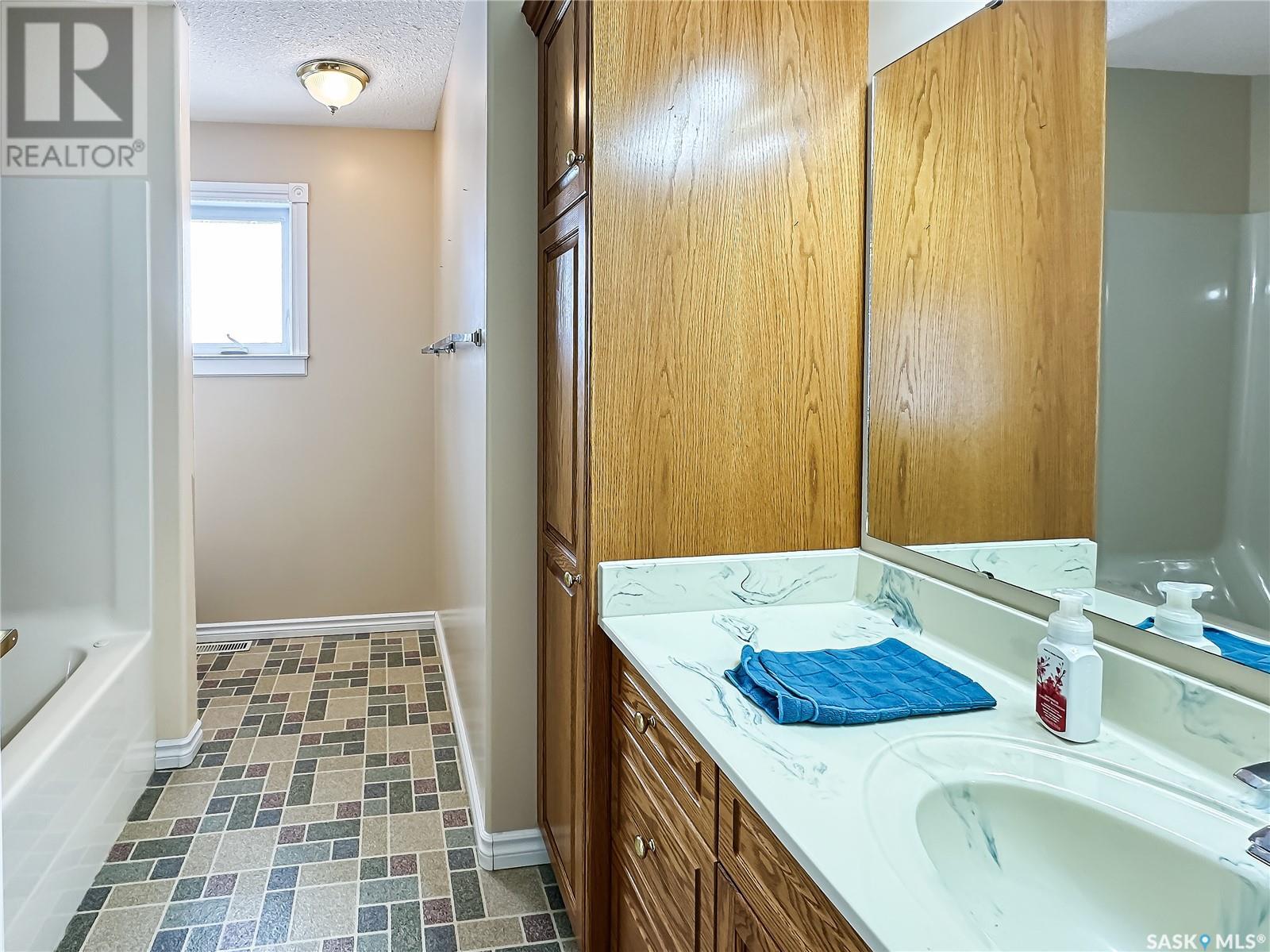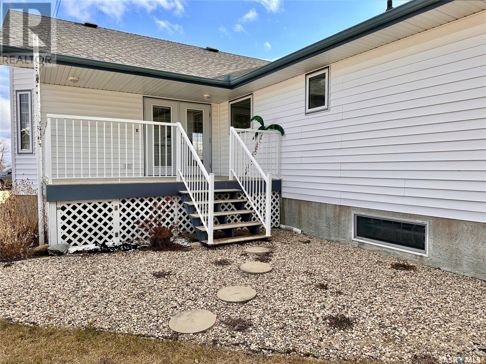 Welcome to this fabulous family-sized bungalow in the desirable Sunset Acres subdivision of Balcarres. Thoughtfully designed for comfort and convenience, this move-in-ready home is ideal for retirees looking for easy, single-level living or families in need of space to grow. Featuring three spacious bedrooms on the main floor (one currently used as an office) and an additional bedroom downstairs, this home offers plenty of flexibility. The primary suite boasts a generous layout with a 3-piece ensuite, while the open-concept living space is perfect for gathering with loved ones. A vaulted ceiling and cozy gas fireplace make the living room feel warm and inviting, while the well-equipped kitchen offers oak cabinetry, ample storage, and easy access to a covered deck—perfect for morning coffee or evening relaxation. Practical features like main-floor laundry, a fantastic insulated attached garage, and a storage shed add to the home’s appeal. The beautifully landscaped yard is already established, providing a peaceful retreat with mature trees and greenery. Balcarres is a wonderful community with essential stores, services, and a K-12 school, plus the convenience of town-wide reverse osmosis water. Enjoy small-town living with the added benefit of being just 15 minutes from the lake and an easy 60-minute drive to the city. Don’t miss out on this exceptional home! Contact your favorite local agent today for a personal tour. (id:43042)