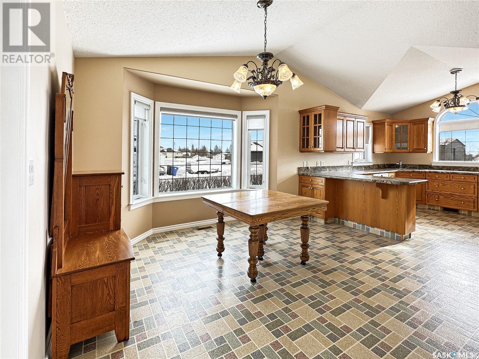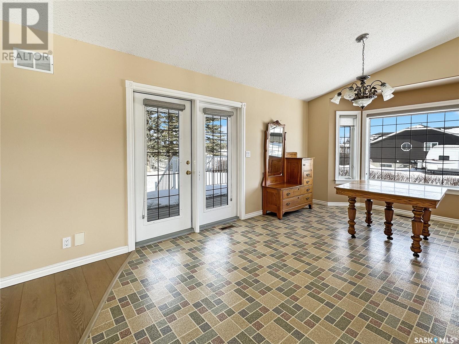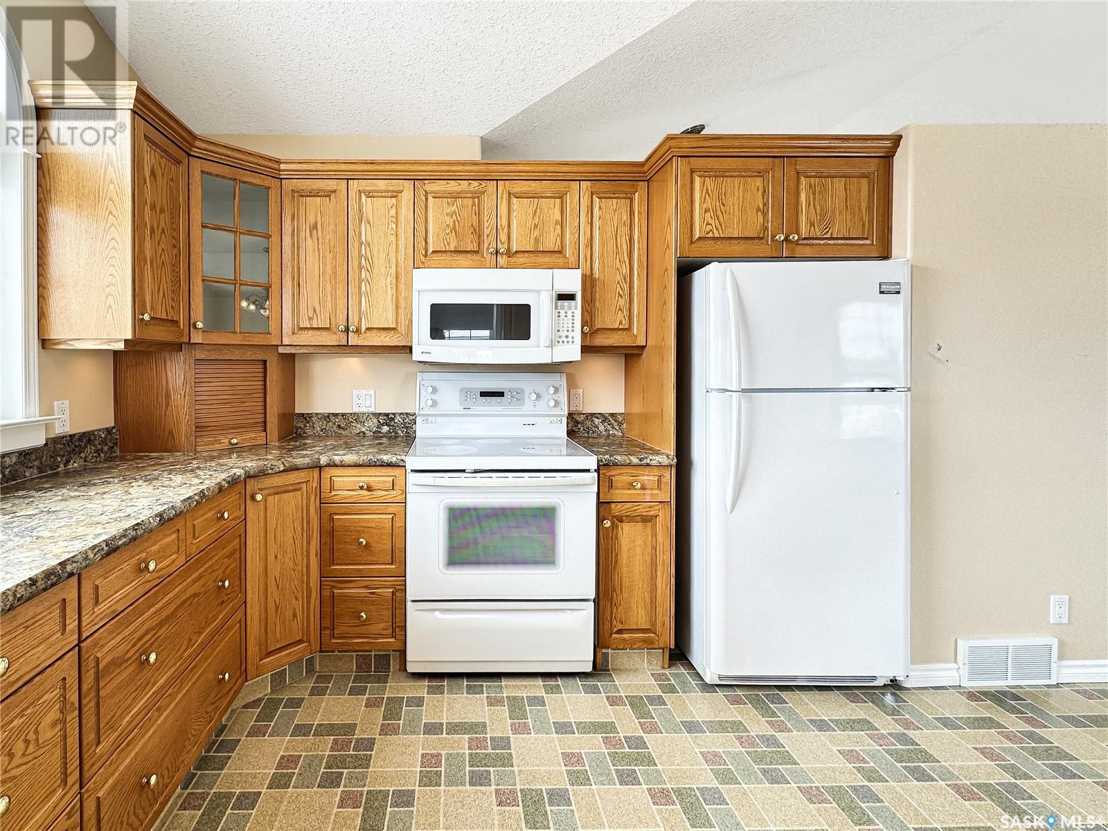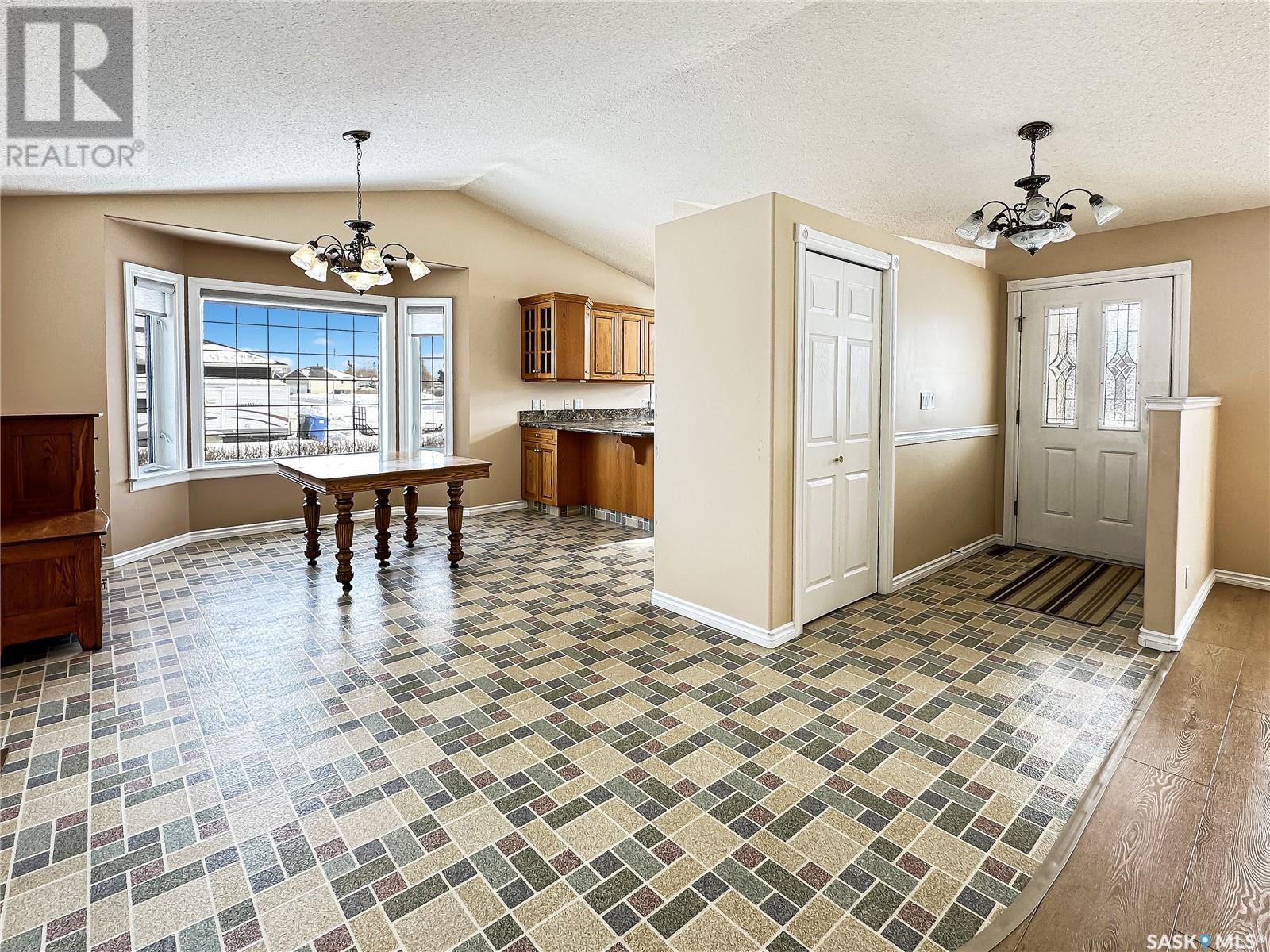 Welcome to this fabulous family-sized bungalow in the desirable Sunset Acres subdivision of Balcarres. Thoughtfully designed for comfort and convenience, this move-in-ready home is ideal for retirees looking for easy, single-level living or families in need of space to grow. Featuring three spacious bedrooms on the main floor (one currently used as an office) and an additional bedroom downstairs, this home offers plenty of flexibility. The primary suite boasts a generous layout with a 3-piece ensuite, while the open-concept living space is perfect for gathering with loved ones. A vaulted ceiling and cozy gas fireplace make the living room feel warm and inviting, while the well-equipped kitchen offers oak cabinetry, ample storage, and easy access to a covered deck—perfect for morning coffee or evening relaxation. Practical features like main-floor laundry, a fantastic insulated attached garage, and a storage shed add to the home’s appeal. The beautifully landscaped yard is already established, providing a peaceful retreat with mature trees and greenery. Balcarres is a wonderful community with essential stores, services, and a K-12 school, plus the convenience of town-wide reverse osmosis water. Enjoy small-town living with the added benefit of being just 15 minutes from the lake and an easy 60-minute drive to the city. Don’t miss out on this exceptional home! Contact your favorite local agent today for a personal tour. (id:43042)