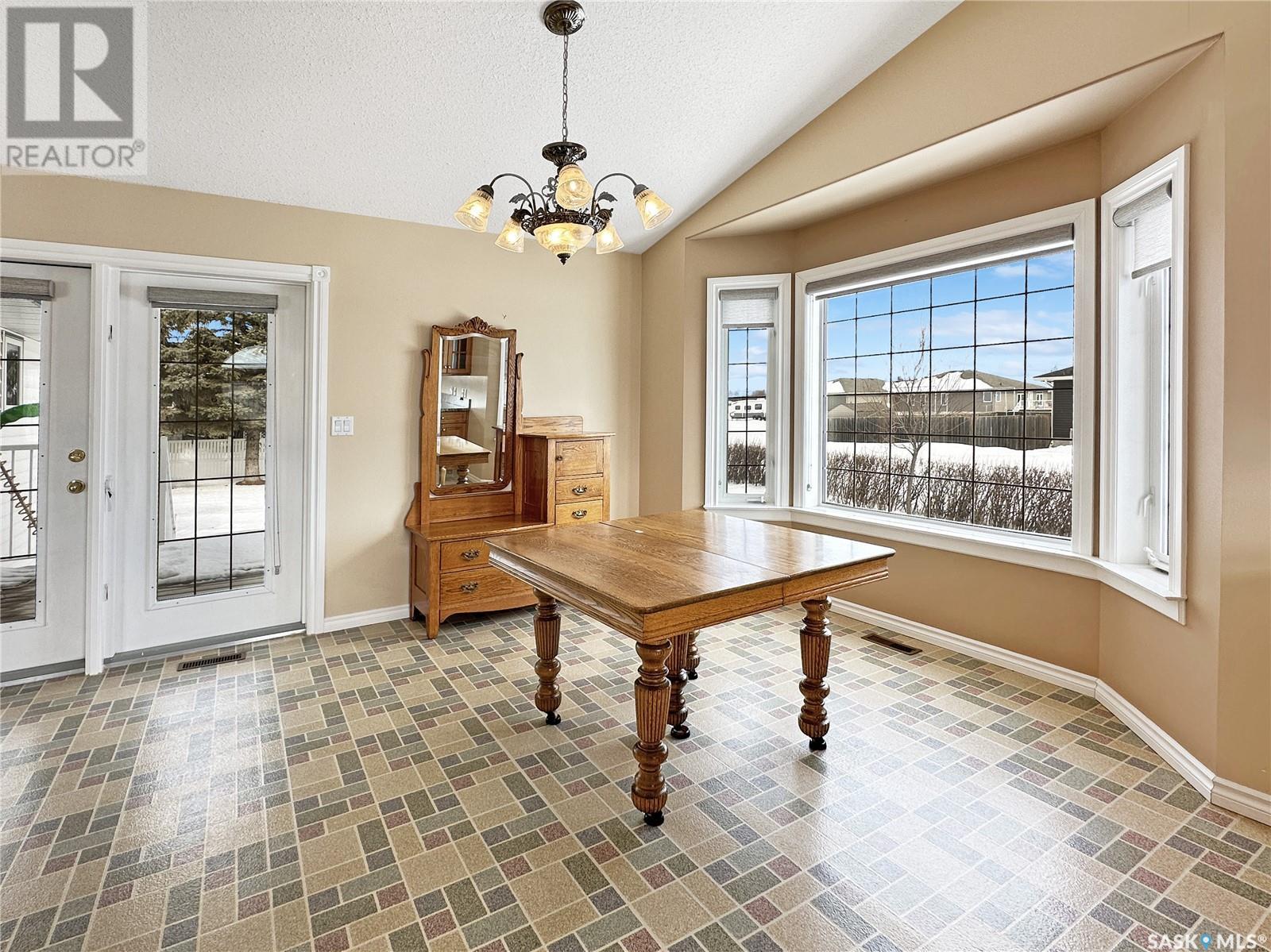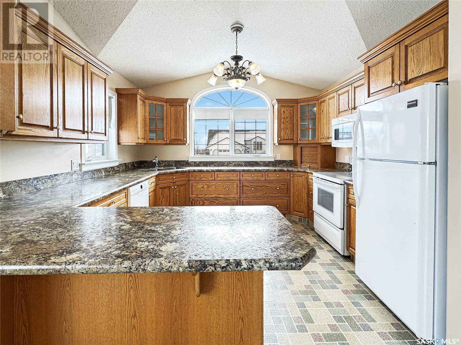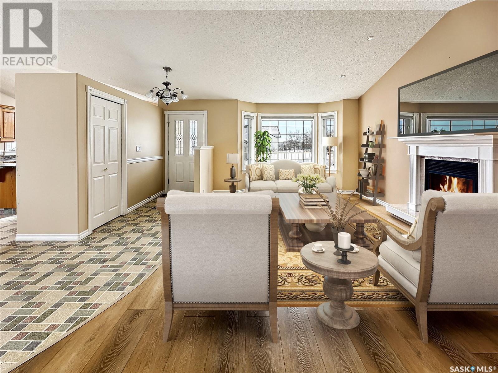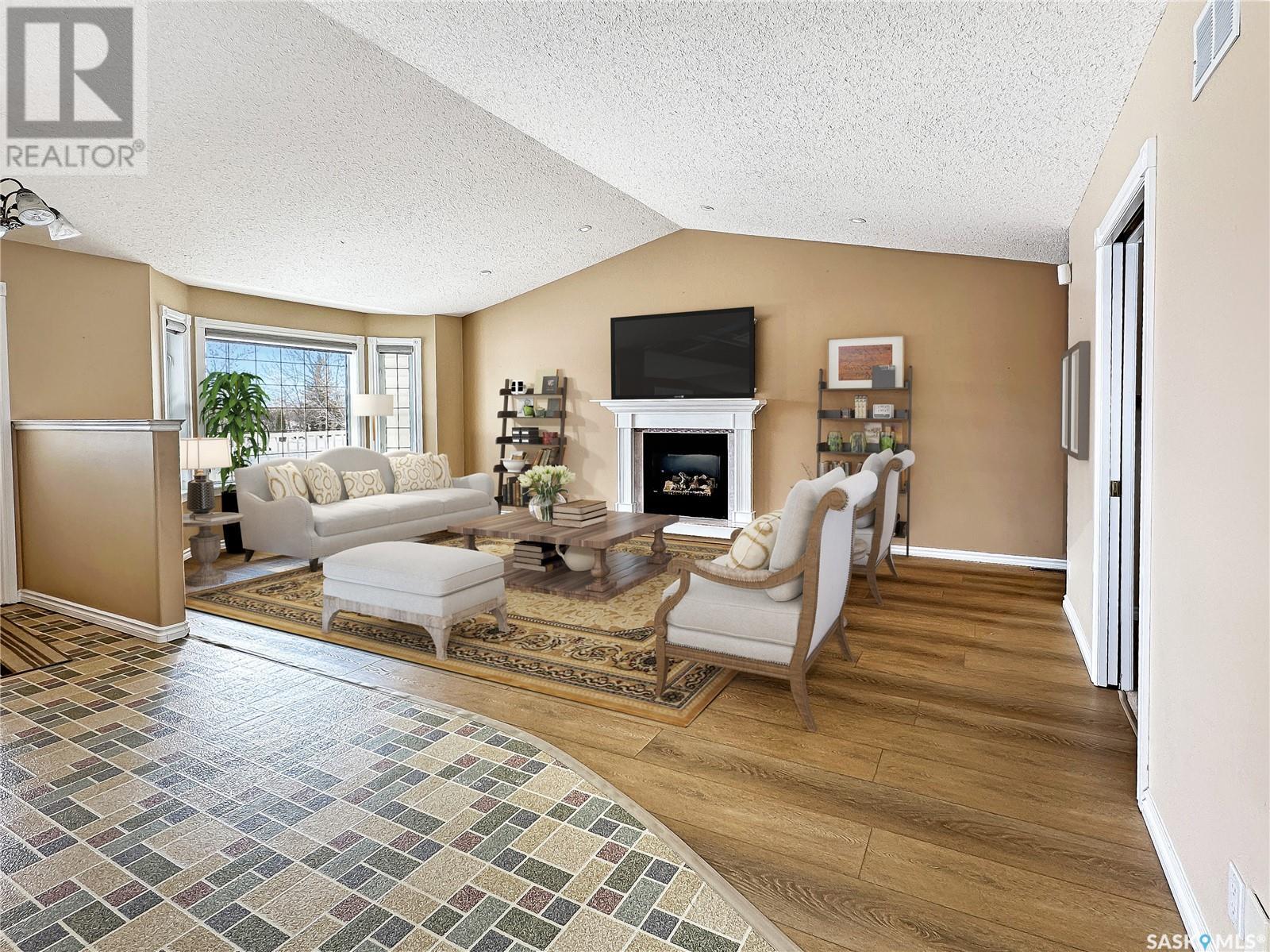 Welcome to this fabulous family-sized bungalow in the desirable Sunset Acres subdivision of Balcarres. Thoughtfully designed for comfort and convenience, this move-in-ready home is ideal for retirees looking for easy, single-level living or families in need of space to grow. Featuring three spacious bedrooms on the main floor (one currently used as an office) and an additional bedroom downstairs, this home offers plenty of flexibility. The primary suite boasts a generous layout with a 3-piece ensuite, while the open-concept living space is perfect for gathering with loved ones. A vaulted ceiling and cozy gas fireplace make the living room feel warm and inviting, while the well-equipped kitchen offers oak cabinetry, ample storage, and easy access to a covered deck—perfect for morning coffee or evening relaxation. Practical features like main-floor laundry, a fantastic insulated attached garage, and a storage shed add to the home’s appeal. The beautifully landscaped yard is already established, providing a peaceful retreat with mature trees and greenery. Balcarres is a wonderful community with essential stores, services, and a K-12 school, plus the convenience of town-wide reverse osmosis water. Enjoy small-town living with the added benefit of being just 15 minutes from the lake and an easy 60-minute drive to the city. Don’t miss out on this exceptional home! Contact your favorite local agent today for a personal tour. (id:43042)