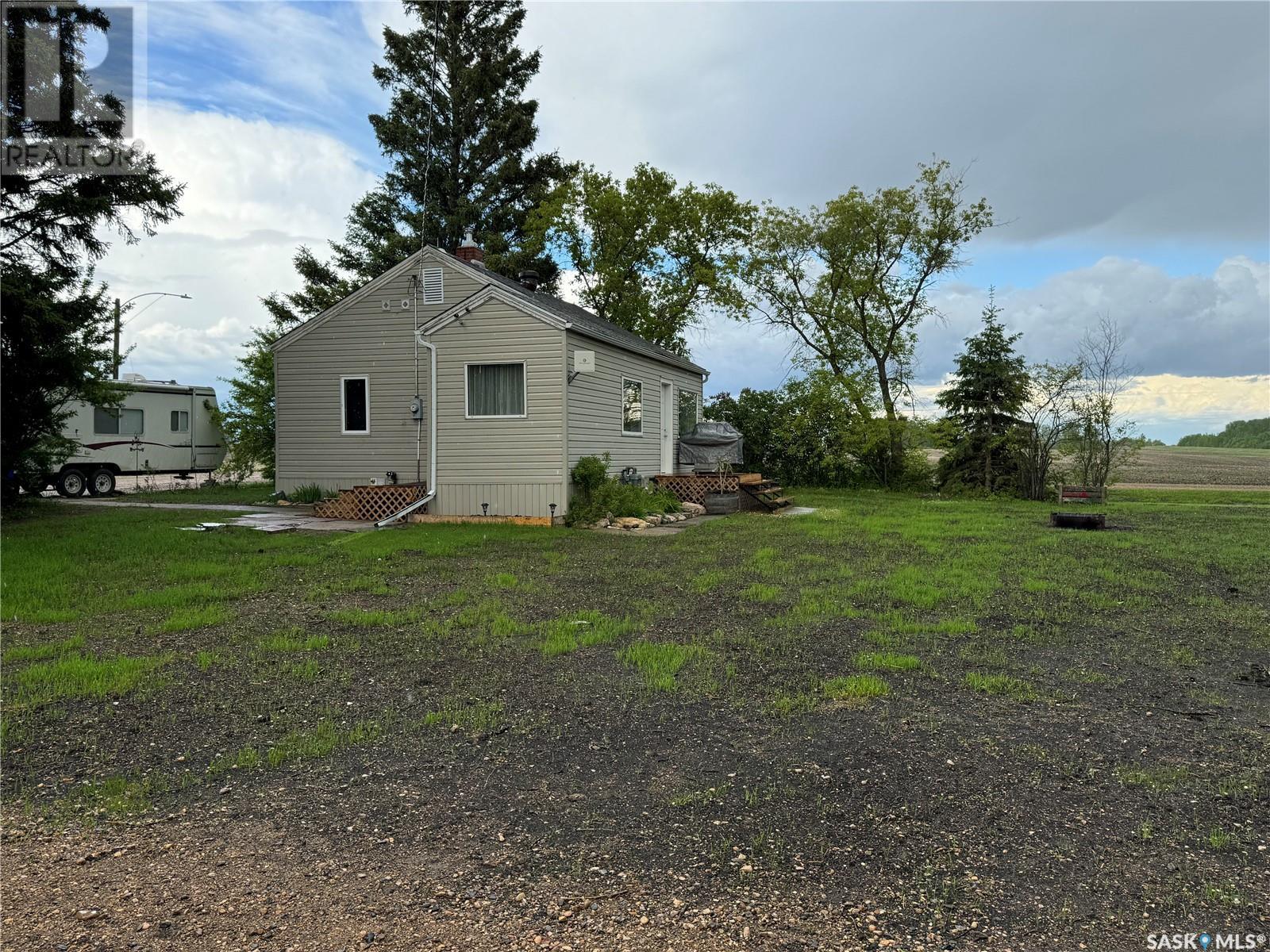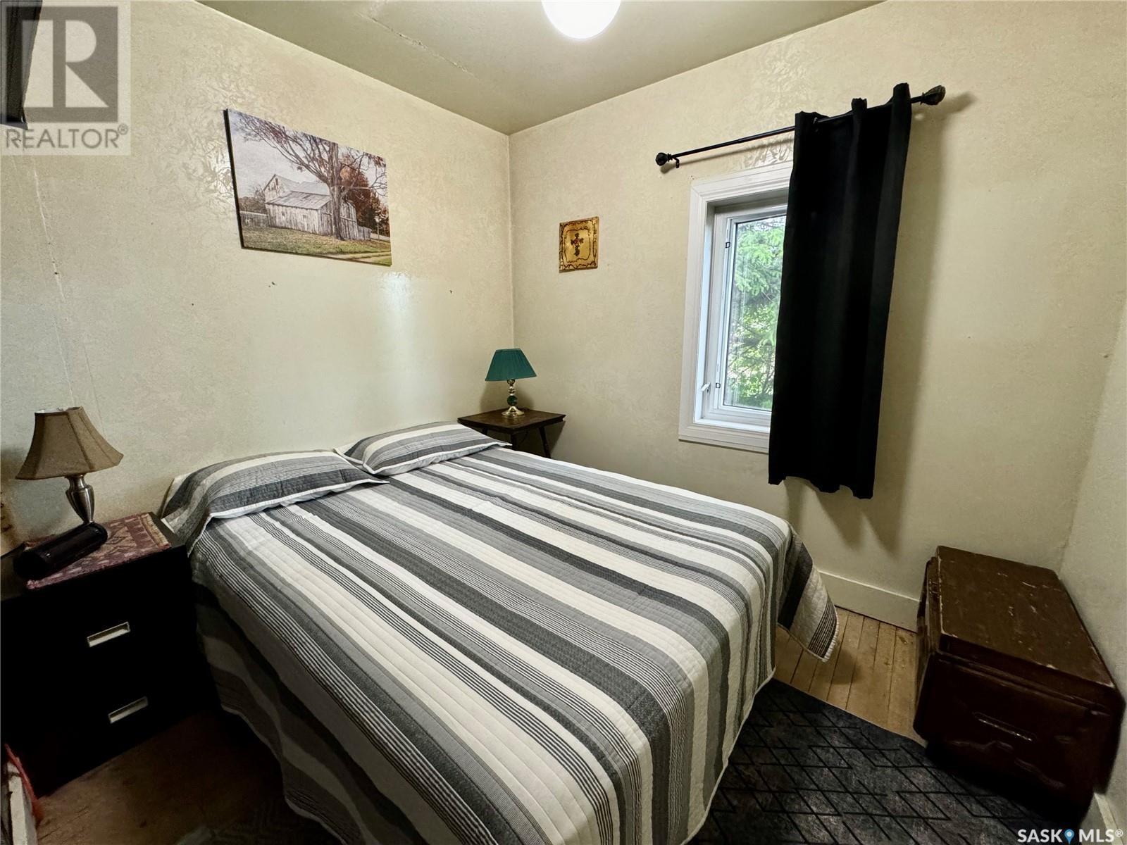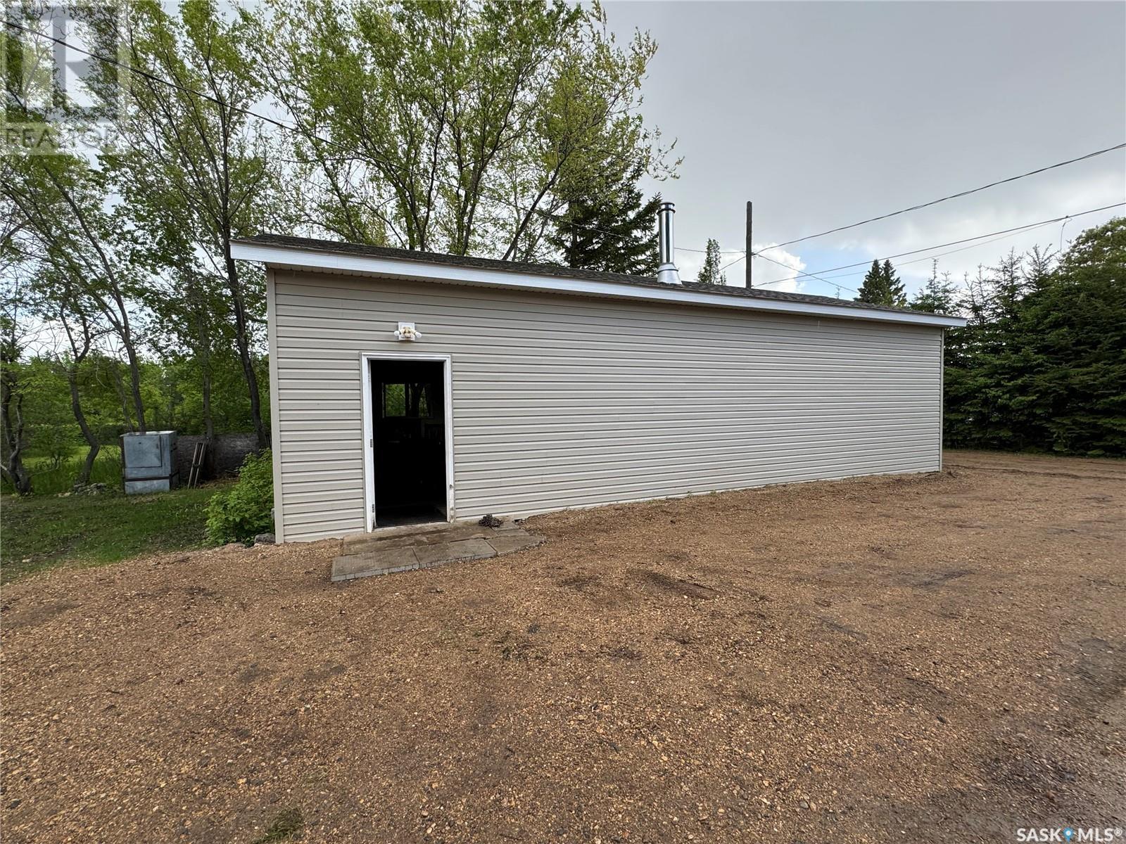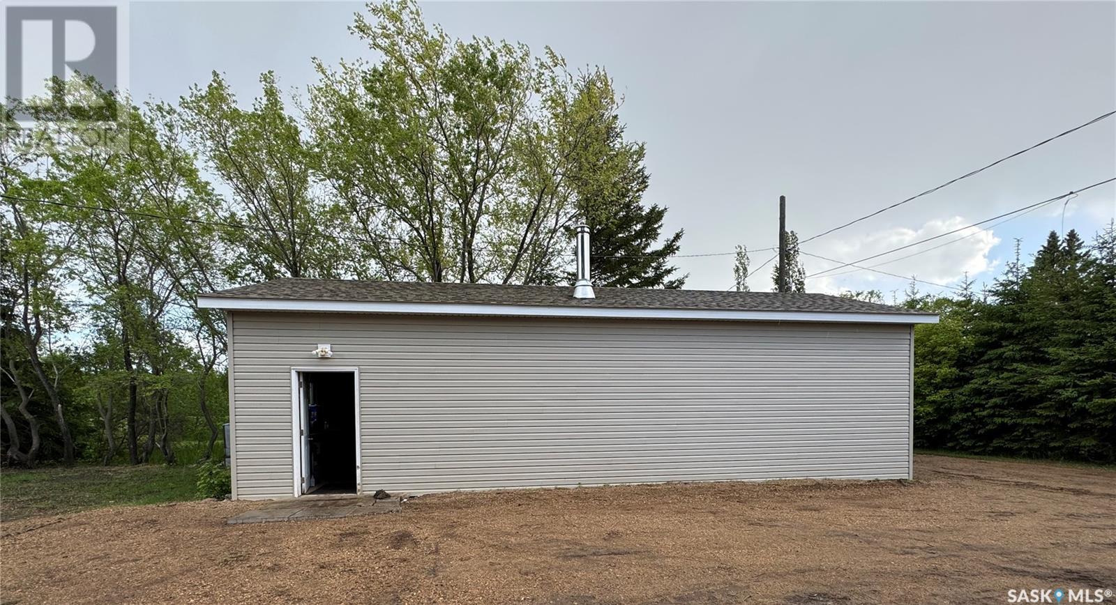 Welcome to Hyas SK! Are you looking for an acreage within a village? The feel of this property gives you the loveliness of having an acreage with town/village amenities! This affordable home has excellent options for the first time home buyer, someone who would like to retire and/or downsize, or an someone that would like an income property. This property could get around $800 per month rent. The extra large double lot comes with a 575 square foot home with natural gas, town water, and town sewer. The main entrance of the property starts off with a porch area that leads into the dining room/kitchen area. Kitchen window faces west and includes fridge and stove. The dining room area window faces south. A few steps over will take you to the living room with east and south facing windows. The main floor is completed with 2 bedrooms and a main bathroom. The basement is used for storage and houses the HE furnace (new heat exchange) and water heater (2020). Panel box is 100amp service. Windows are updated PVC. The yard has been freshly landscaped with brand new grass. The fully insulated garage garage is 20x40 has 200 amp service. Garage/Shop is heated with electric heat and optional wood heat in the 2nd part. A short drive to Sturgis, Norquay, and Crystal Lake for all your basic needs. One hour drive to Yorkton SK (city). This area is surrounded by beautiful scenery and lakes within a half hour drive in each direction. This home is not for rent or rent to own. (id:43042)