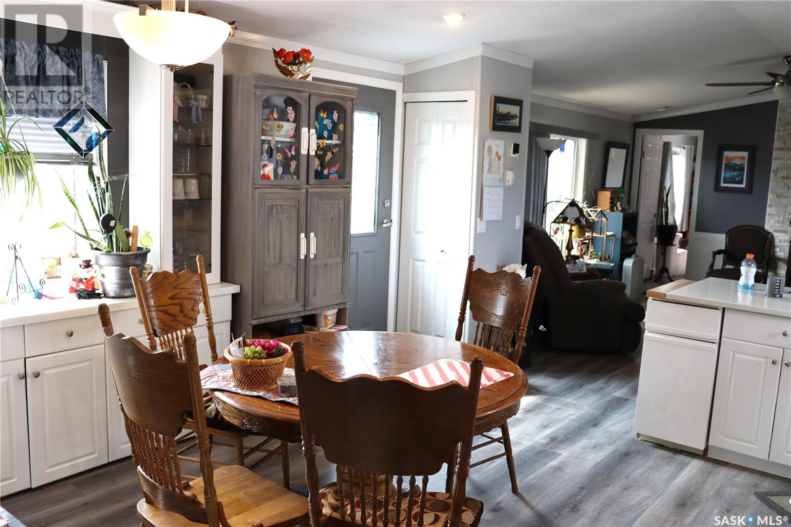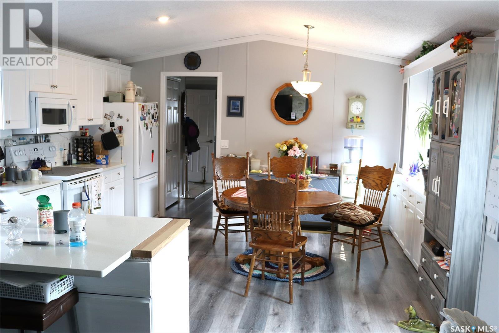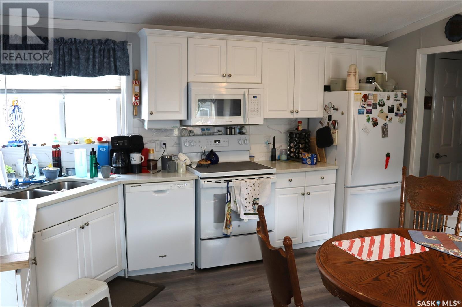 Welcome to this spacious 3-bedroom, 2-bathroom mobile home offering both comfort and convenience. As you enter, you're greeted by a generous entrance and storage area. Inside you will find a nice open concept kitchen/living room area featuring newer appliances, ample cabinetry, and a cozy dining area perfect for family meals. The primary suite boasts a nice sized closet and a 4-piece bath, ideal for relaxation after a long day. Two additional bedrooms and a 4-piece bath on the other end of the home provide flexibility for guests or a home office. Outside, enjoy the convenience of a low-maintenance yard, covered deck and storage shed, offering space for outdoor hobbies, equipment and entertaining. Outside of home has been repainted, shingles are less than 5 years old. Located in a peaceful community, this home combines affordability with modern living essentials. Don't miss the opportunity to make this your new home! (id:43042)